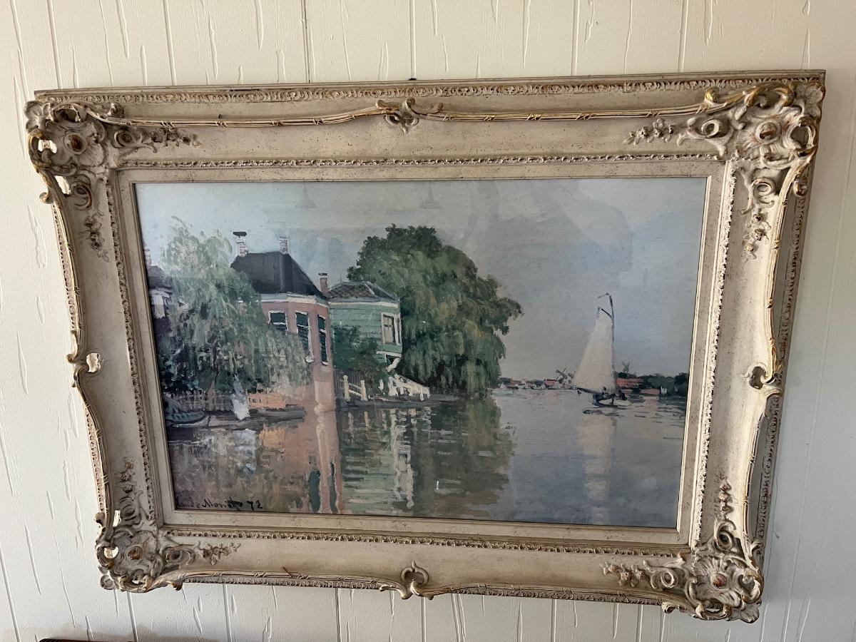 LOT 89L: Large Framed Print - "Houses on the Achterzaan" by Monet