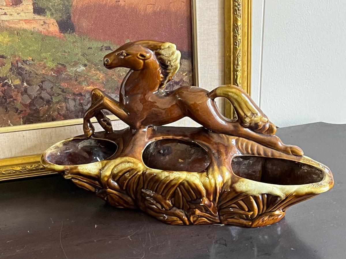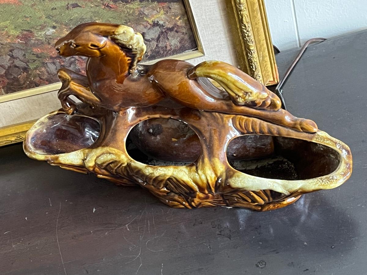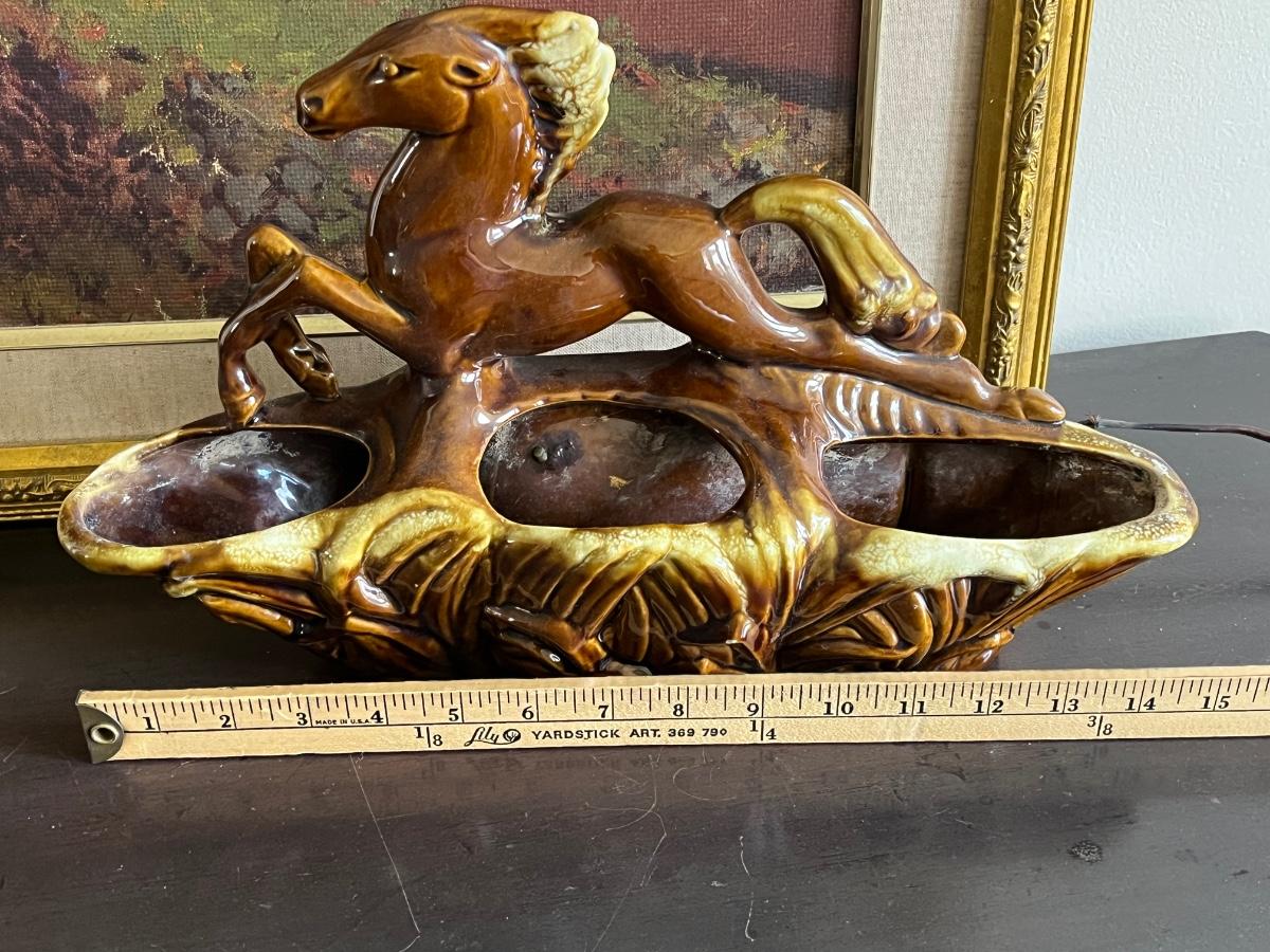 LOT 92L: Mid-Century Modern Horse Planter / TV Lamp + Framed Print