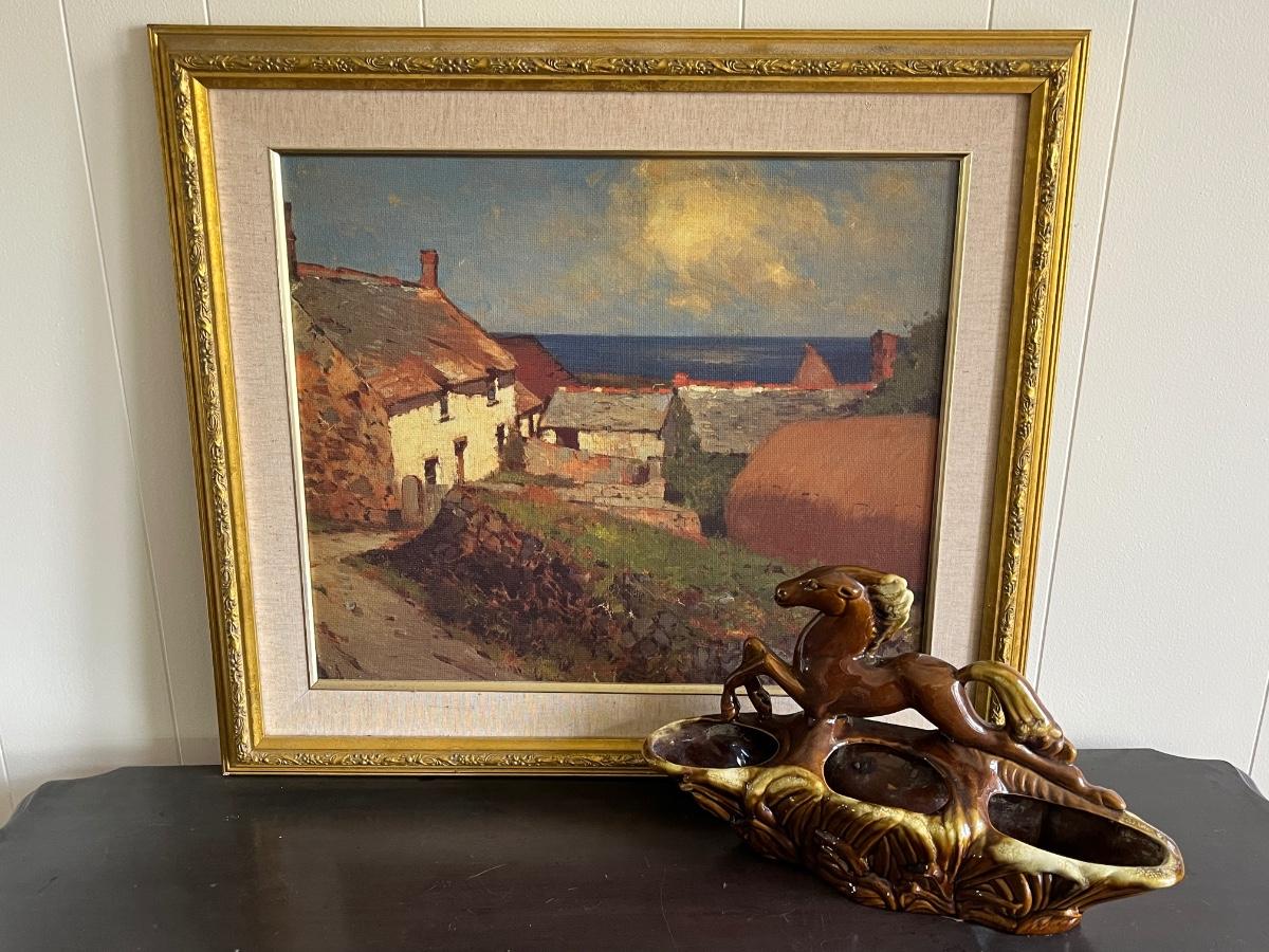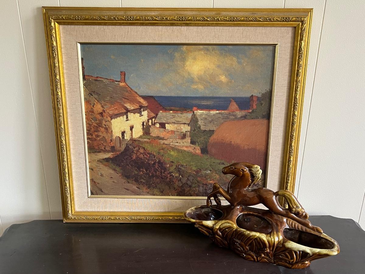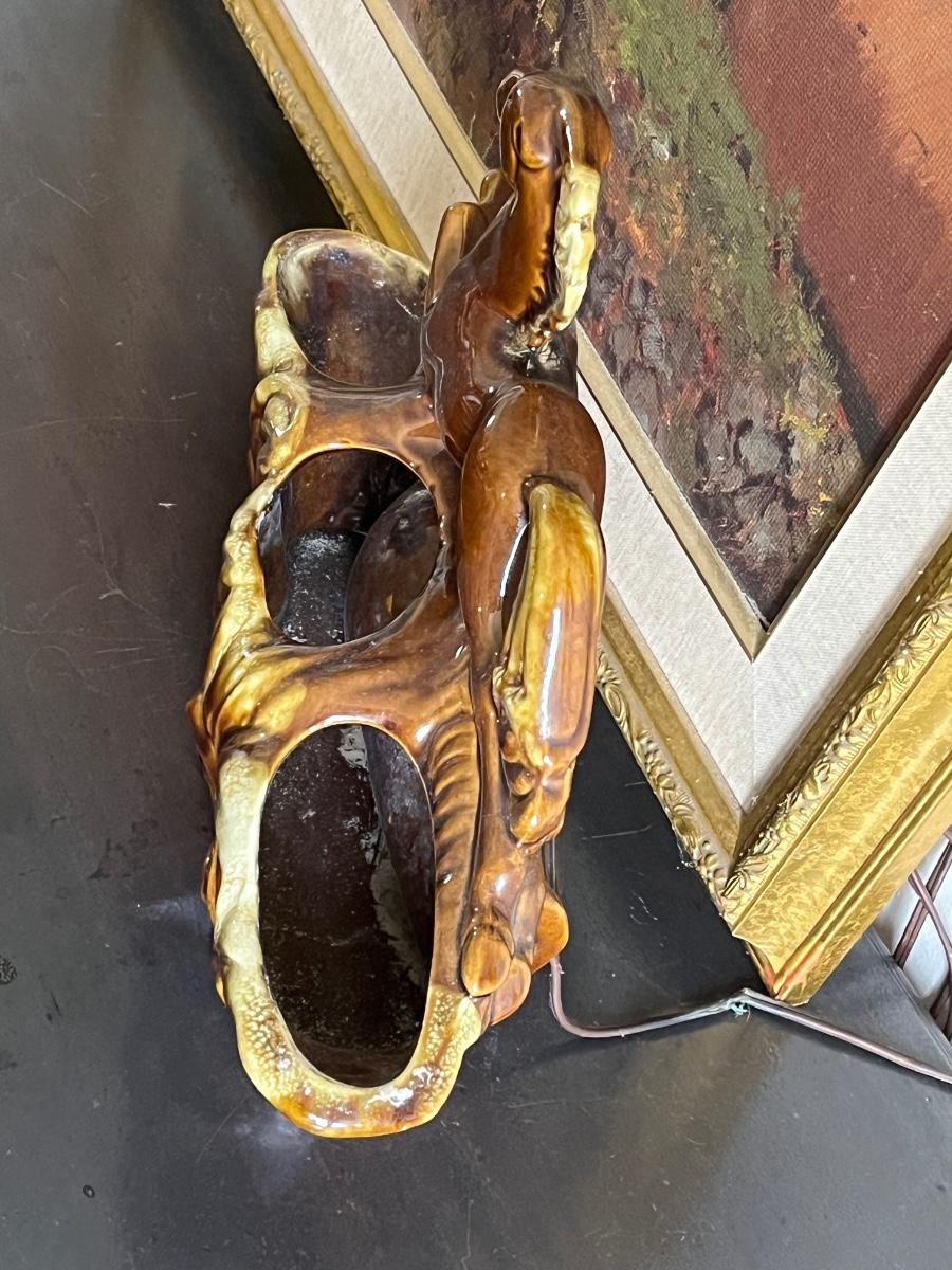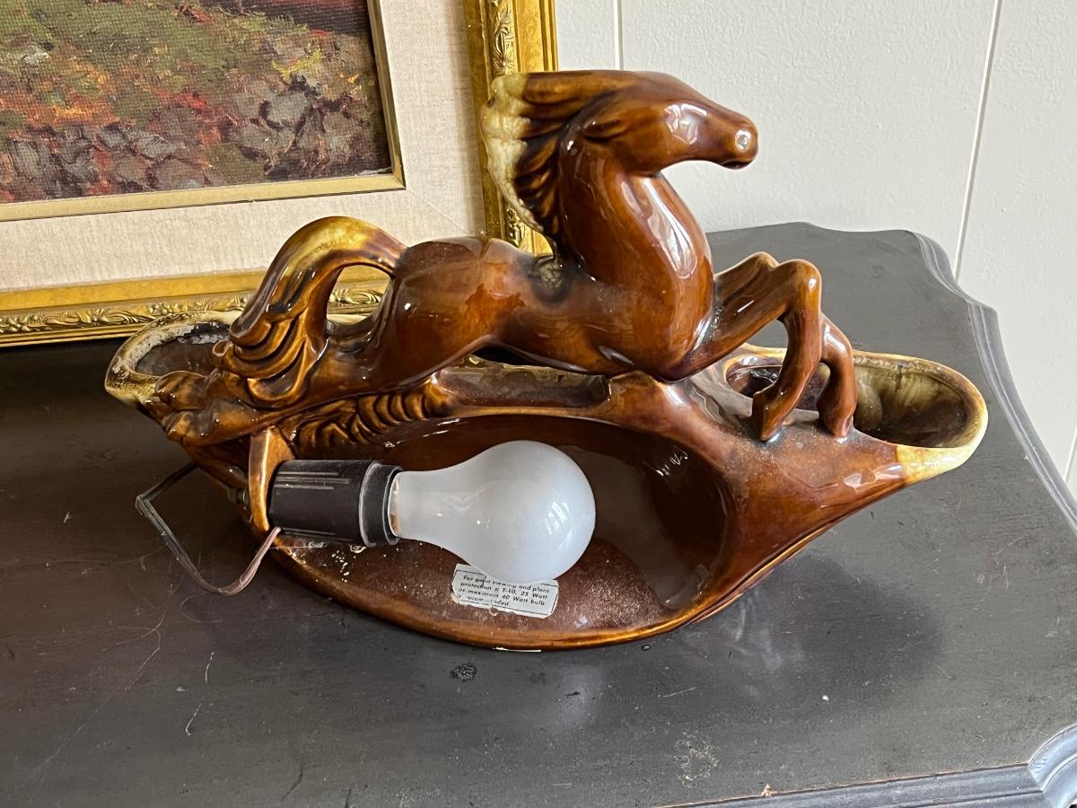 LOT 92L: Mid-Century Modern Horse Planter / TV Lamp + Framed Print