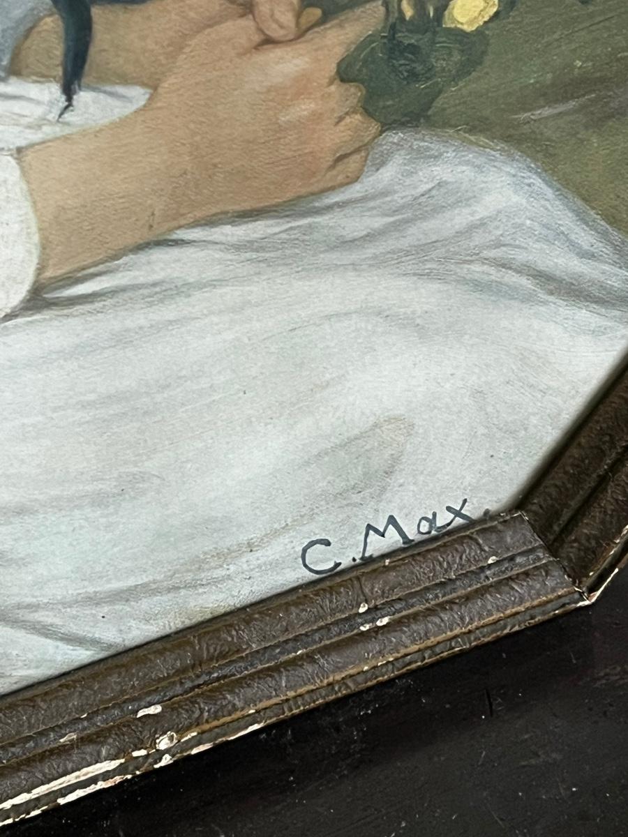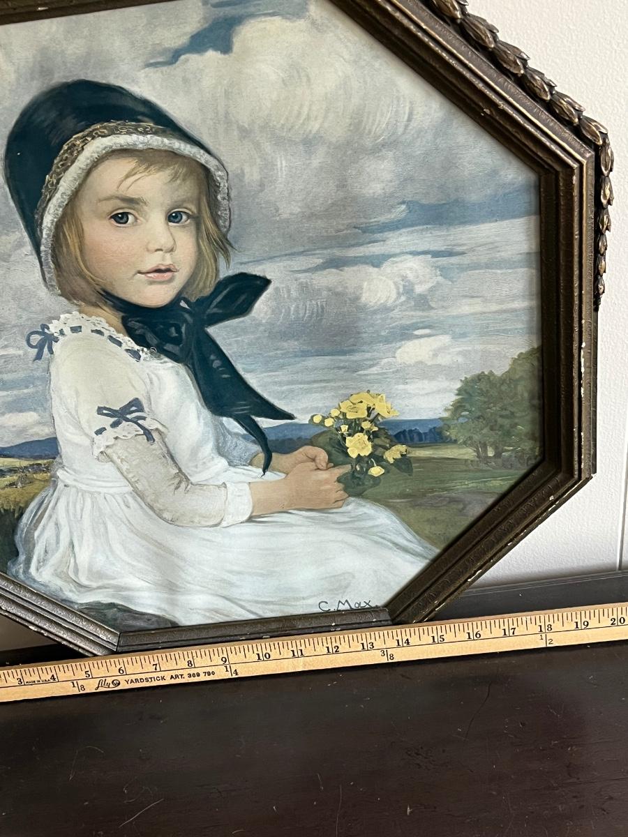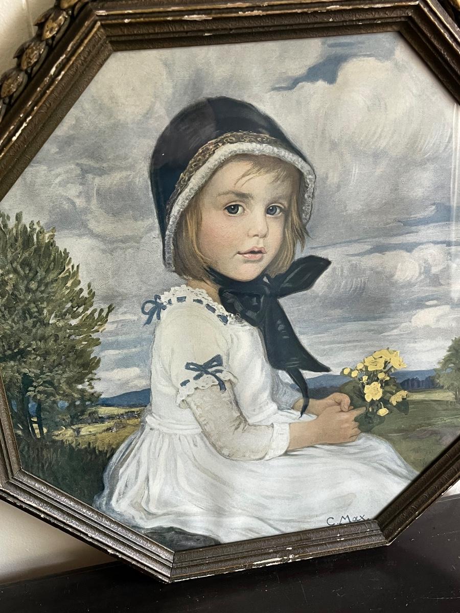 LOT 98L:Vintage / Antique Framed Print - "Anna Brigitta" by Corneille May + Antique Vintage Wall Pediment - Mase in Italy