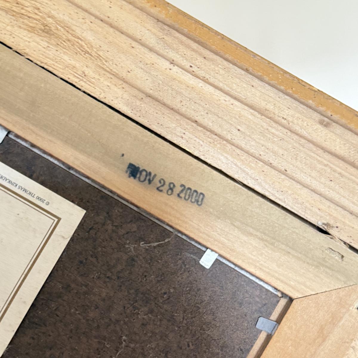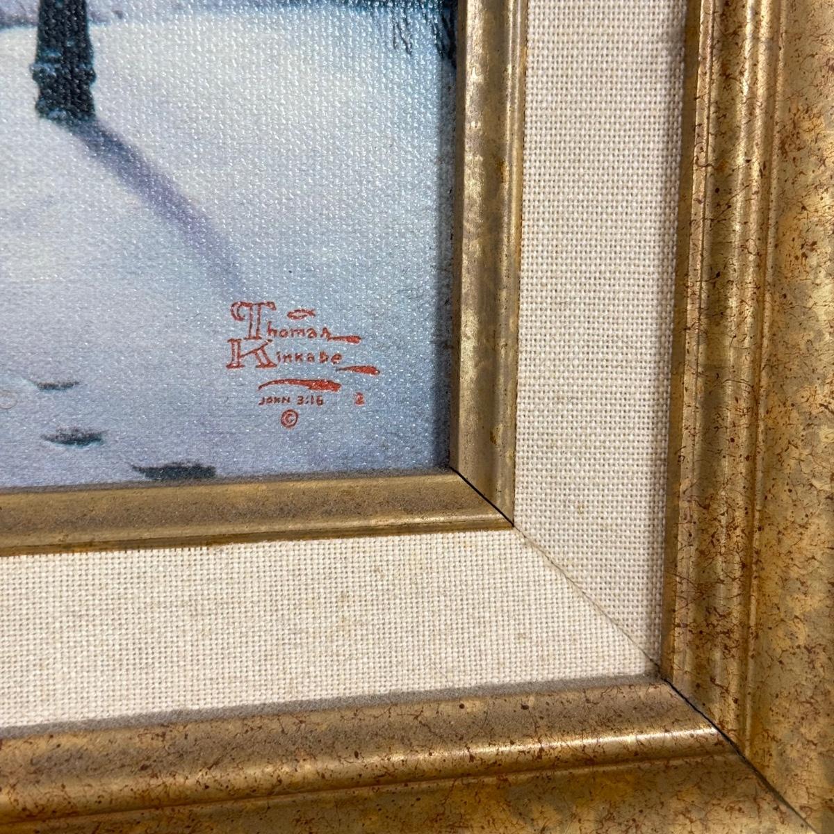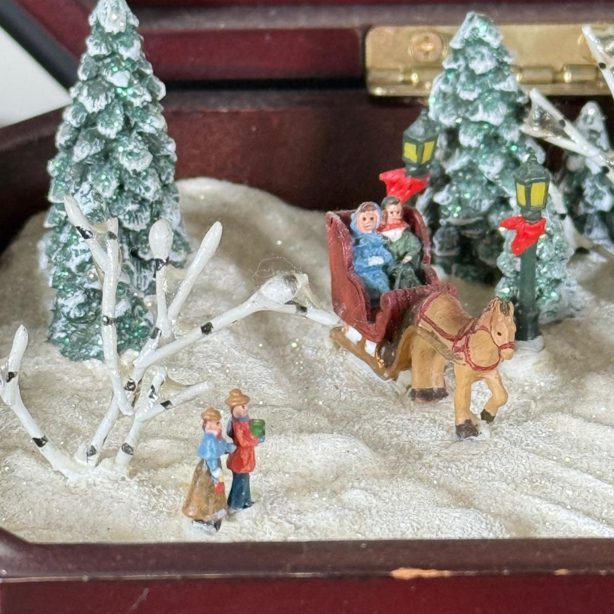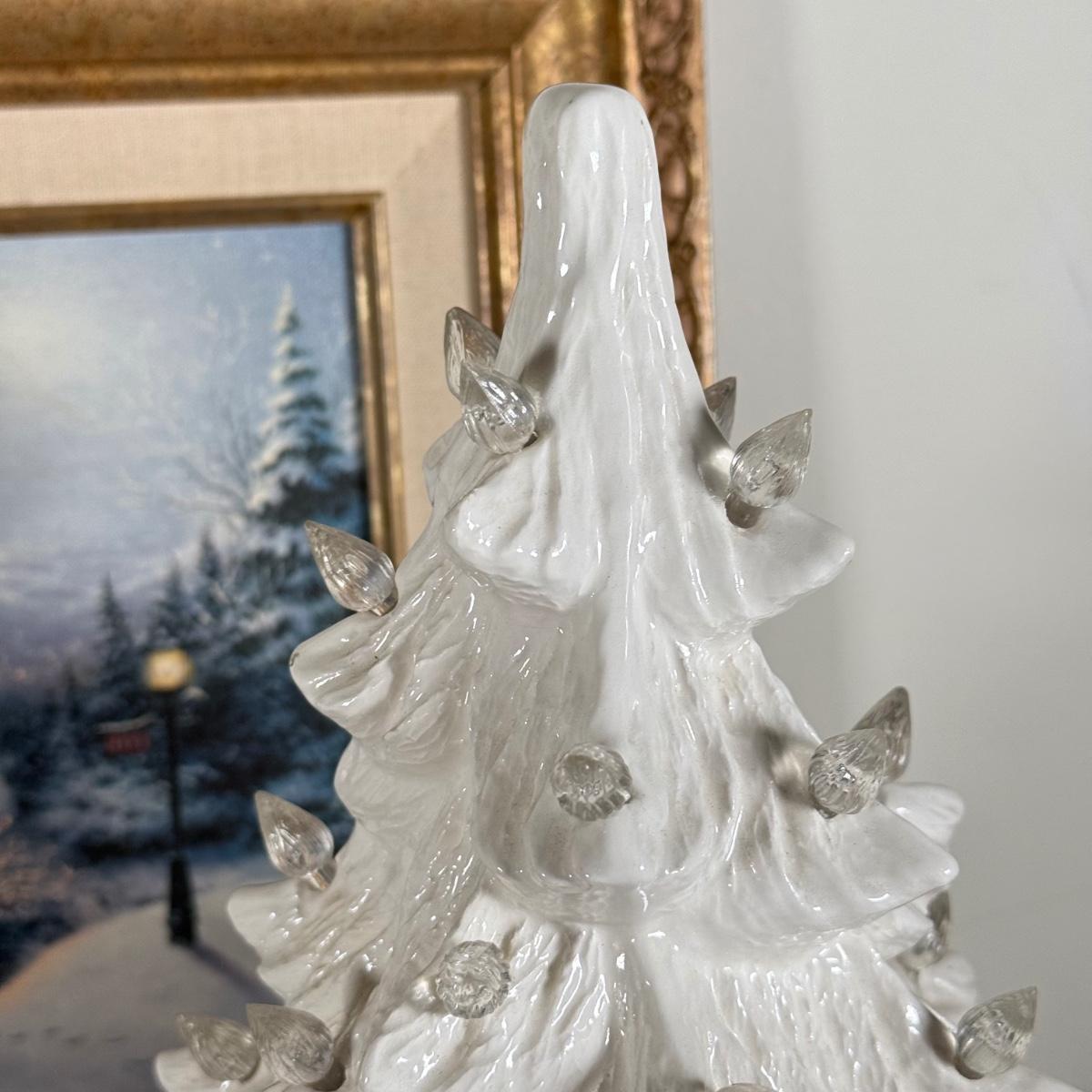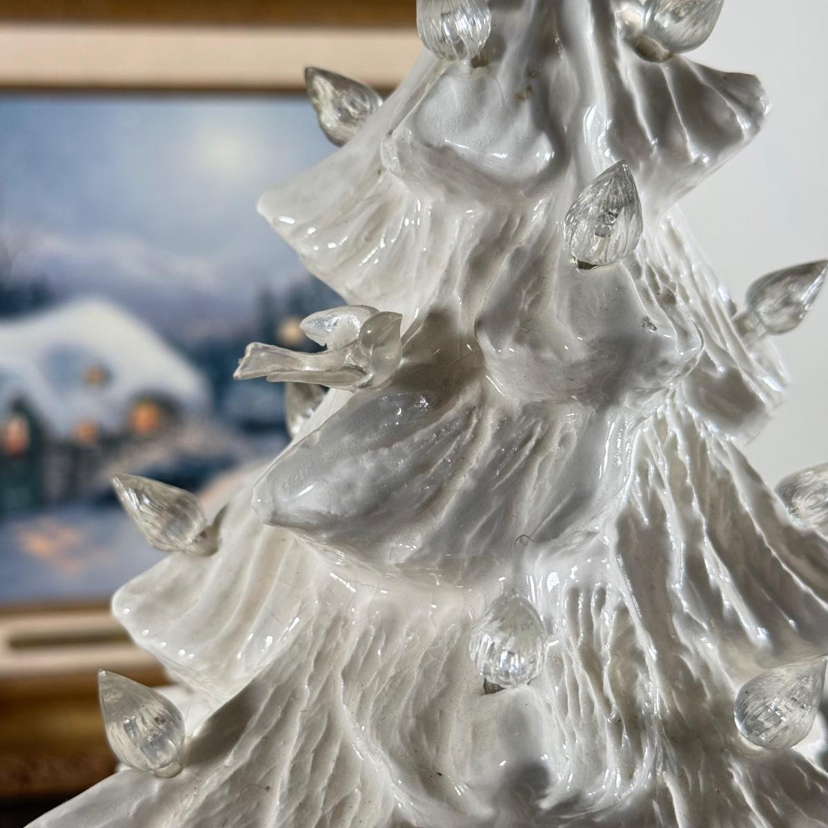 LOT 101K: Thomas Kinkade "Silent Night" Framed Print w/ COA, Holiday Traditions "We Wish You a Merry Christmas" Music Box A5648 & White Ceramic Christmas Tree Top