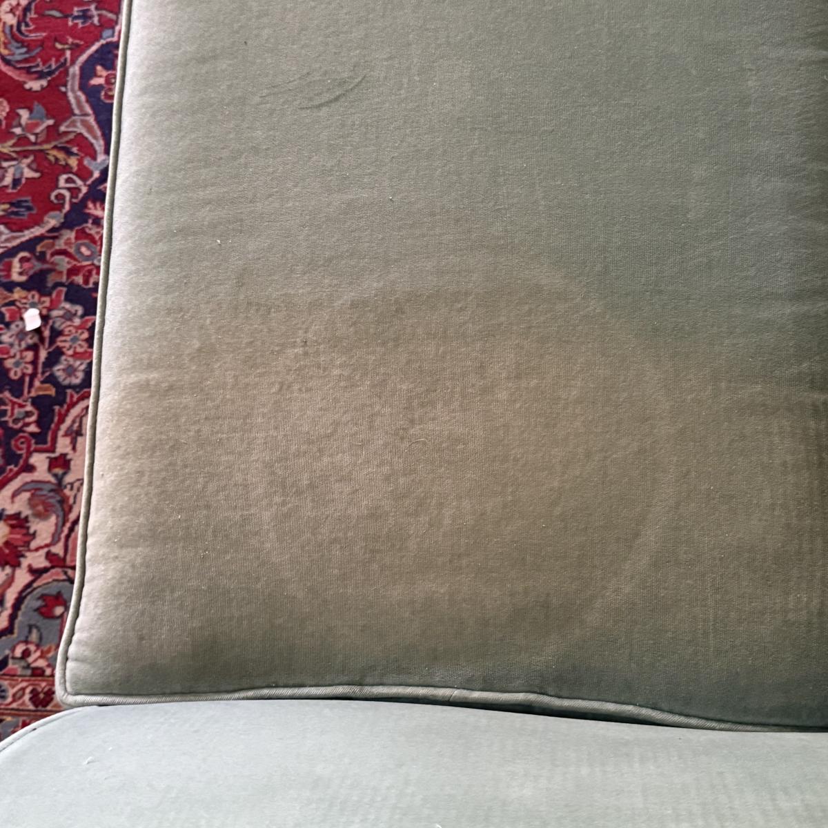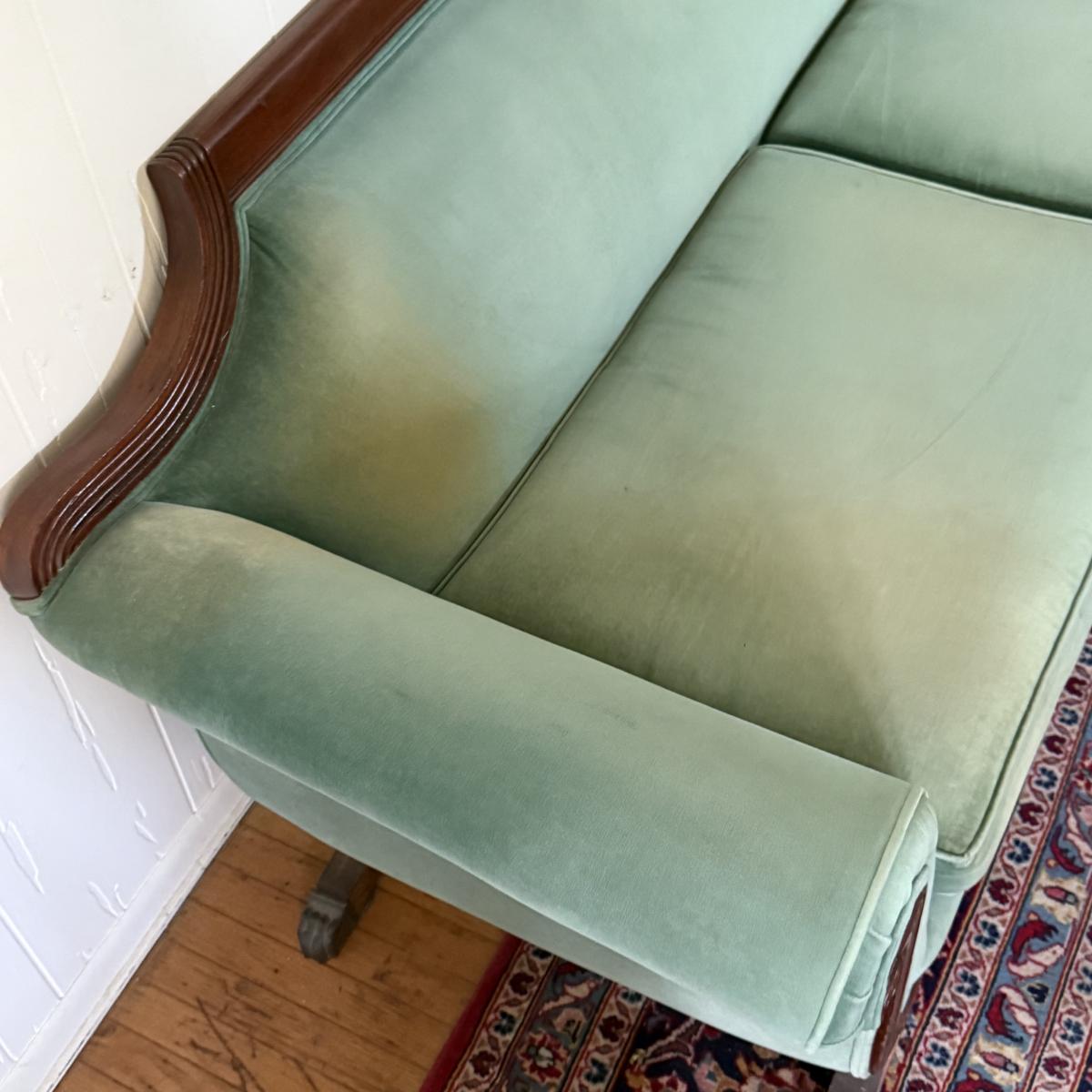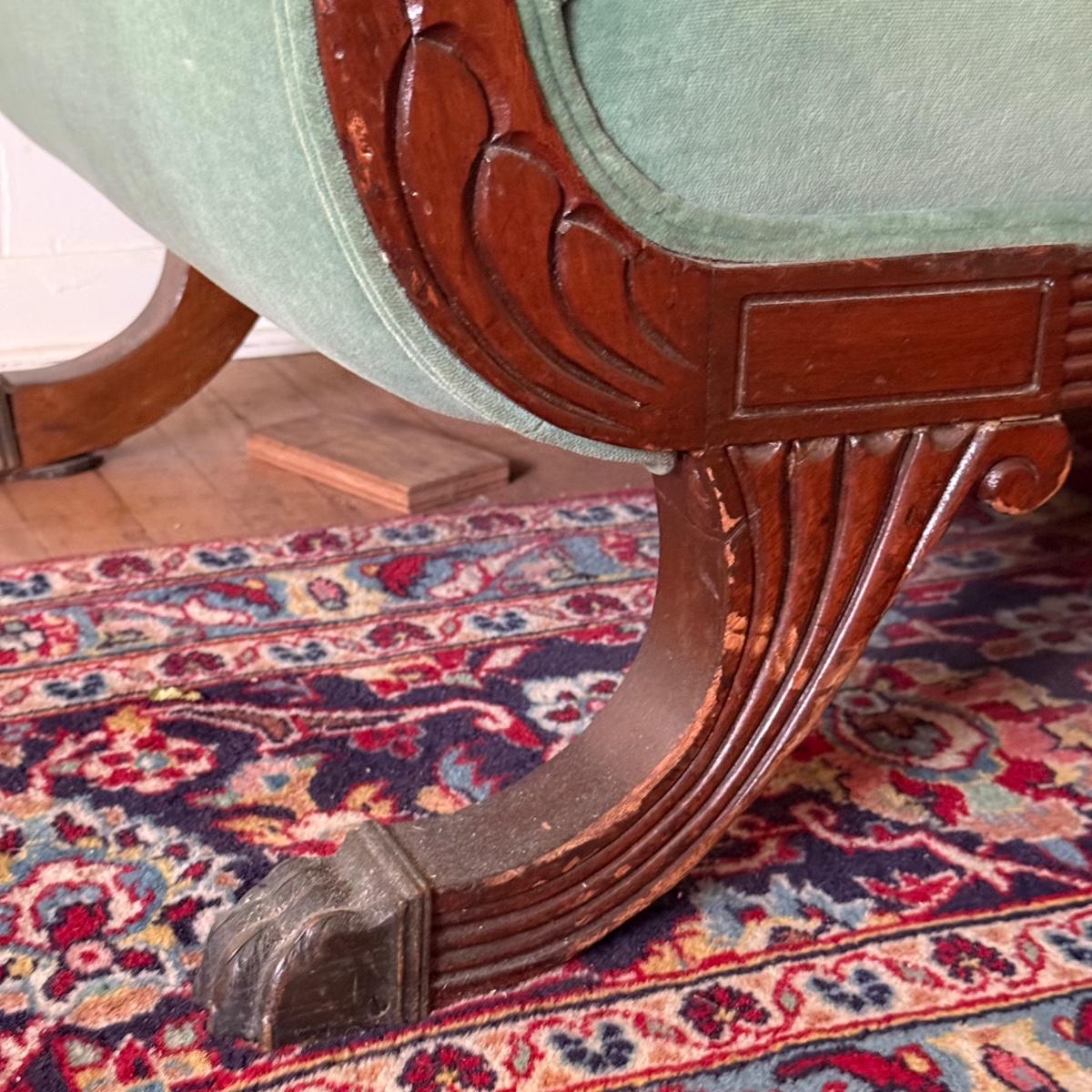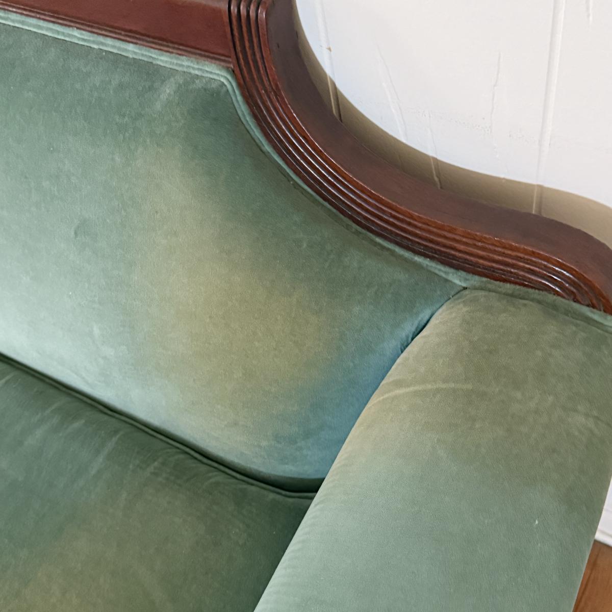 LOT 128L: Vintage Green Duncan Phyfe Style Sofa w/ Glass Top Coffee Table