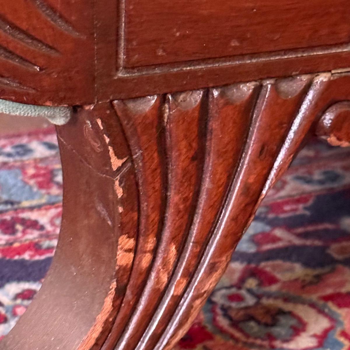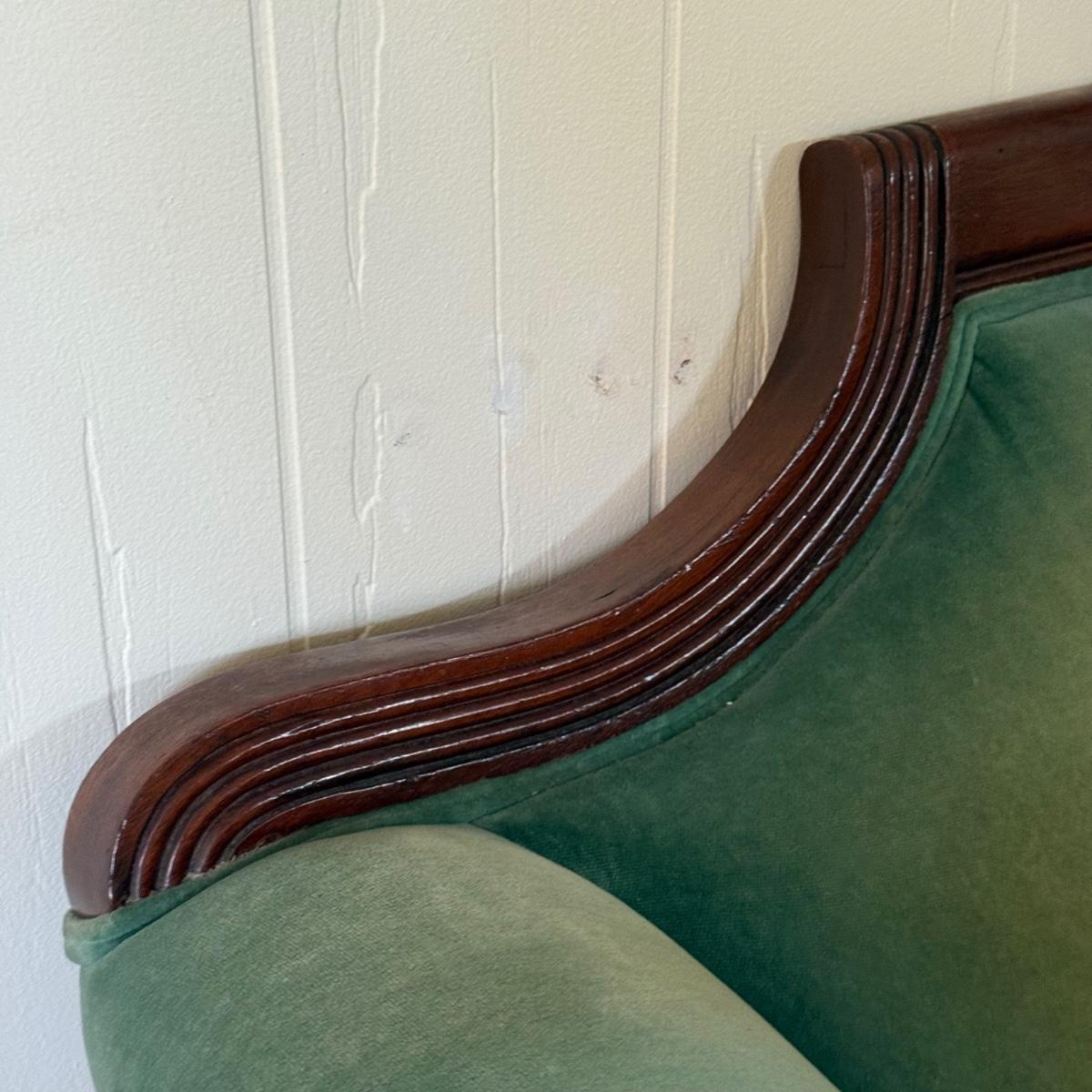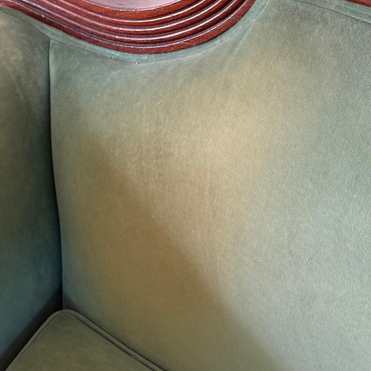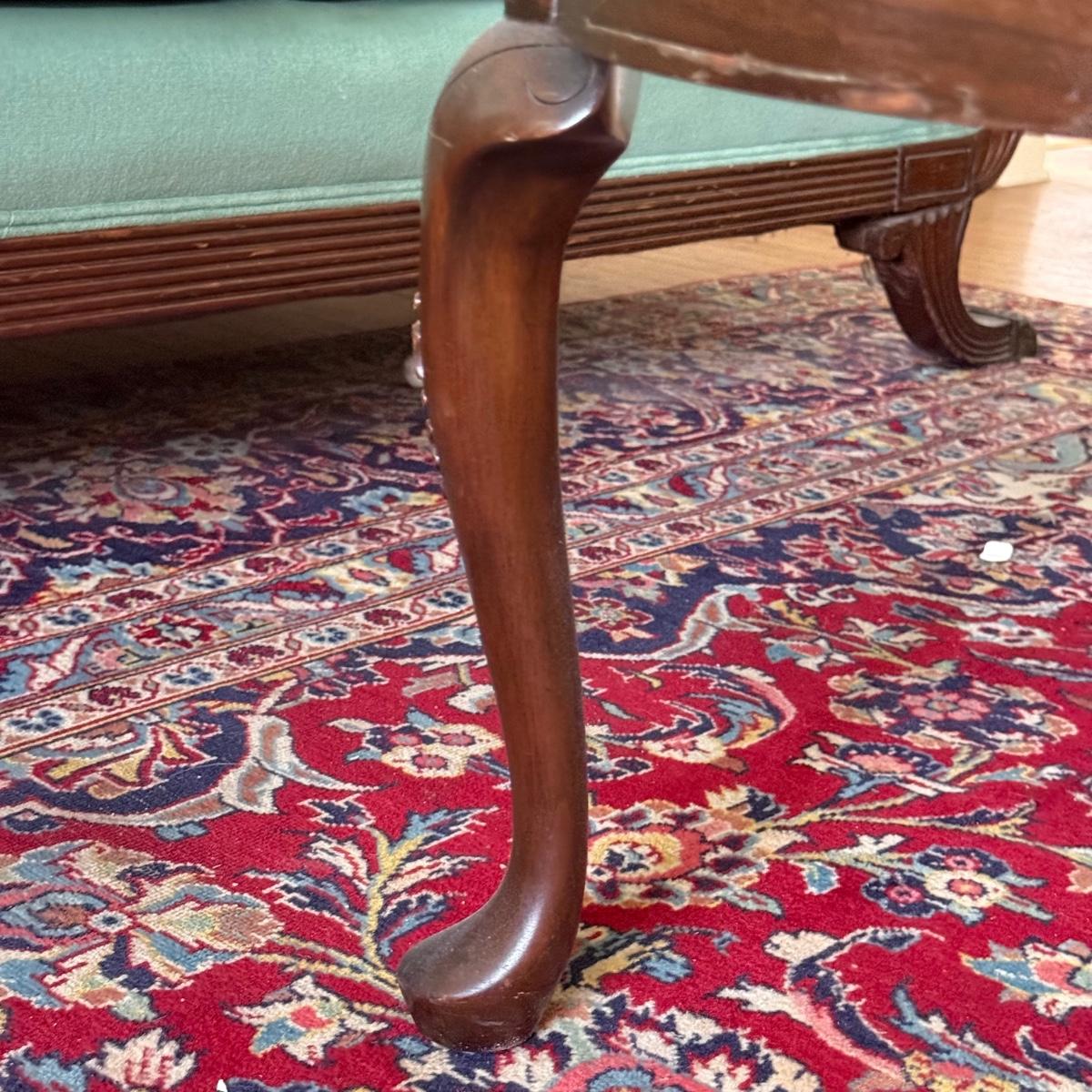 LOT 128L: Vintage Green Duncan Phyfe Style Sofa w/ Glass Top Coffee Table