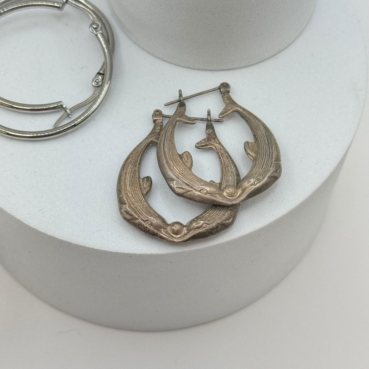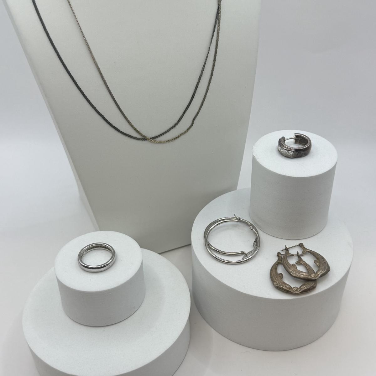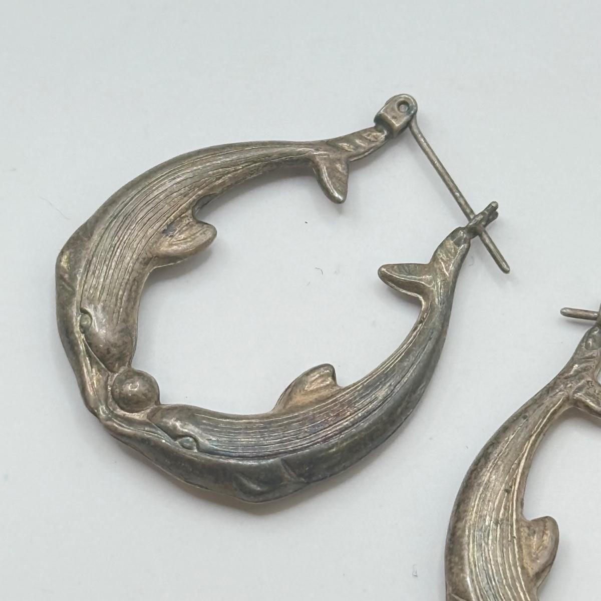 LOT 2J: Sterling Silver (925) Dolphin Earring Wedding Band-sz 7, Single Earring and 2-Chains