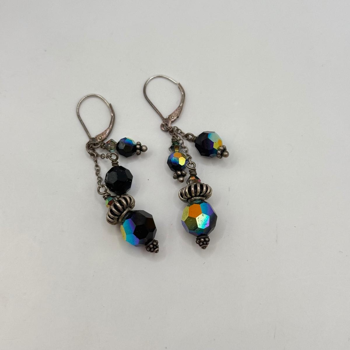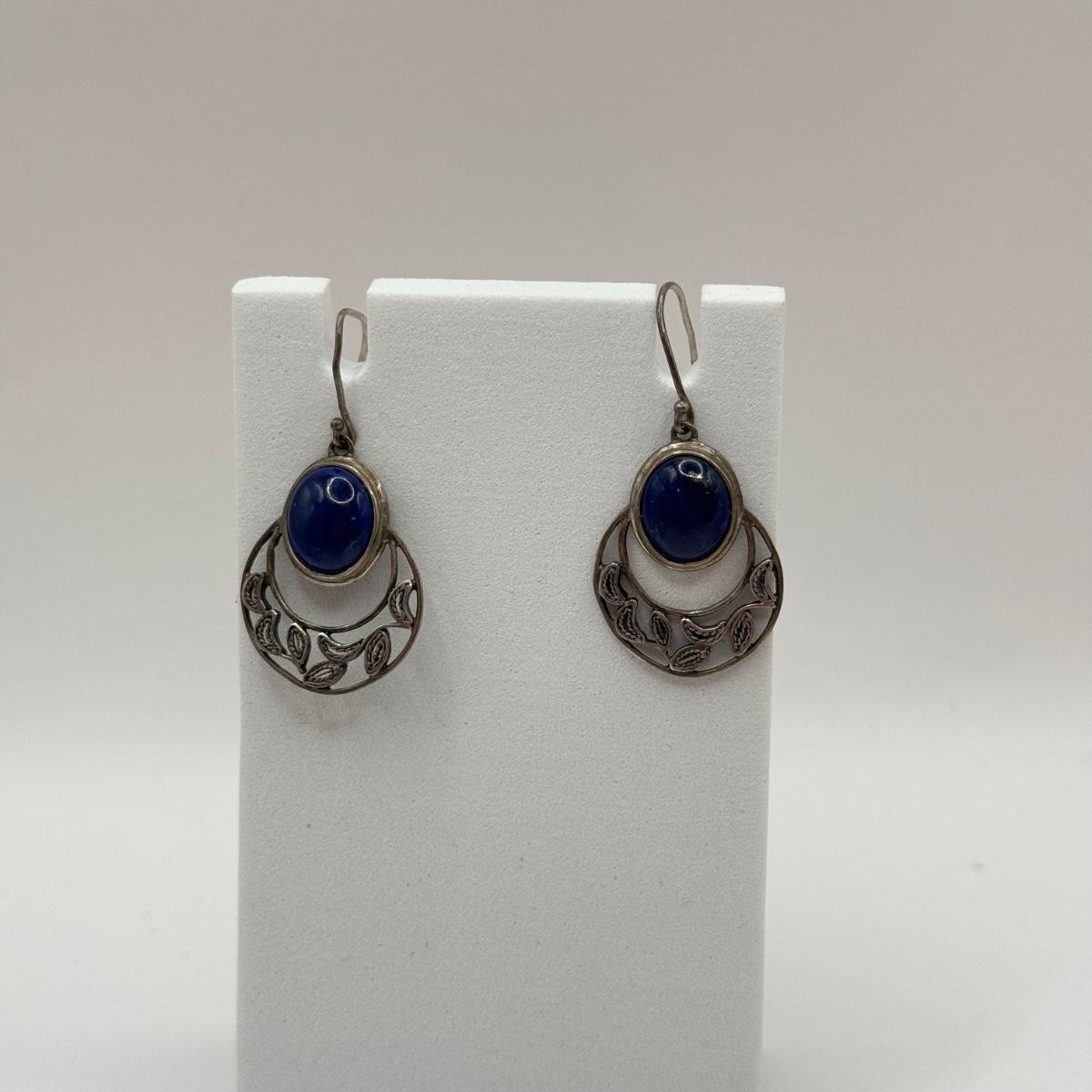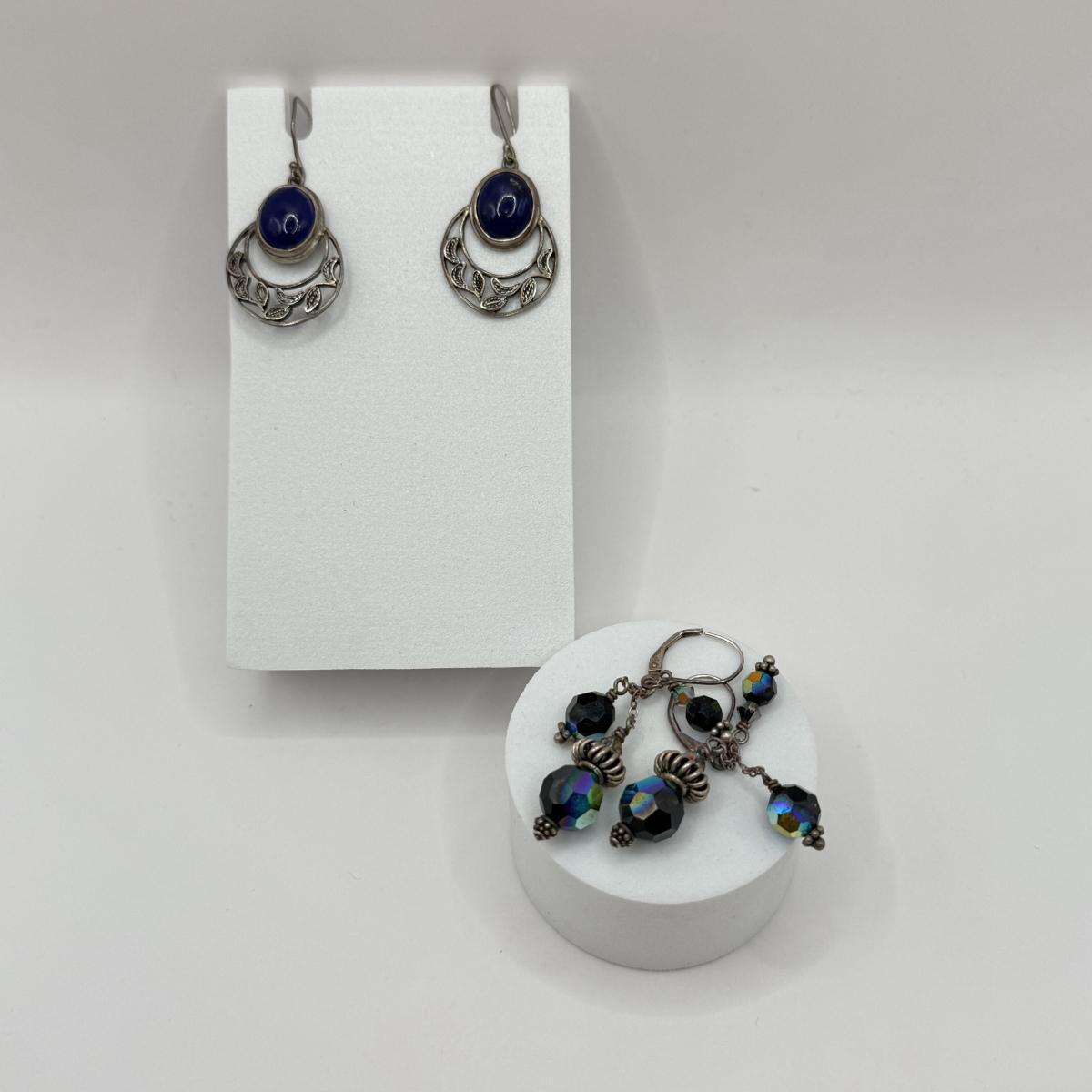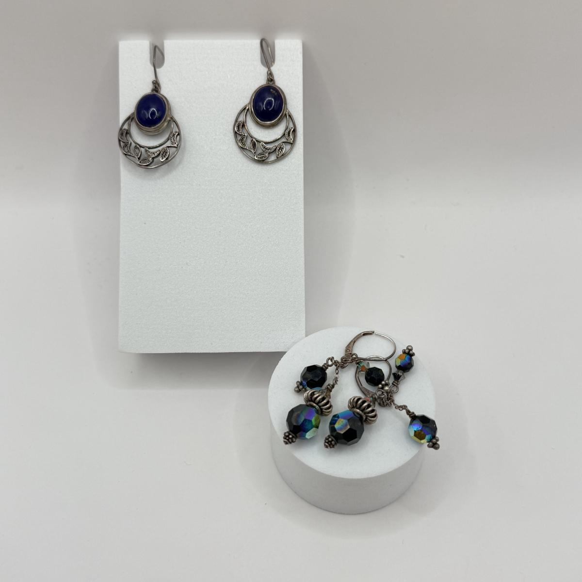 LOT 4J: Sterling Silver 925 Lapis & Blue Auroa Borealis Pierced Earrings