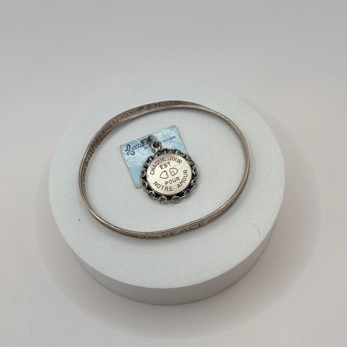 LOT 5J: Sterling Silver Peace, Hope, Truth Bangle Bracelet & "Love" Charm