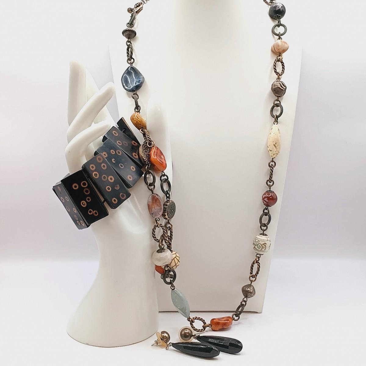 LOT 8: Premier Designs Acrylic and Brass-Tone Necklace with Vintage Costume Jewelry Bracelet and Earrings