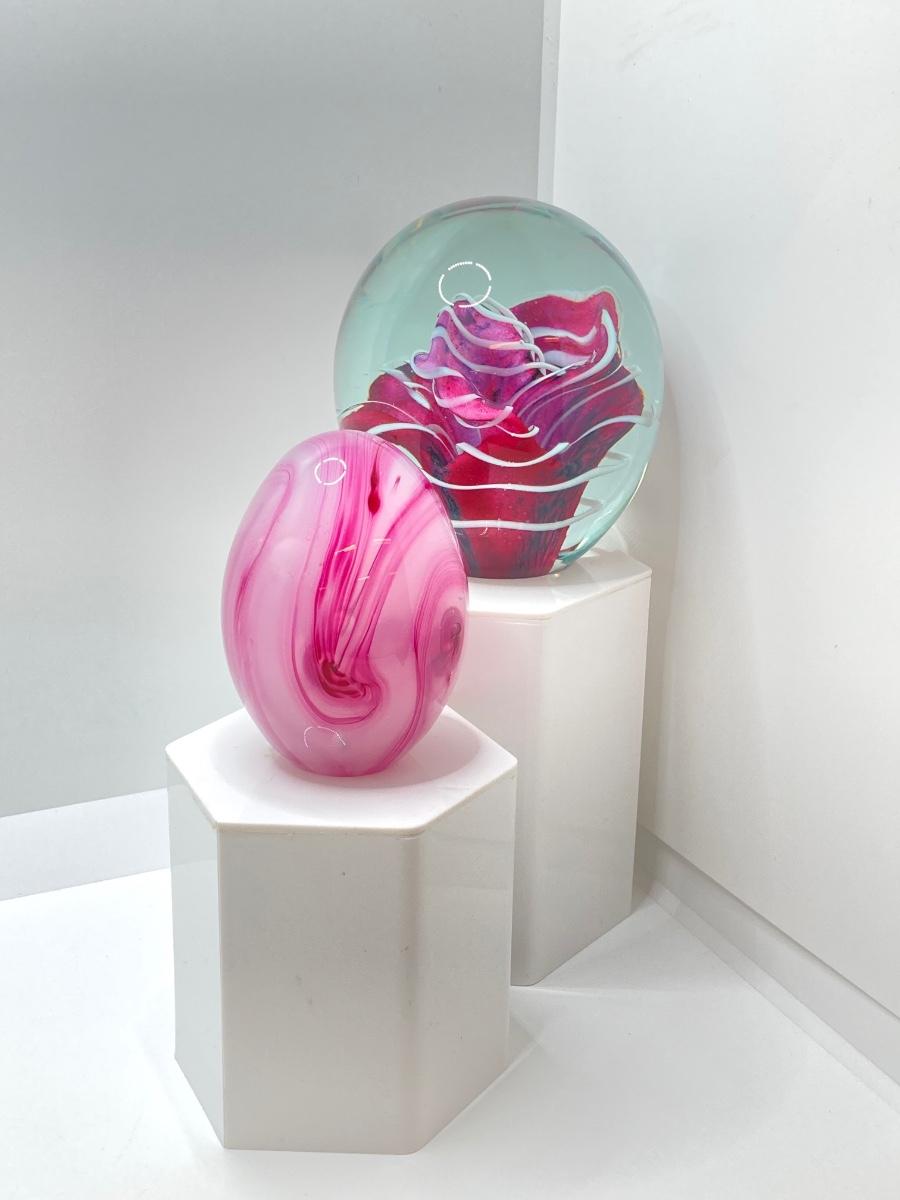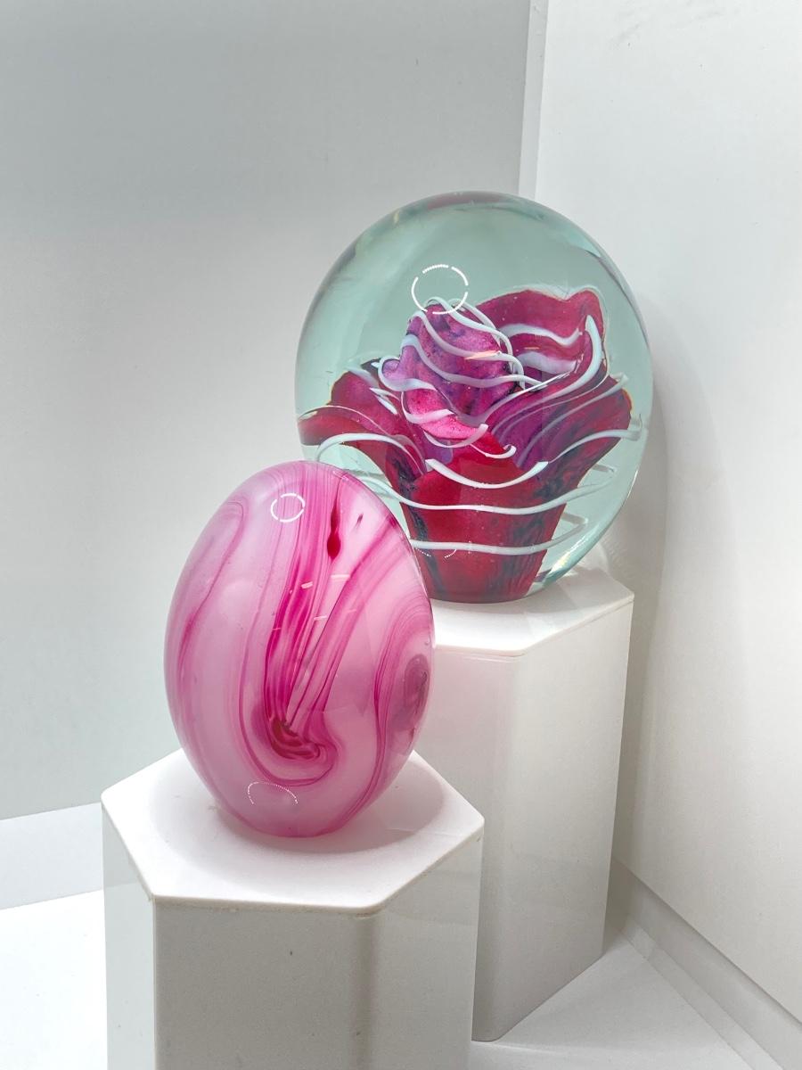LOT 11: Gorgeous Pair of Art Glass Paperweights - One Signed and Dated by Artist