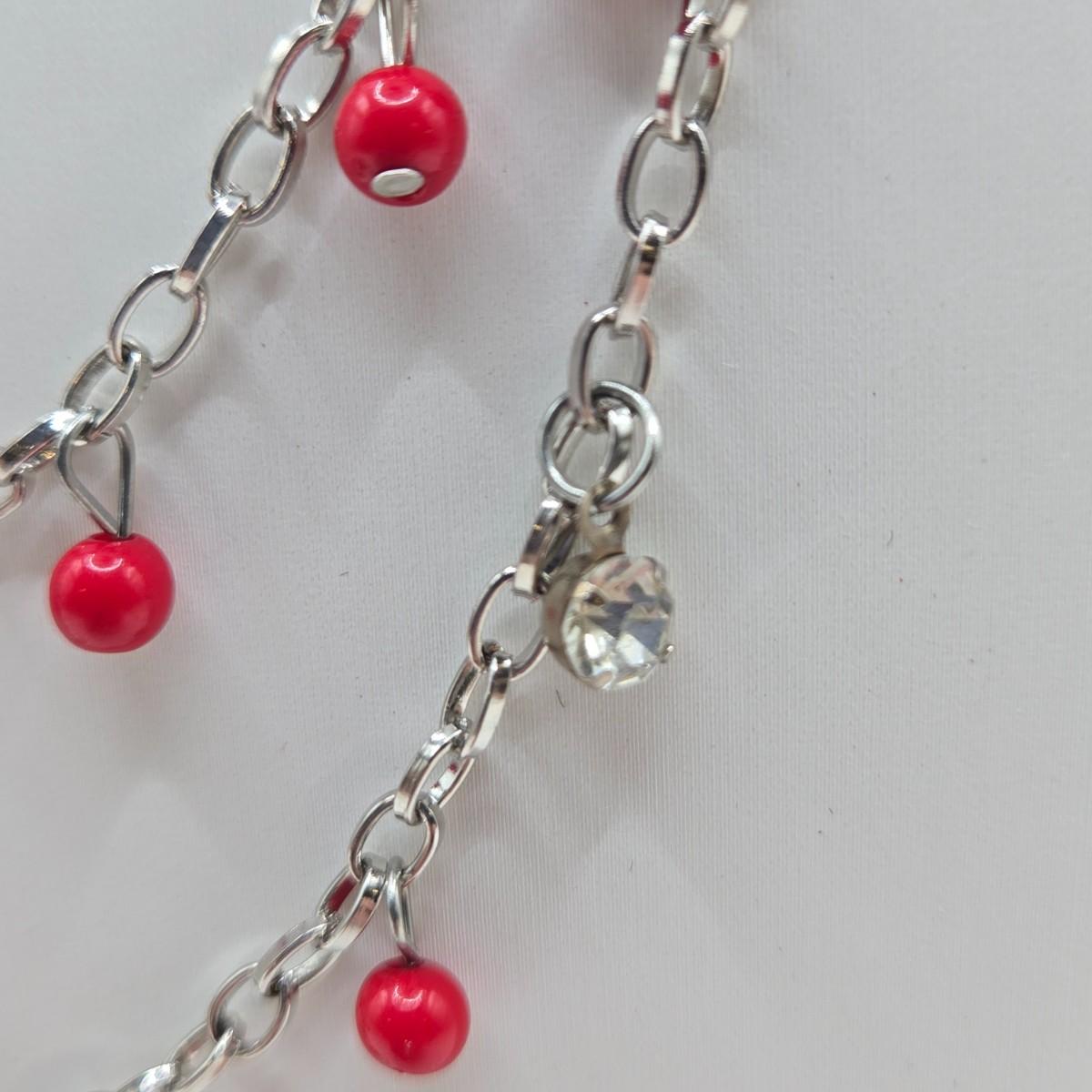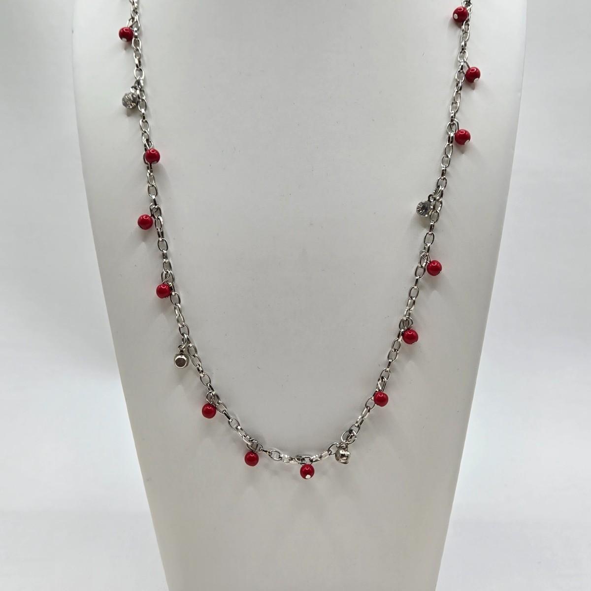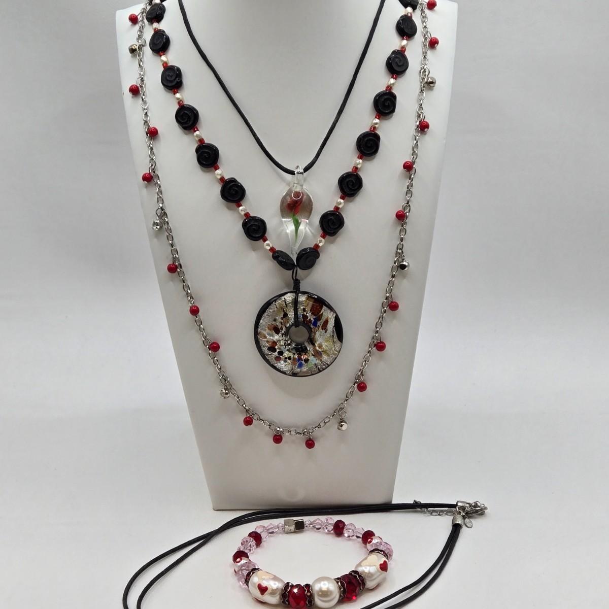 LOT 30: Beaded Necklace w/ Glass Pendant, Leather Necklace w/ Glass Charm, Silver-tone Chain Necklace w/ Red Beads, and More