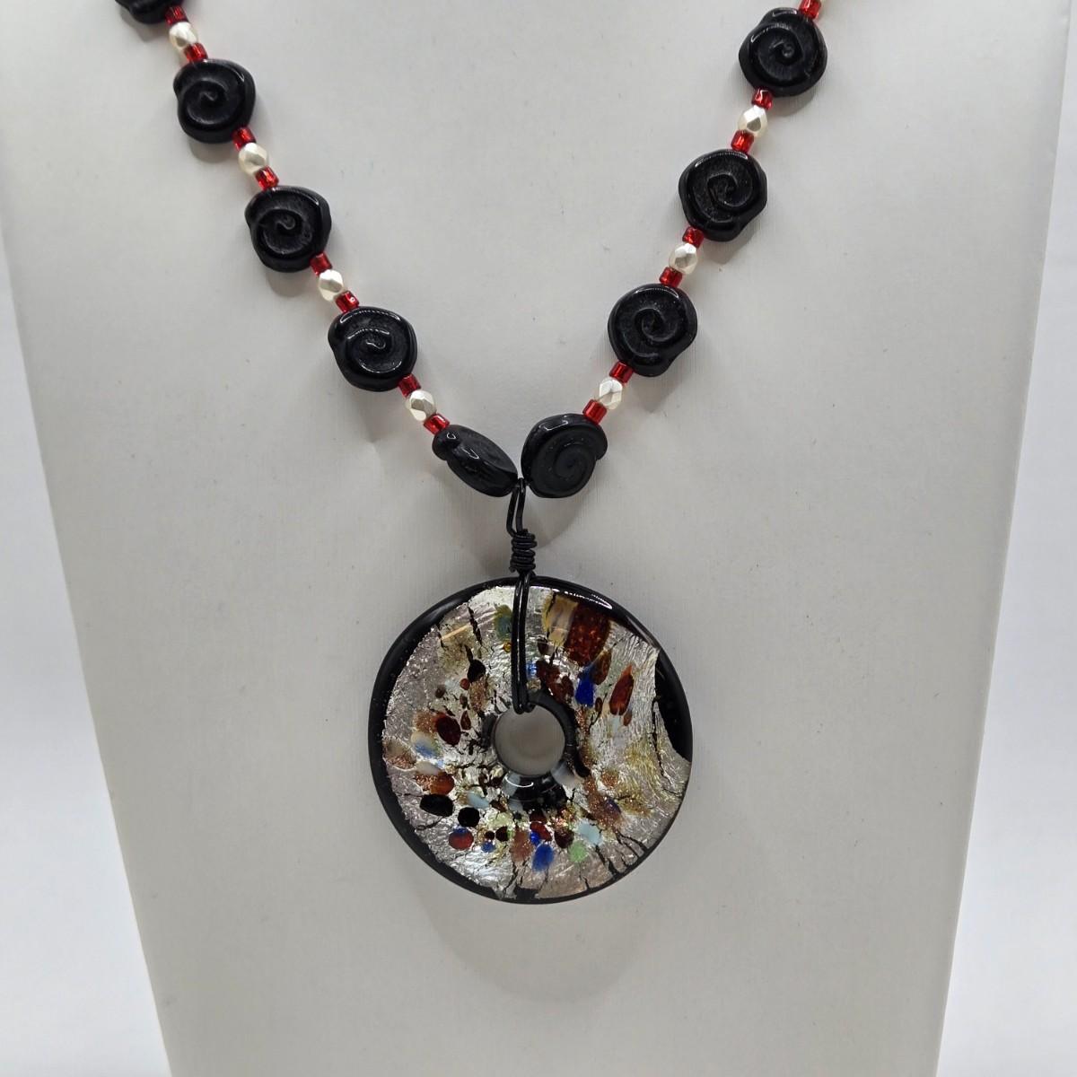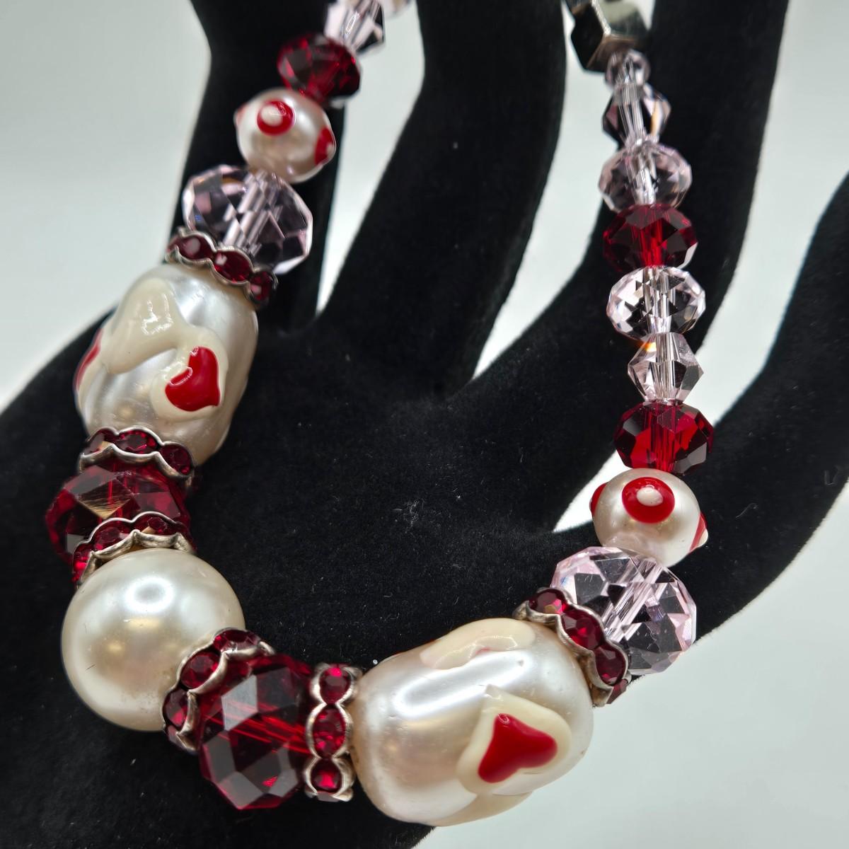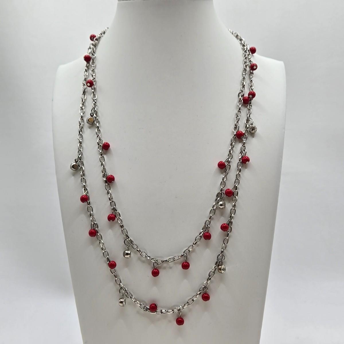 LOT 30: Beaded Necklace w/ Glass Pendant, Leather Necklace w/ Glass Charm, Silver-tone Chain Necklace w/ Red Beads, and More