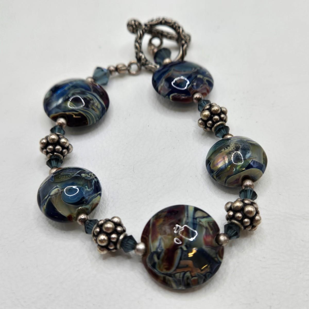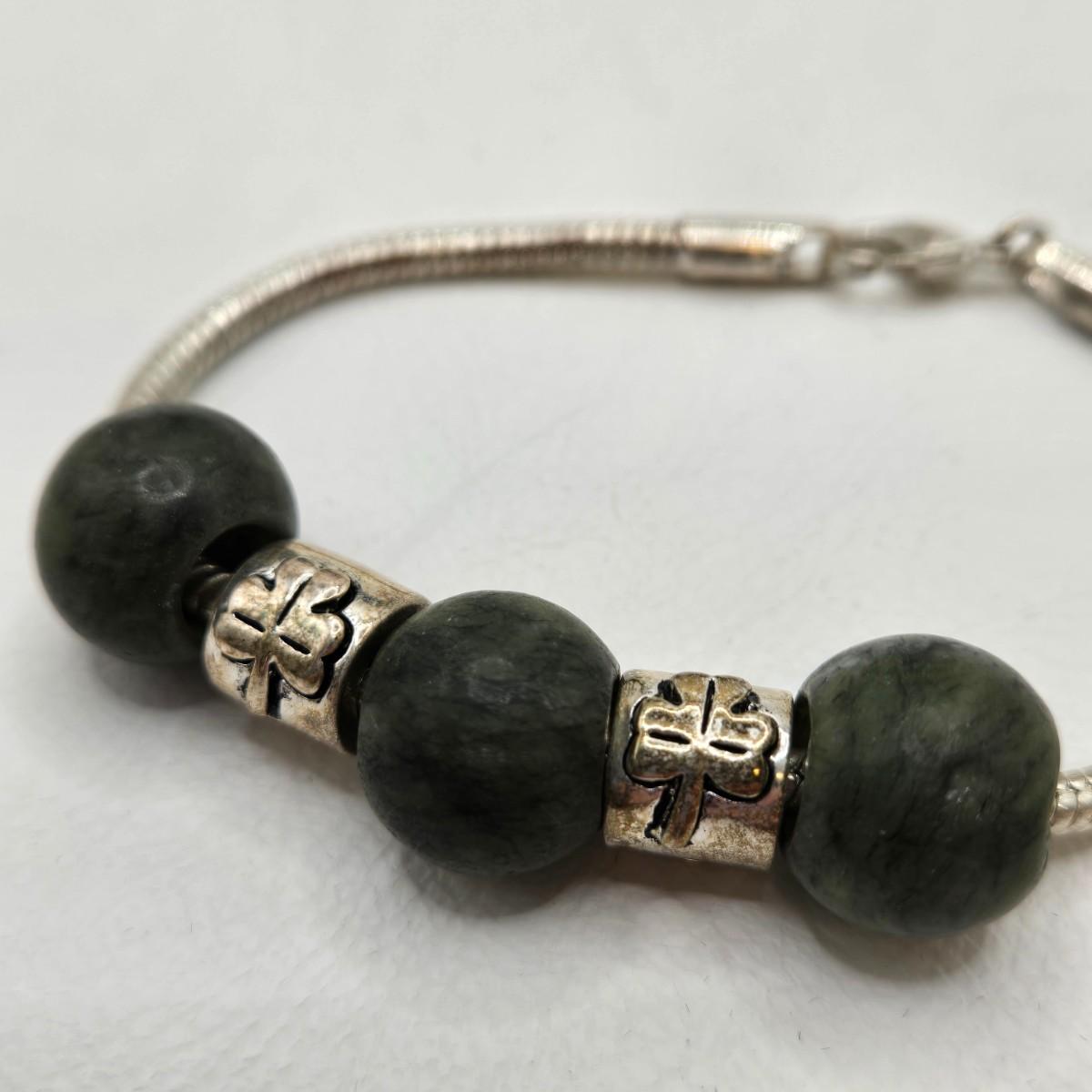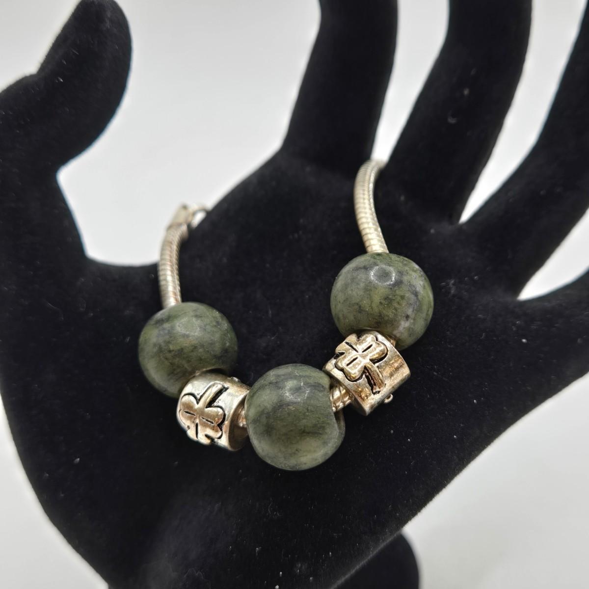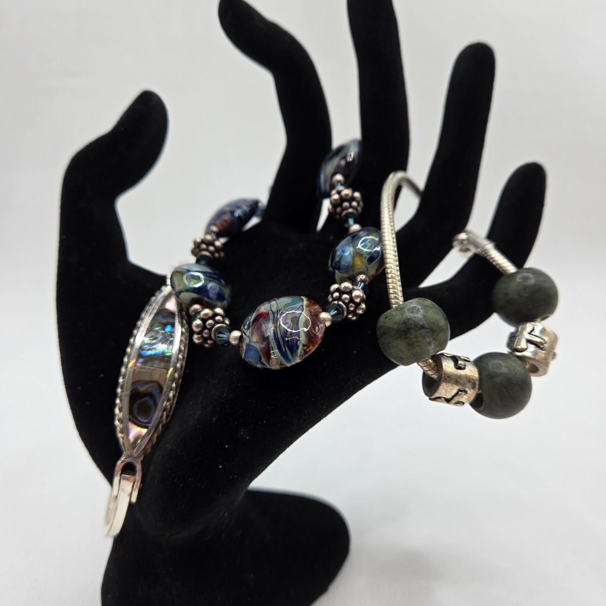 LOT 31: Beautiful Multi-Colored Bead Bracelet, Green Bead and Silver Shamrock Charm Bracelet, and Silver-tone Abalone Bracelet