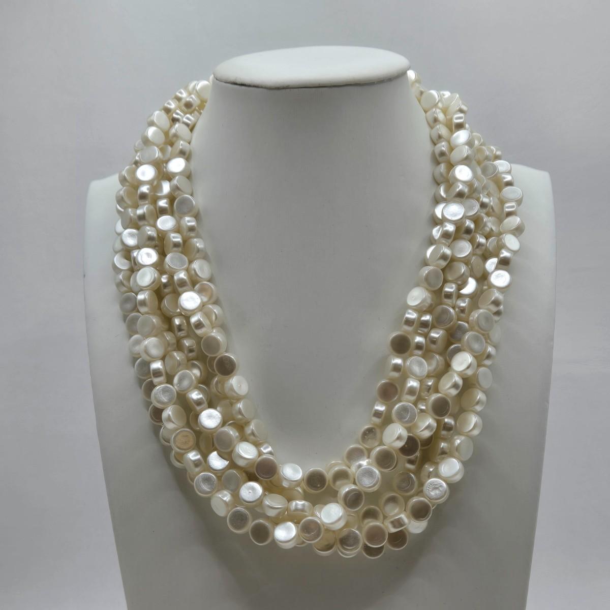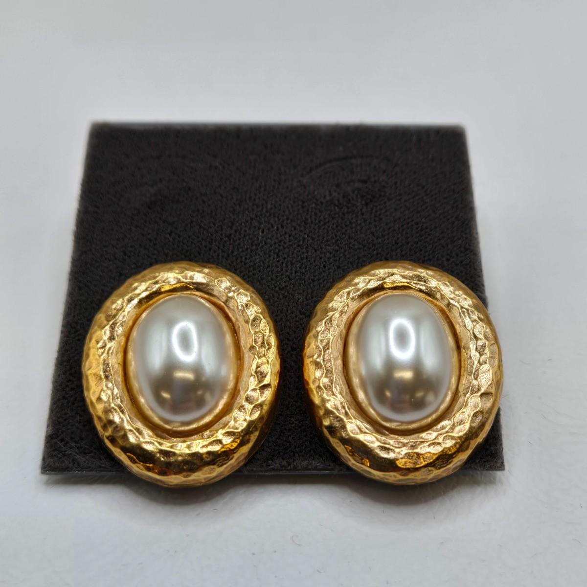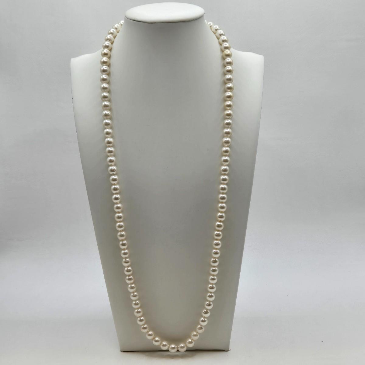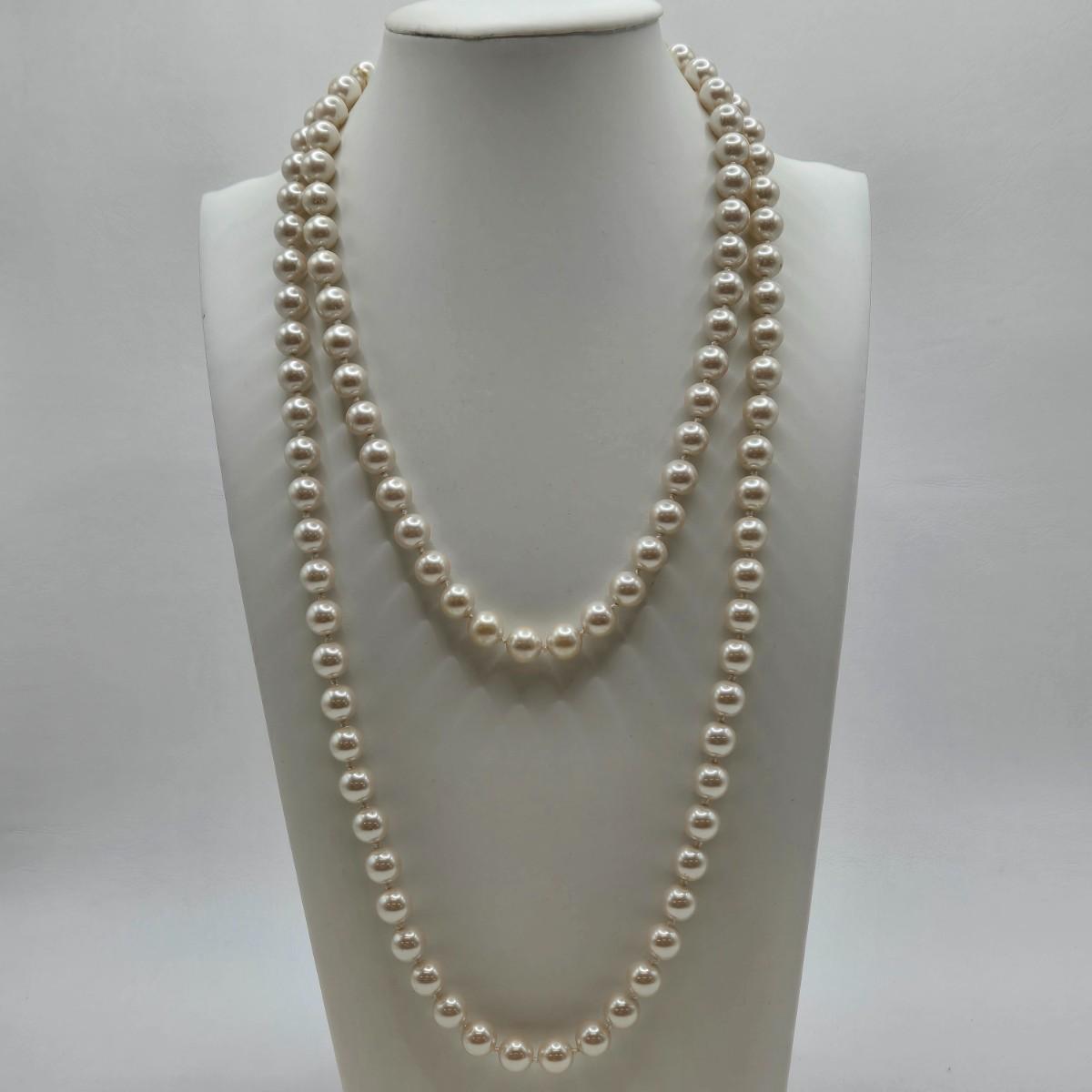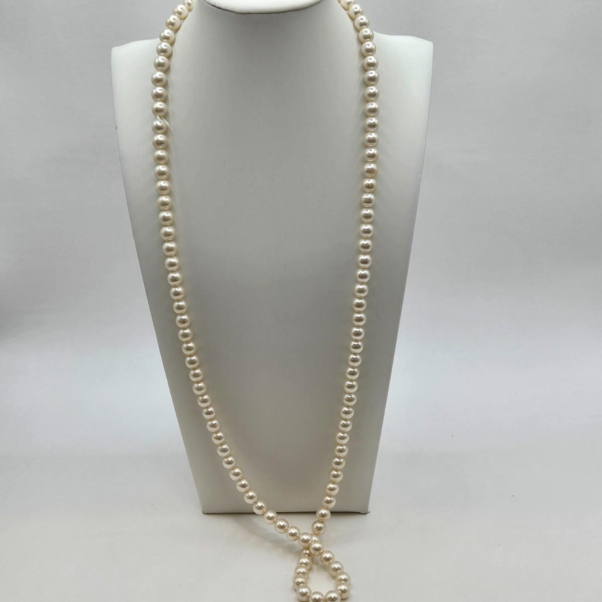 LOT 33: Three Faux Pearl Neclaces, Multiple Strand Pearl-like Necklace w/ Gold-tone Clasp, and Gold-tone and Pearl-like Clip Earrings