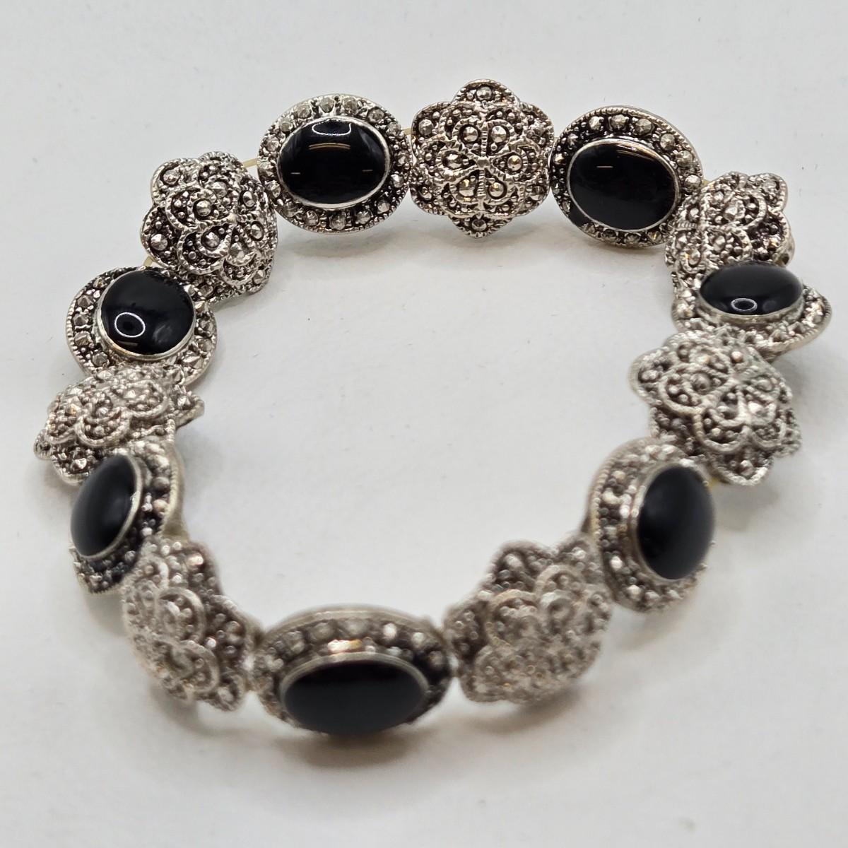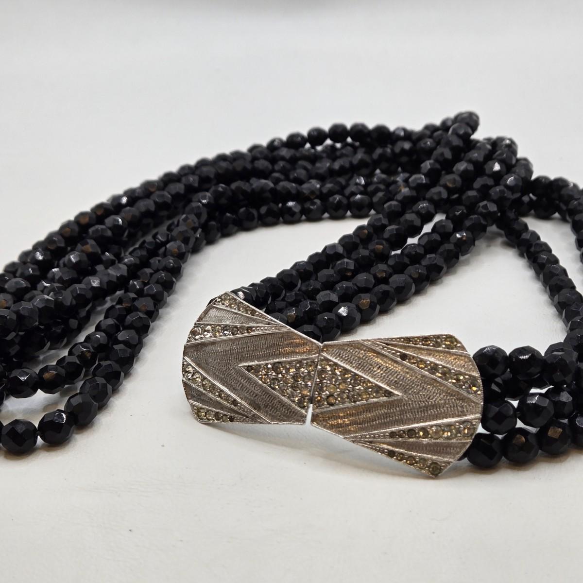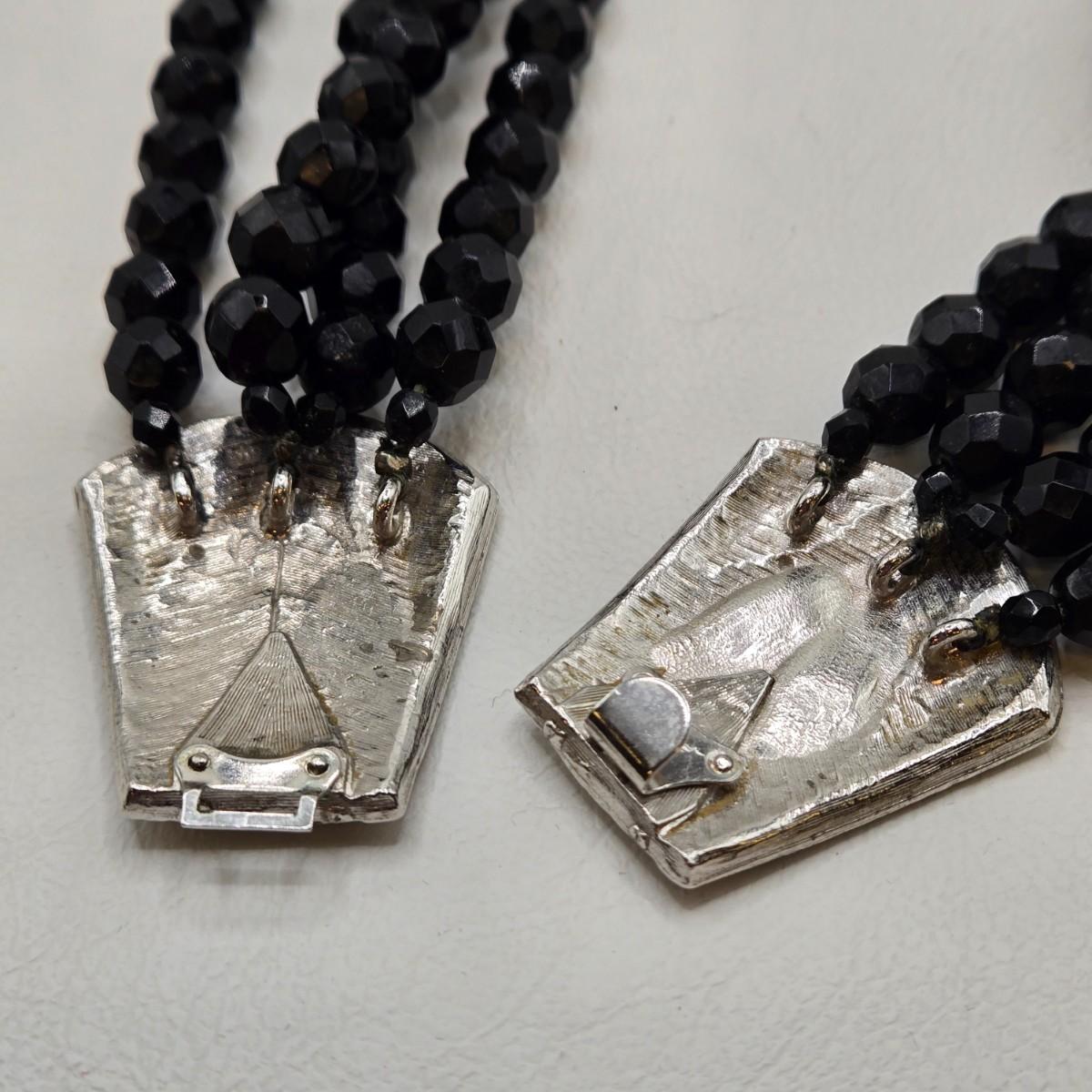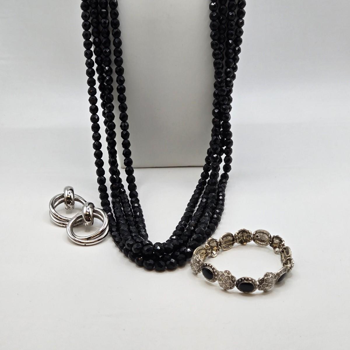 LOT 38: Black Bead Necklace, Silver-tone and Gemstone Bracelet, and Pair if Pierced Earrings