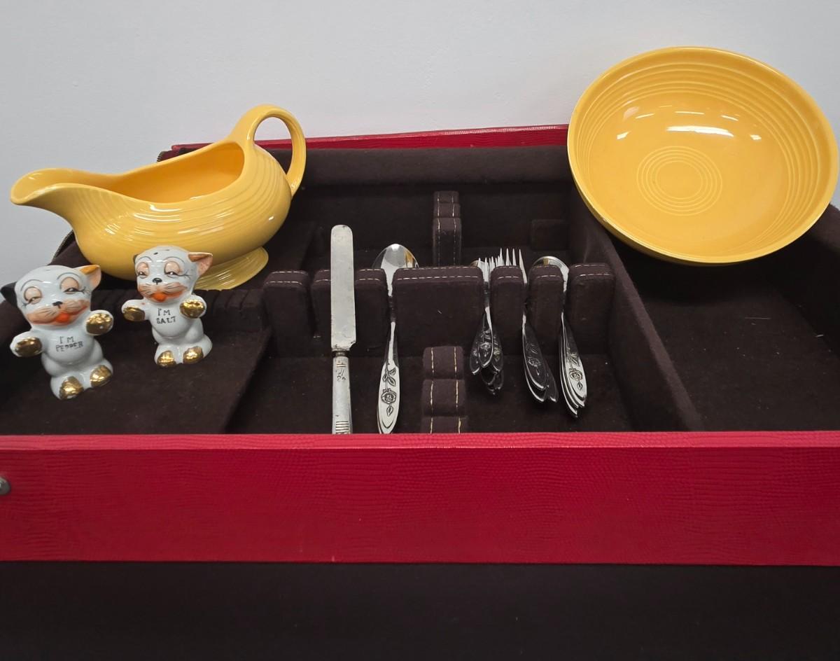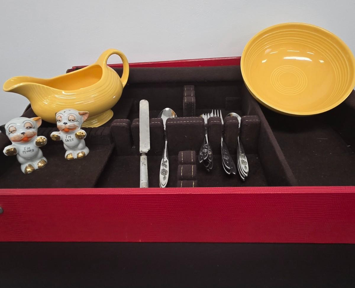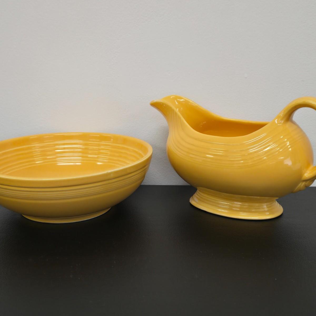 LOT 49: Fiesta Ware Bowl and Gravy Boat, Vintage Bonzo Salt & Pepper Shakers & More