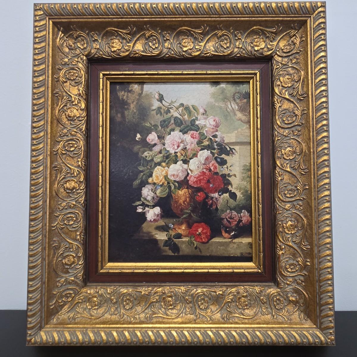 LOT 53: Still Life Floral Art in Beautiful Frame/ Decorative Arts Inc.