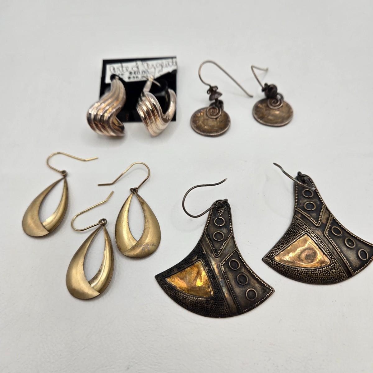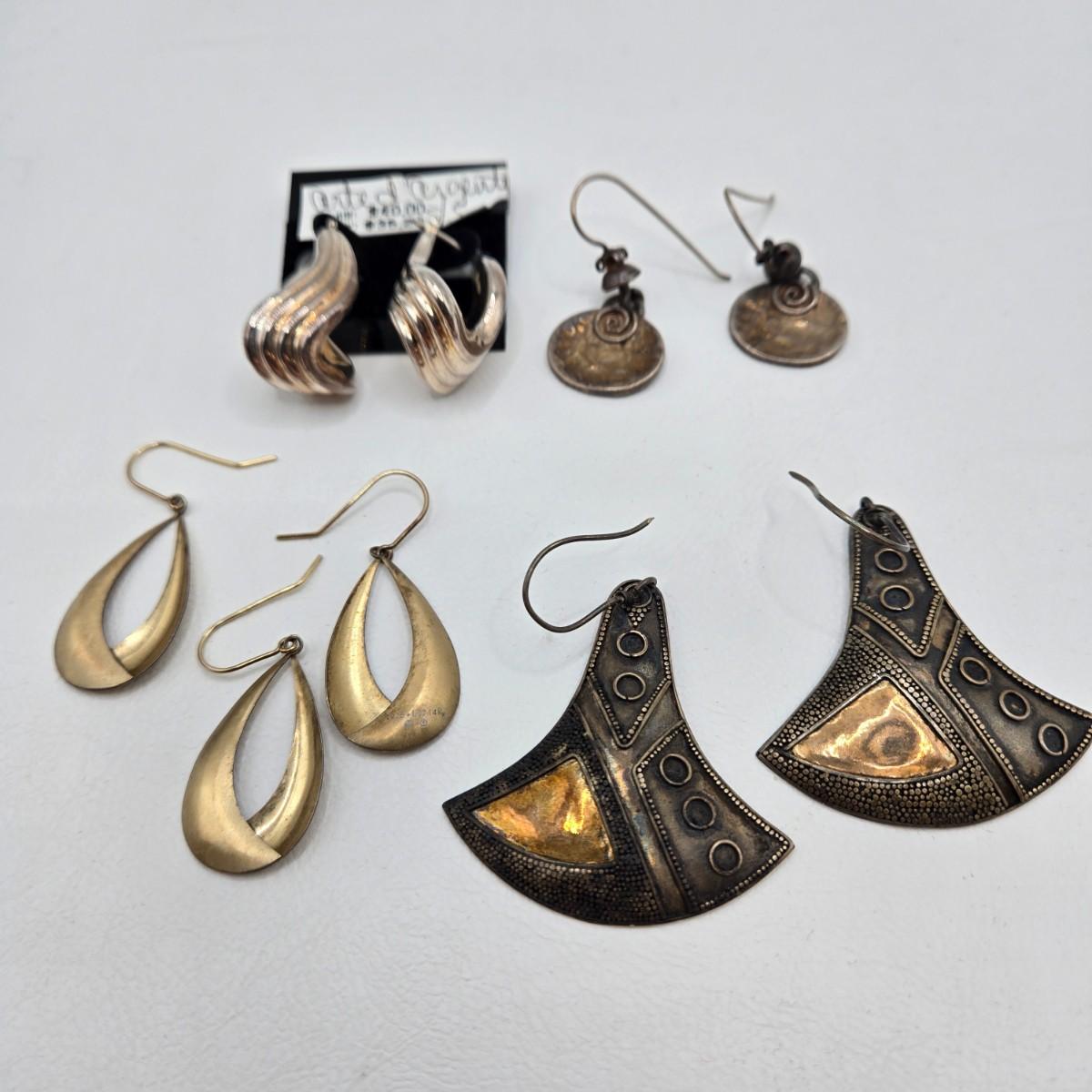 LOT 57: Earring Collection: 925, 1/10 14Ky Gold Filled, Sterling Silver Isreal, 925 Italy