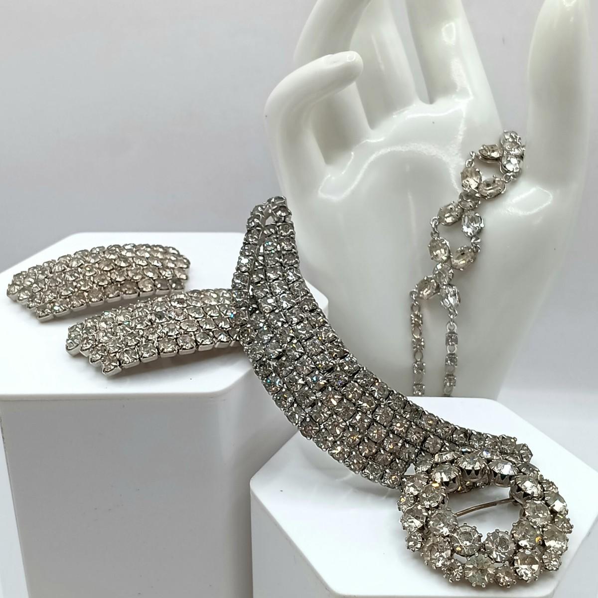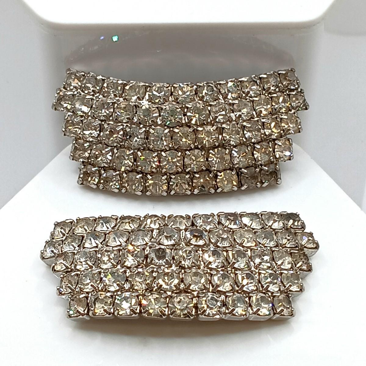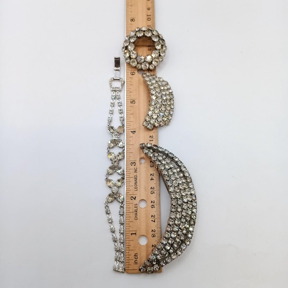 LOT 68: Vintage Rhinestone Brooches, Shoe Clips and Bracelet (Broken Clasp)