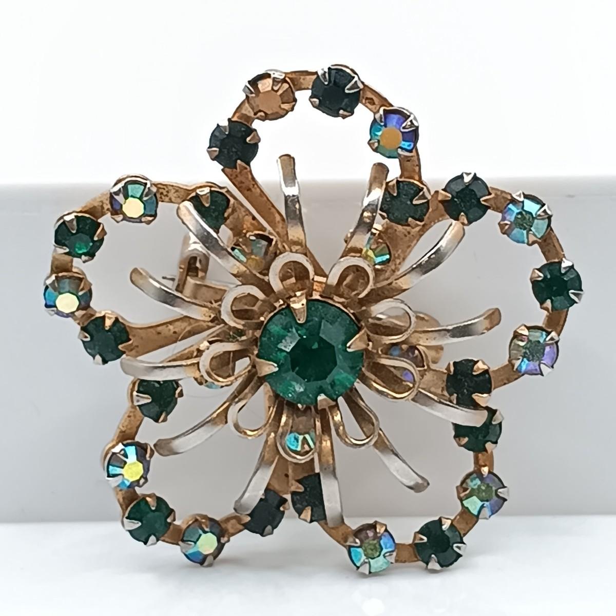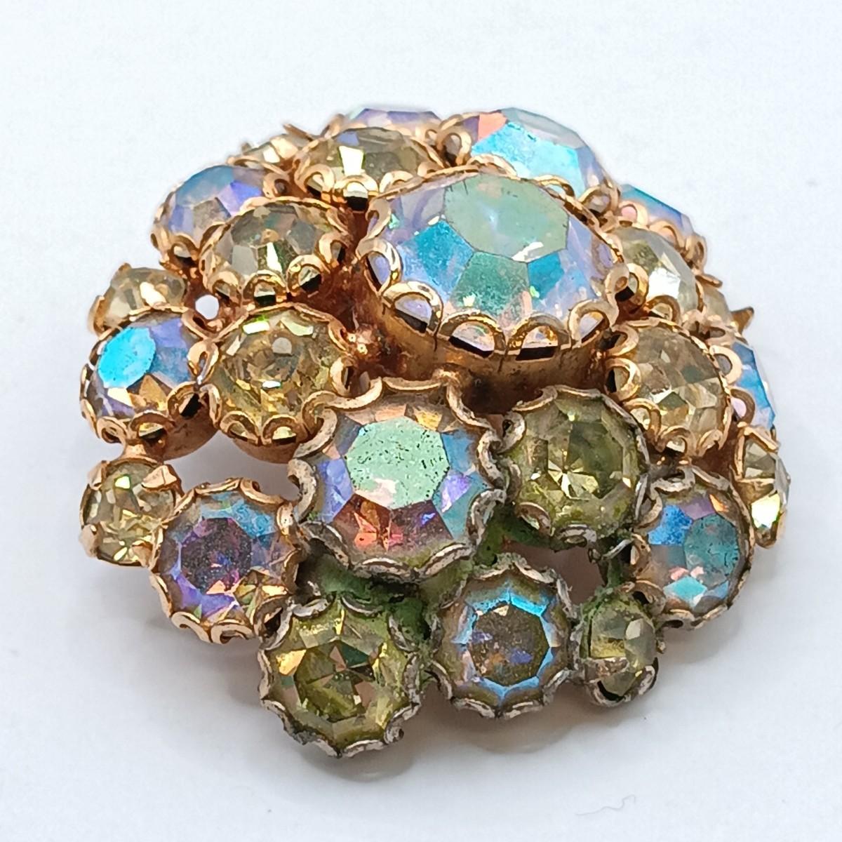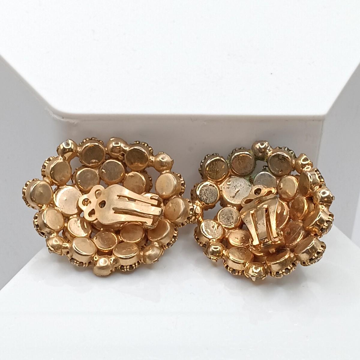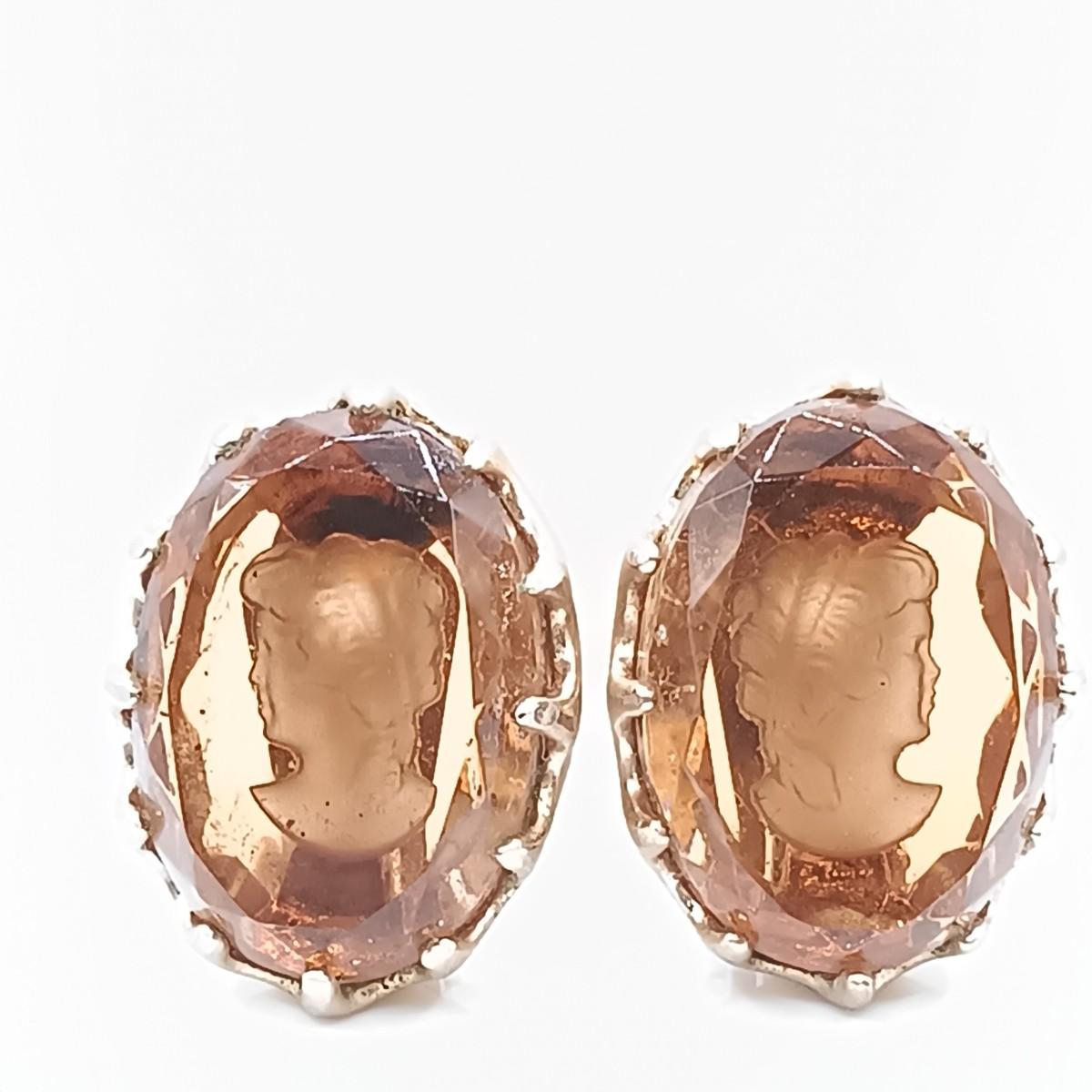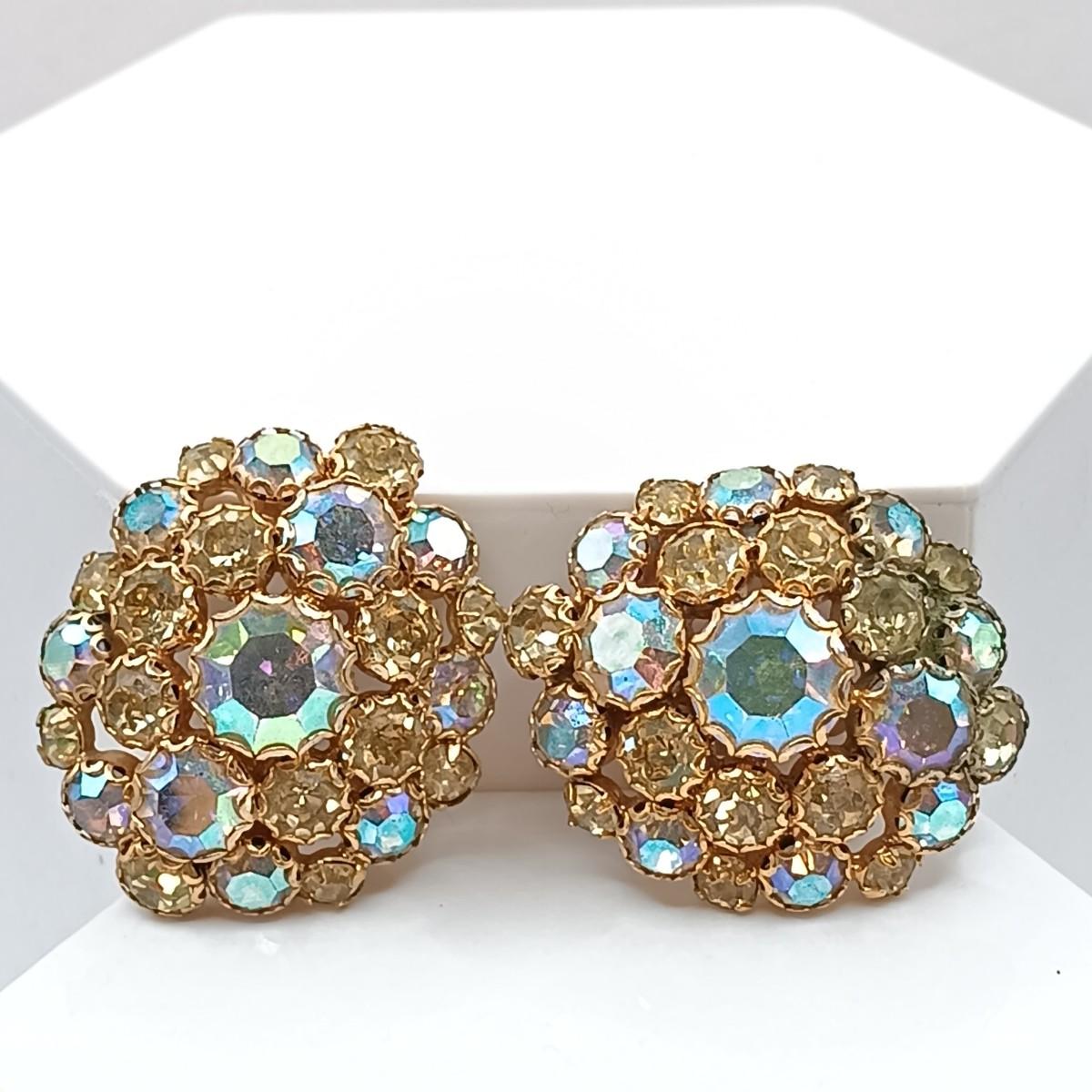 LOT 69: Vintage Smokey Topaz Cameo Glass Clip-Ons, Aurora Borealis Rhinestone Clip-Ons & More