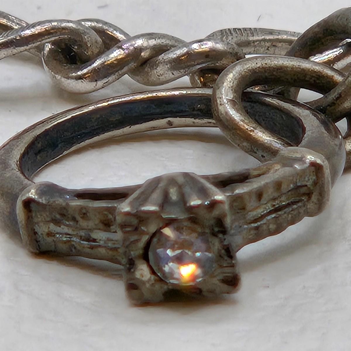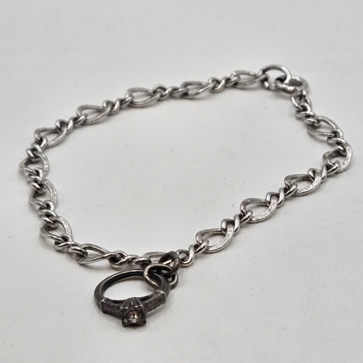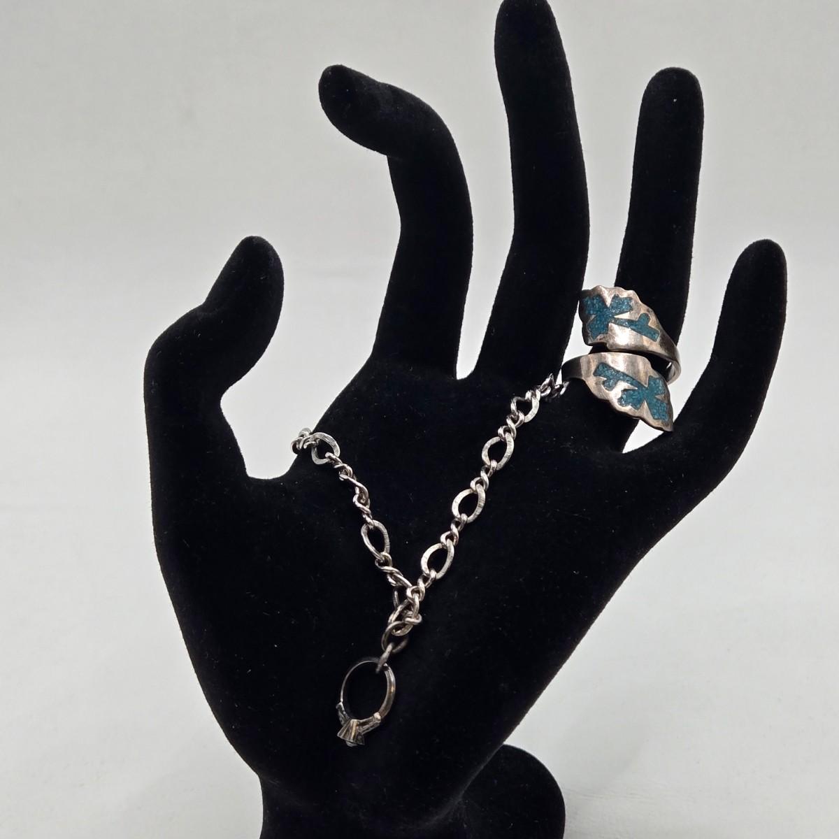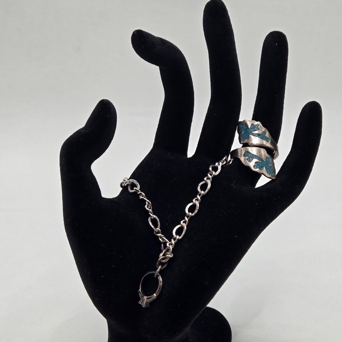 LOT 75: Sterling Engagement Charm Bracelet and Turquoise Inlay Adjustable Ring