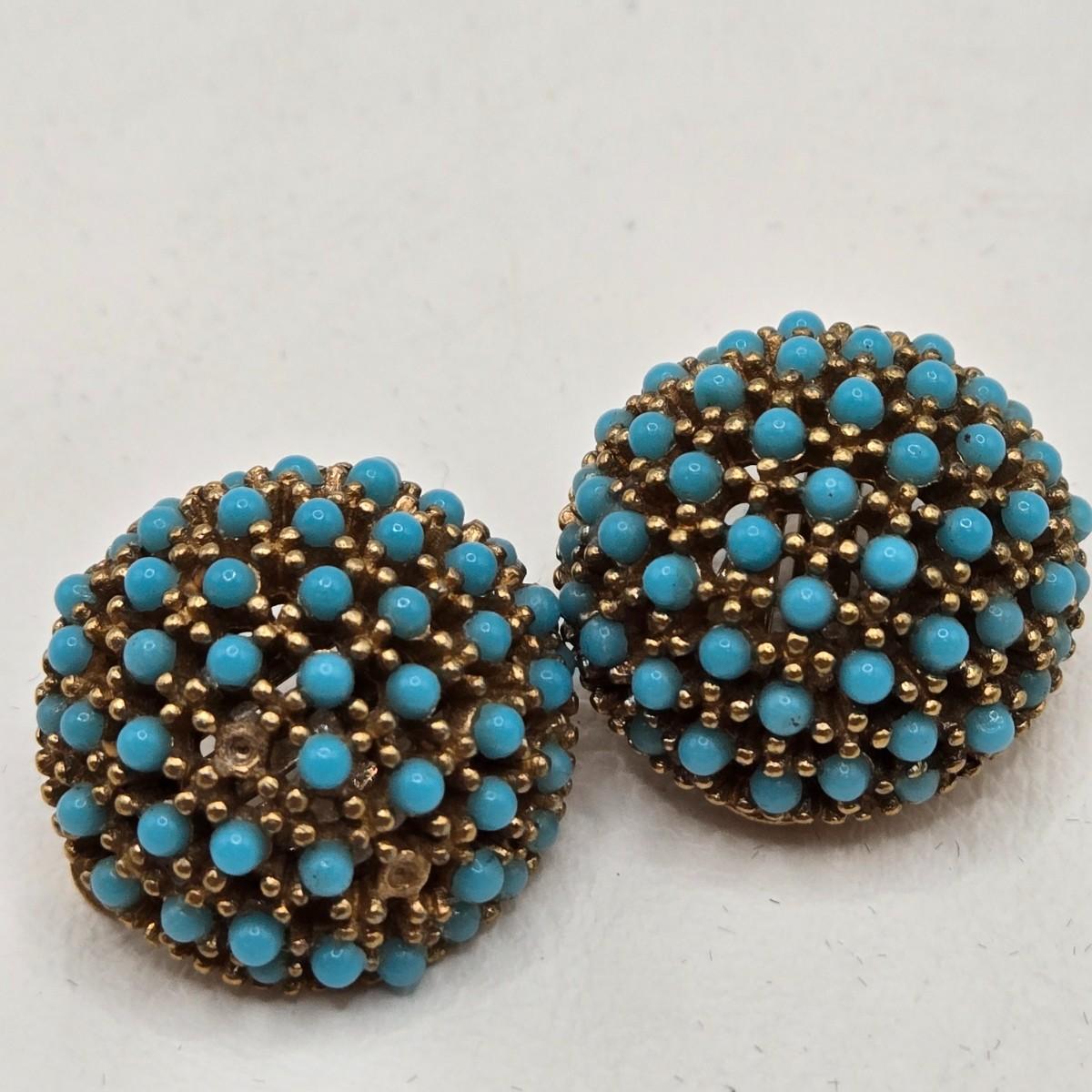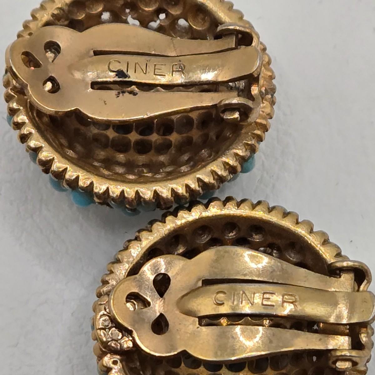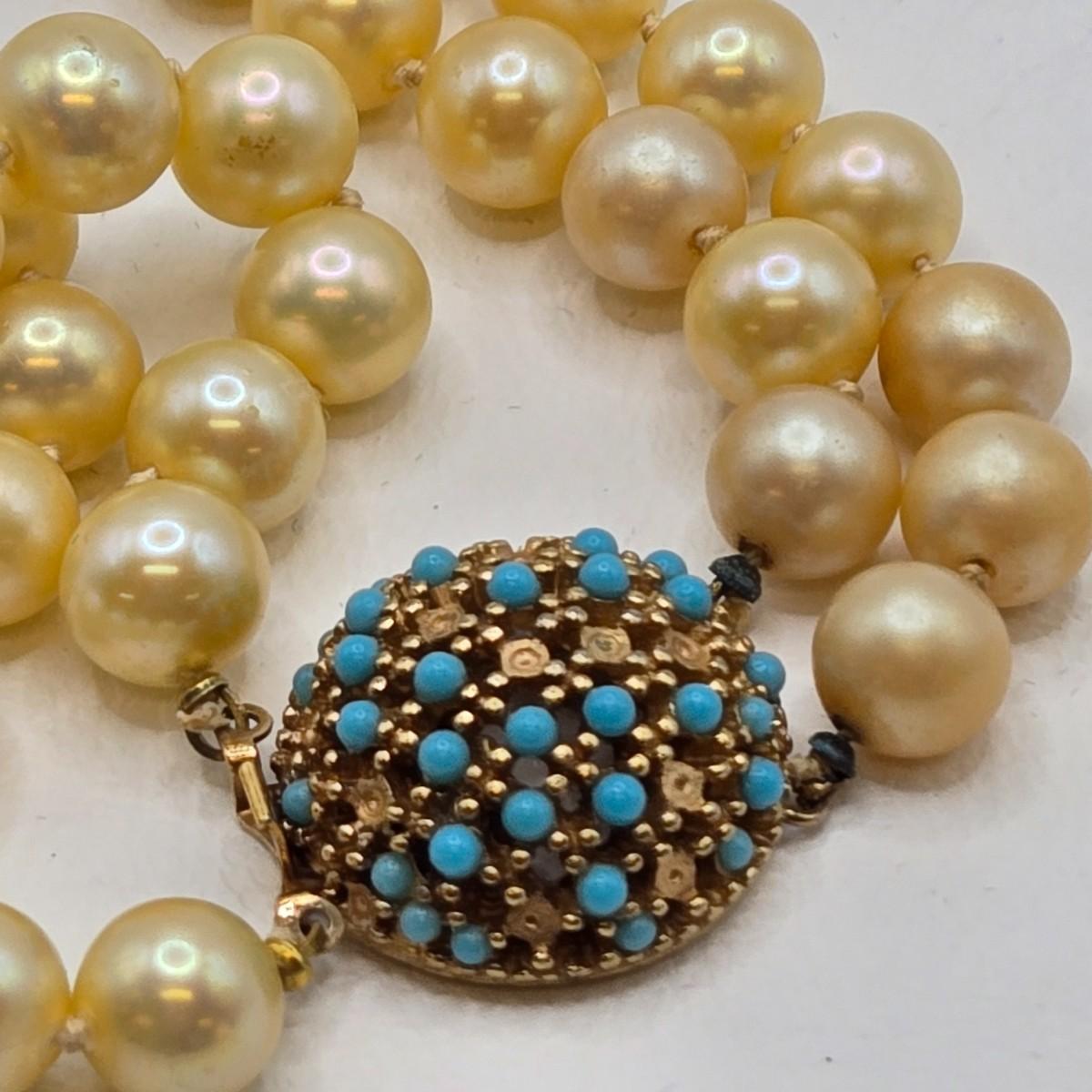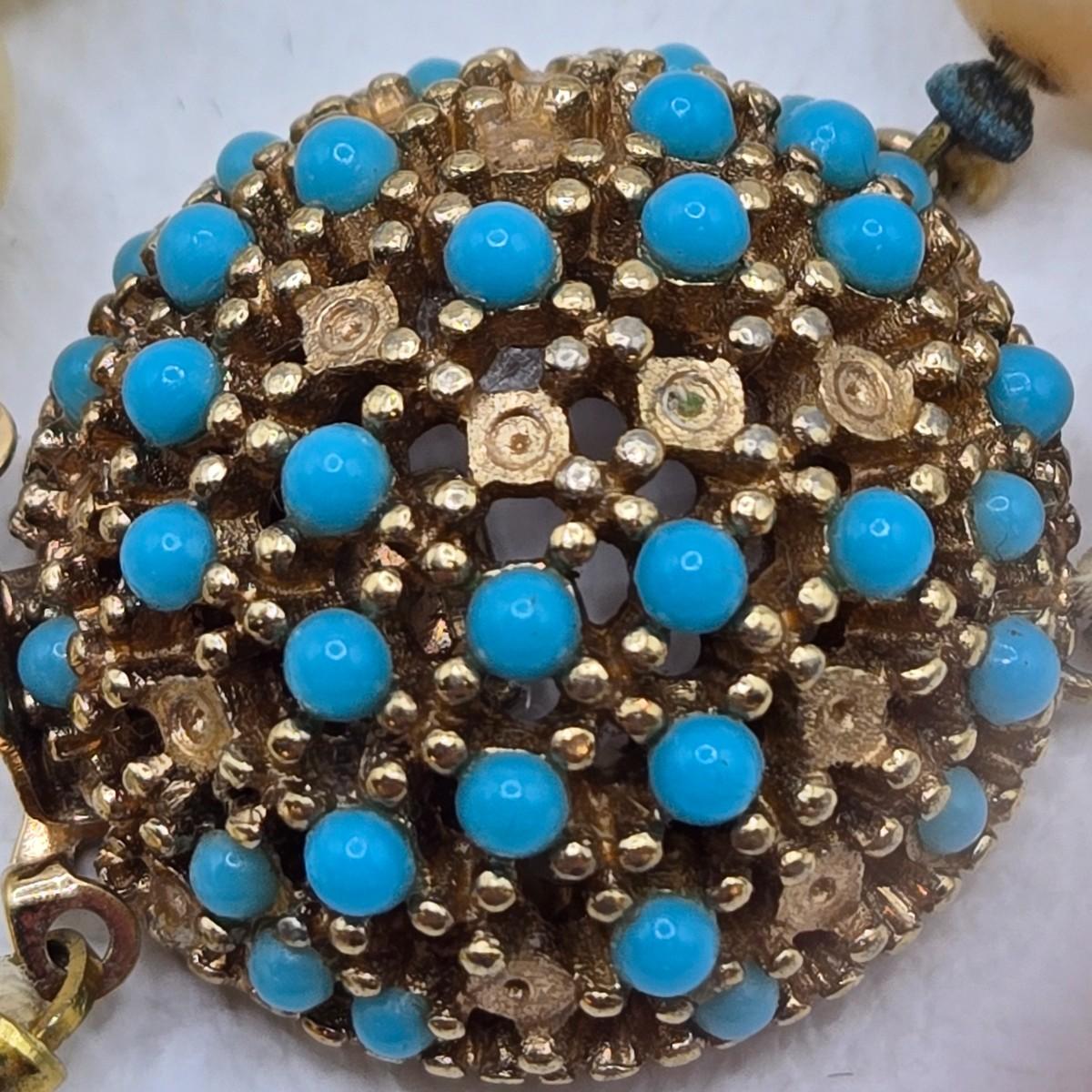 LOT 78: Ciner Glass Pearl Necklace with Faux Turquoise Clasp and Matching Clip Earrings