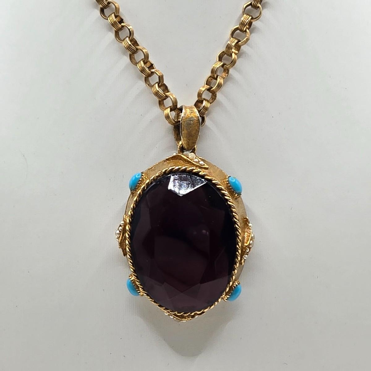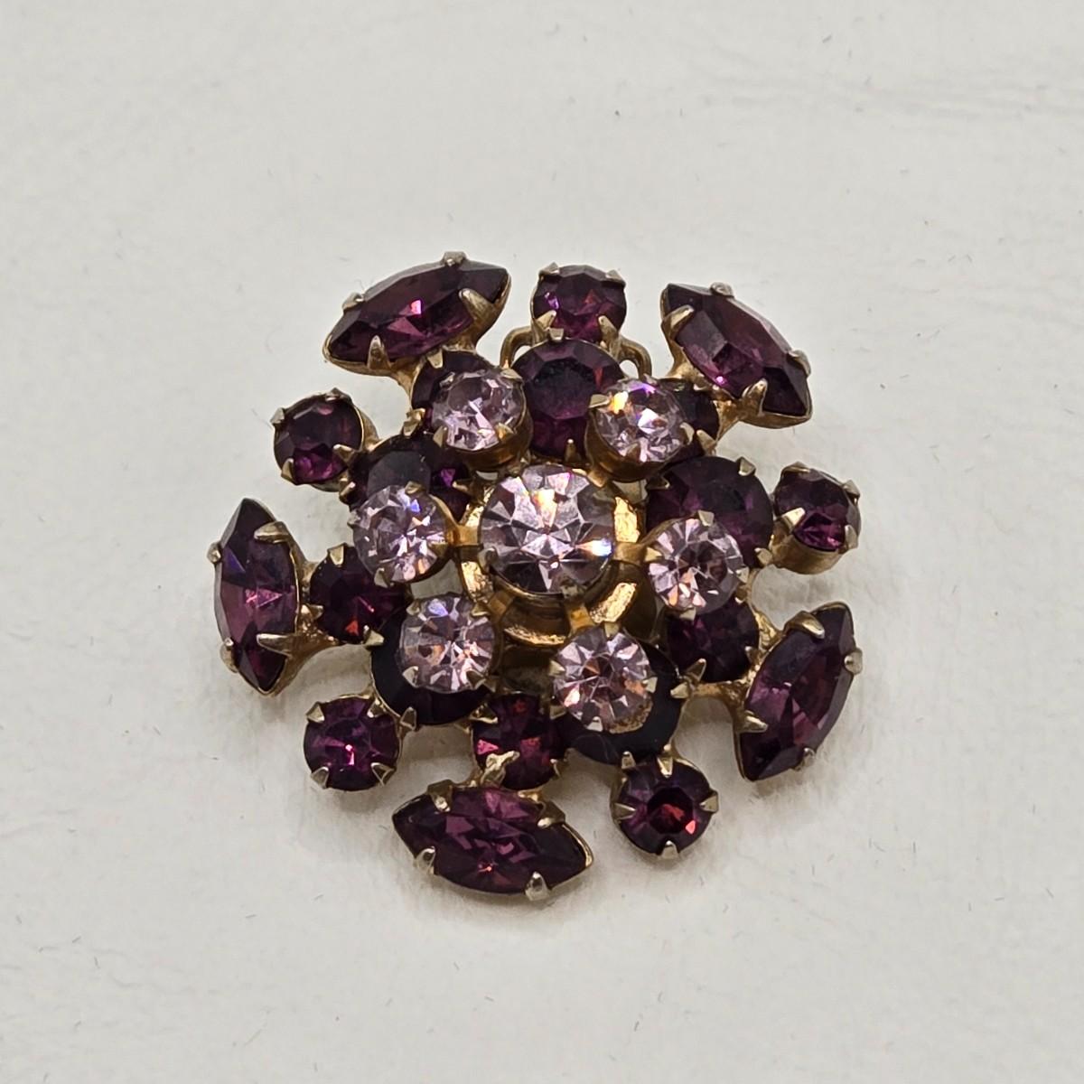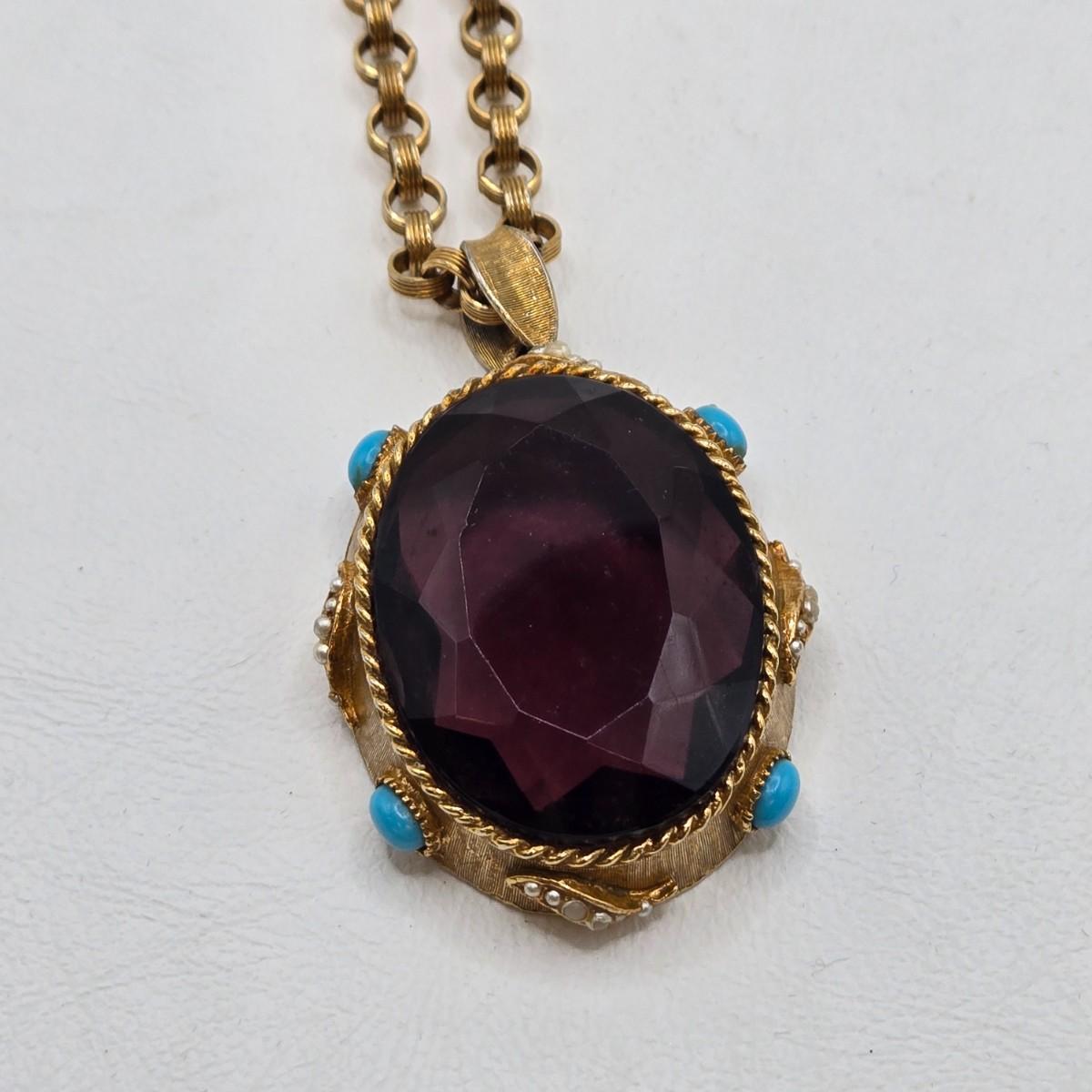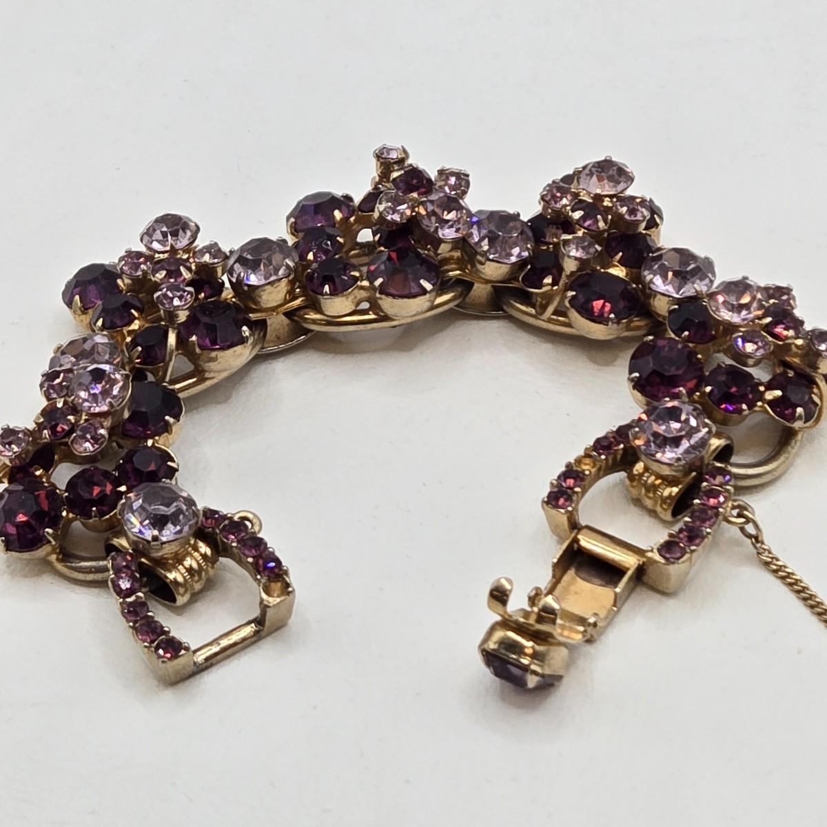 LOT 79: Capri Purple Art Glass Pendant Necklace, Two Tone Purple Rhinestone Bracelet w/ Safety Clasp, and One Matching Clip Earring