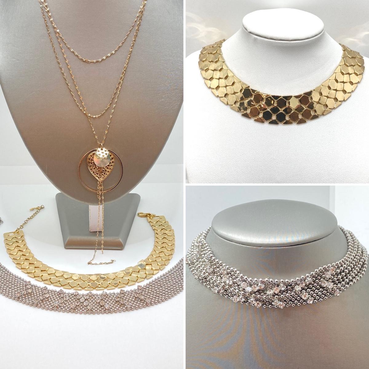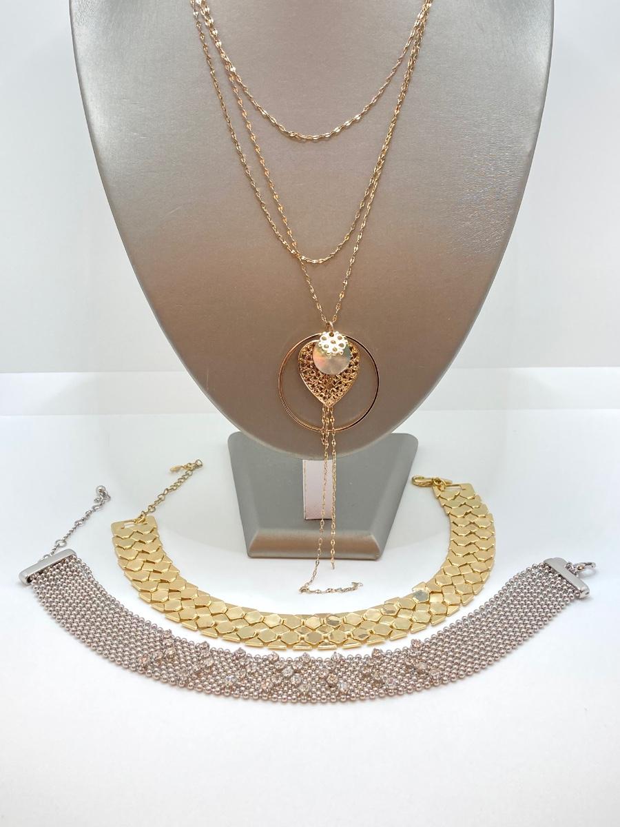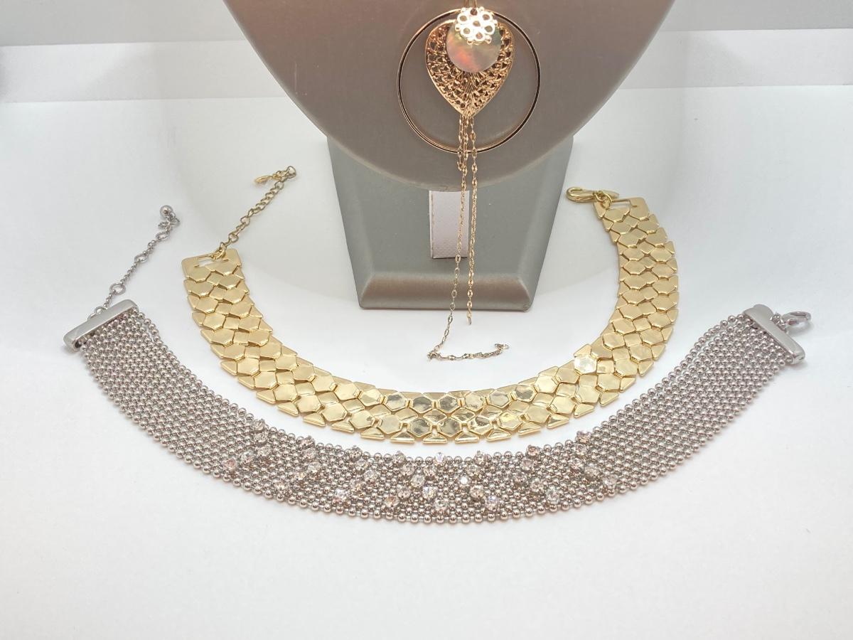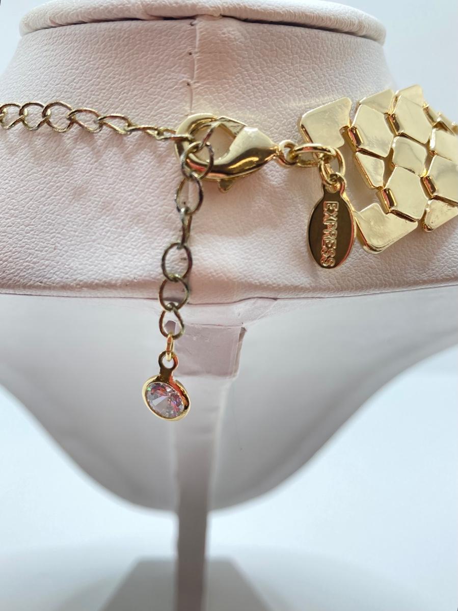 LOT 87: Vintage Express Rhinestone 15" Choker, Express Gold Tone 15" Choker and Multi-Strand Pendant Necklace 16"