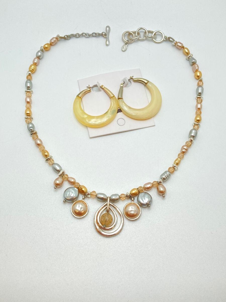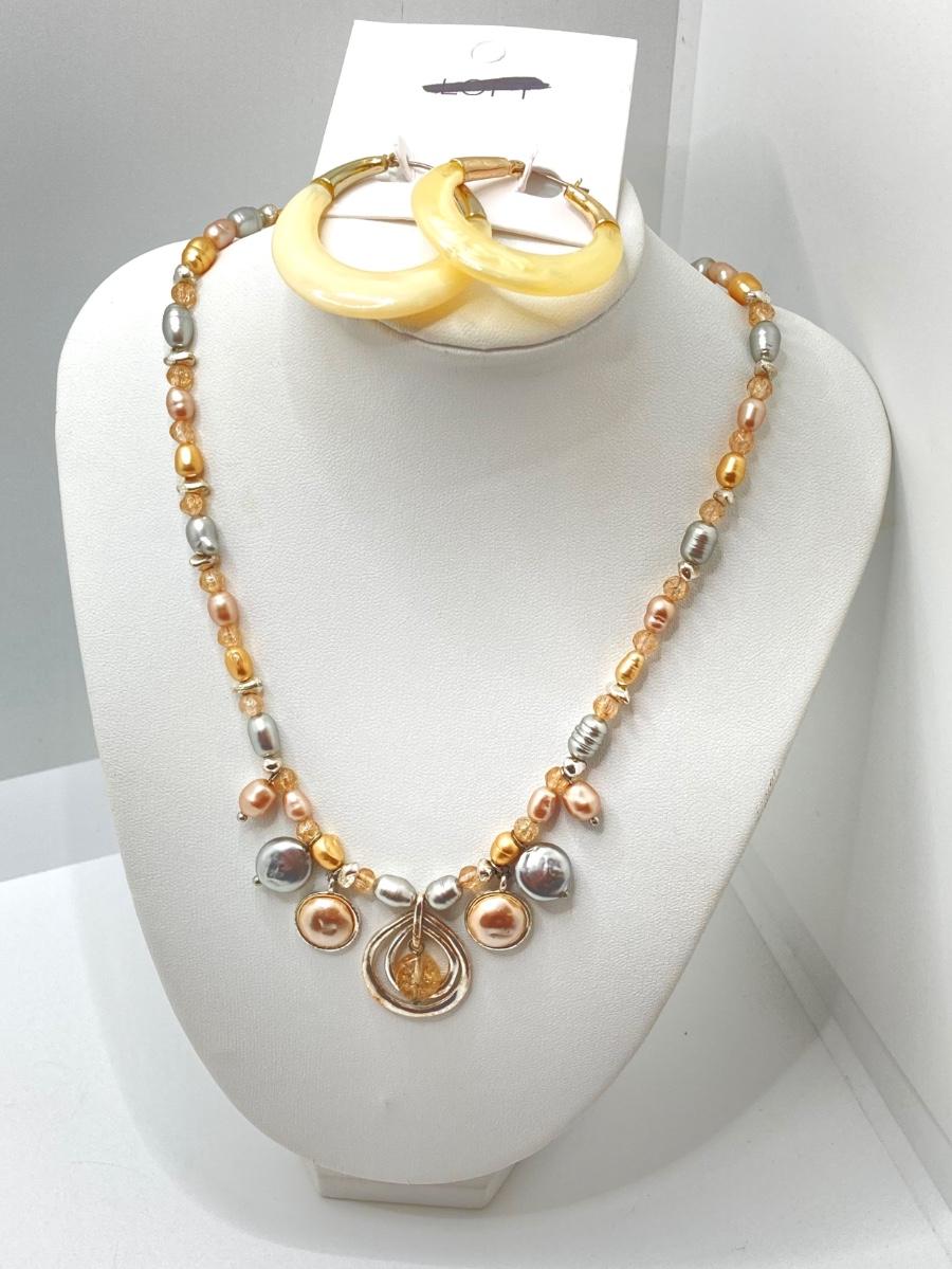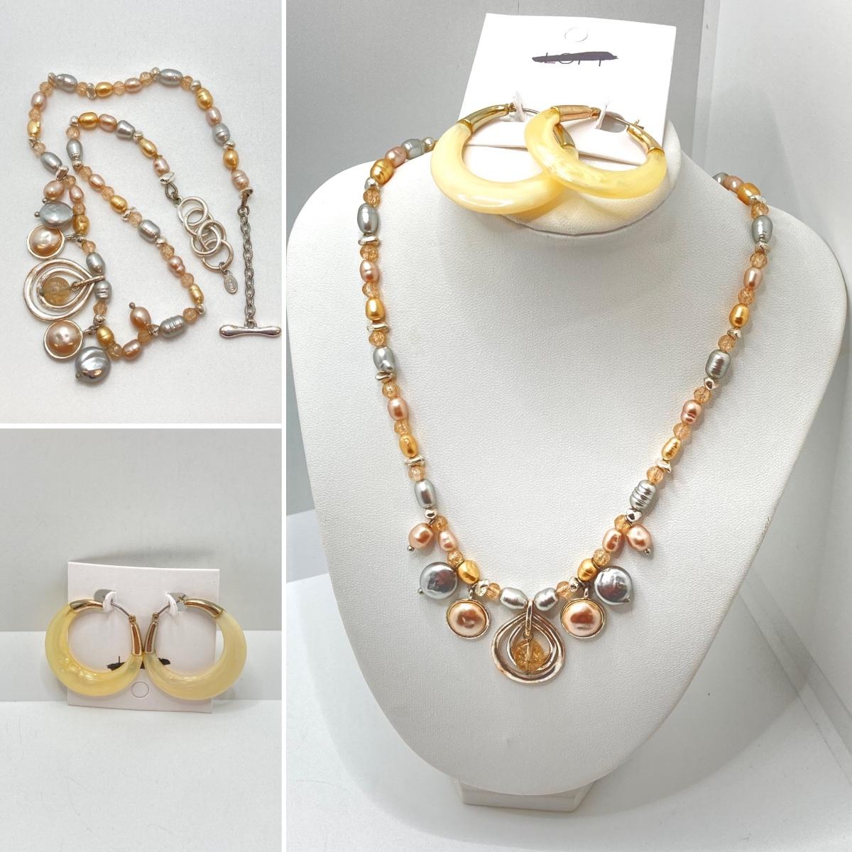 LOT 89: Fashion Jewelry - Pair of Hoop Earrings with Monet Necklace
