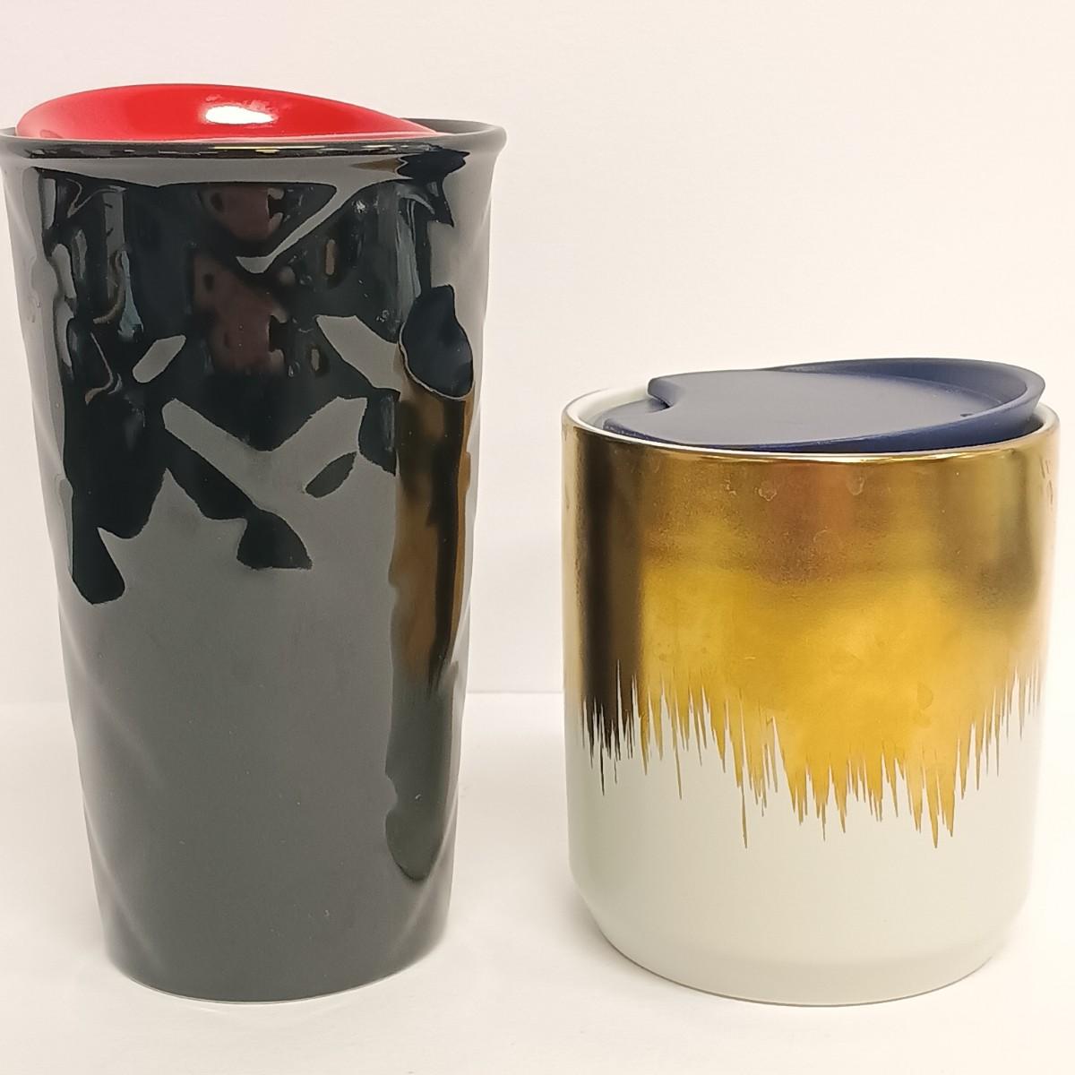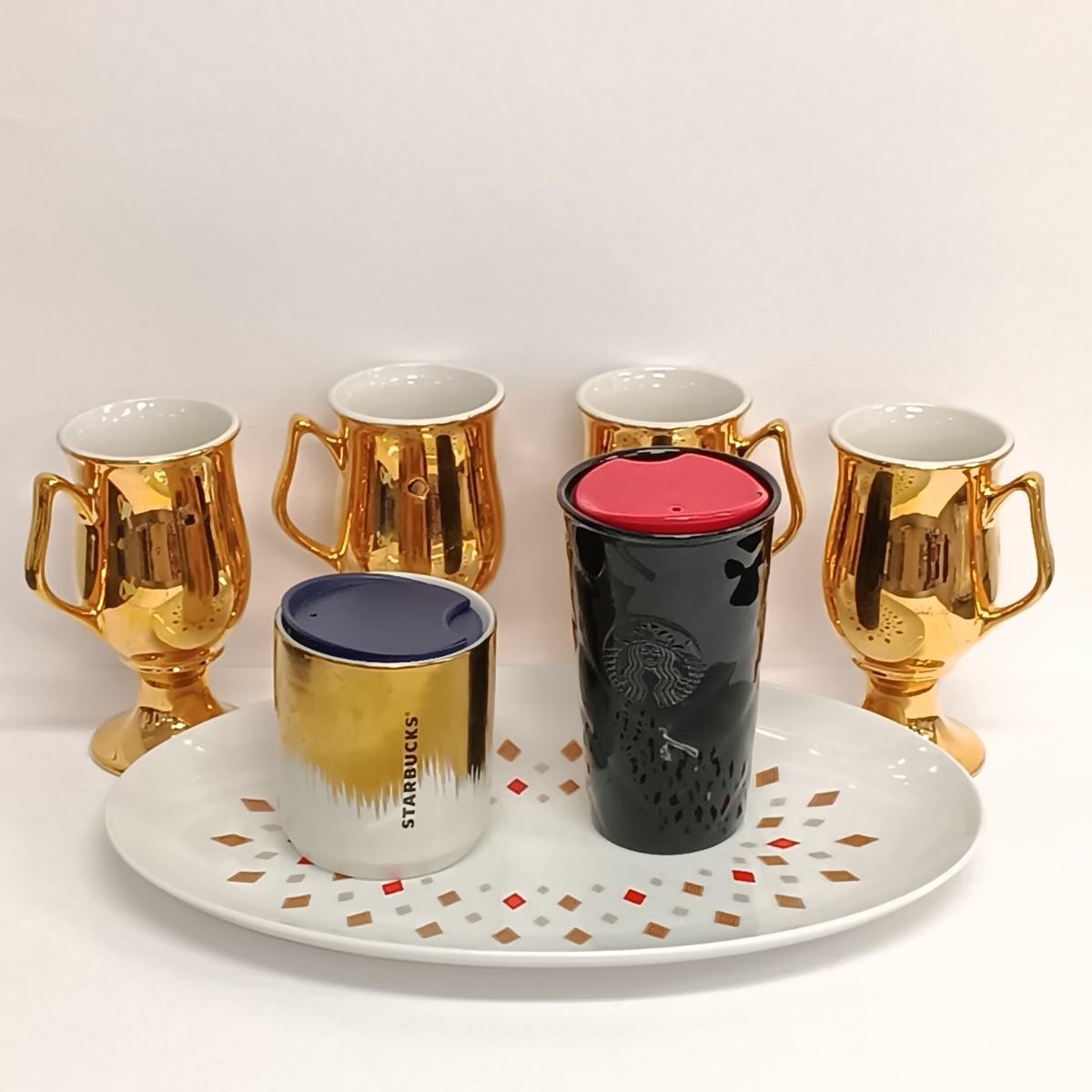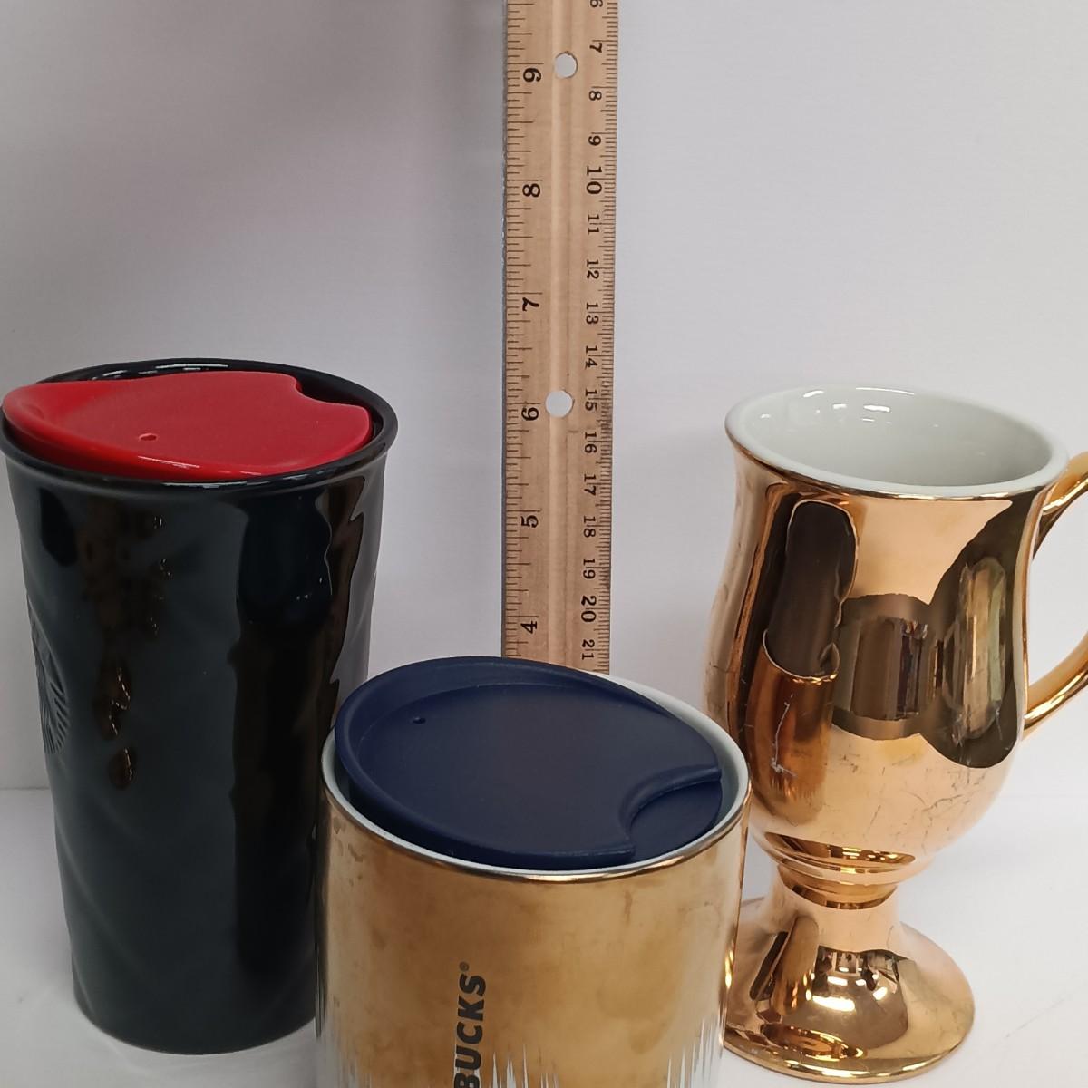 LOT 105: Seyei Fine China Diamond Pattern Plate, Hall Coffee Mugs & Starbucks Travel Mugs