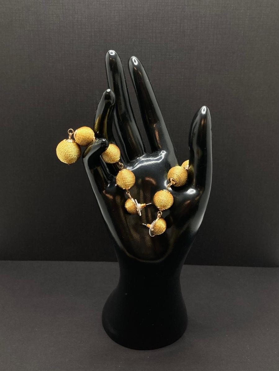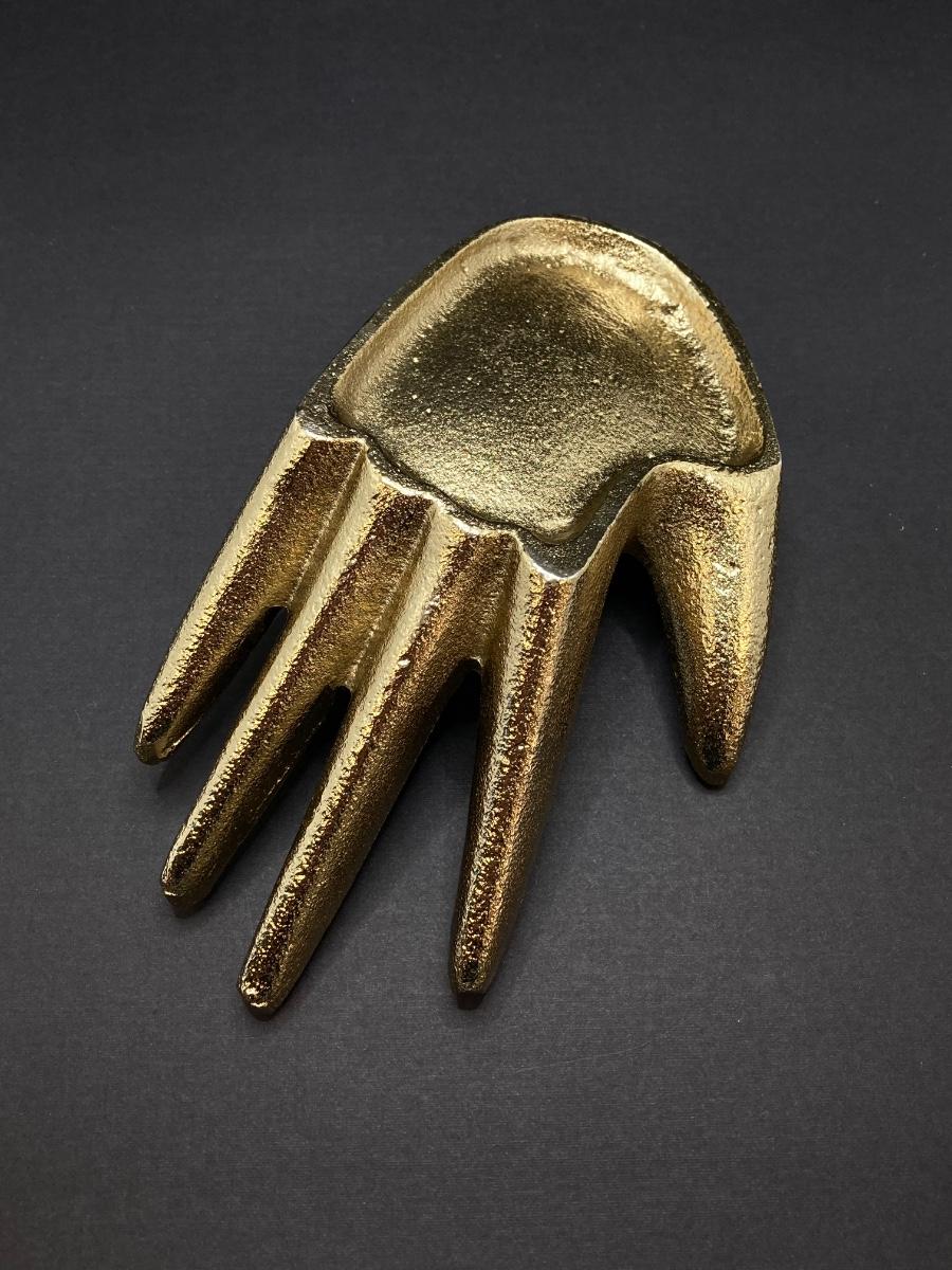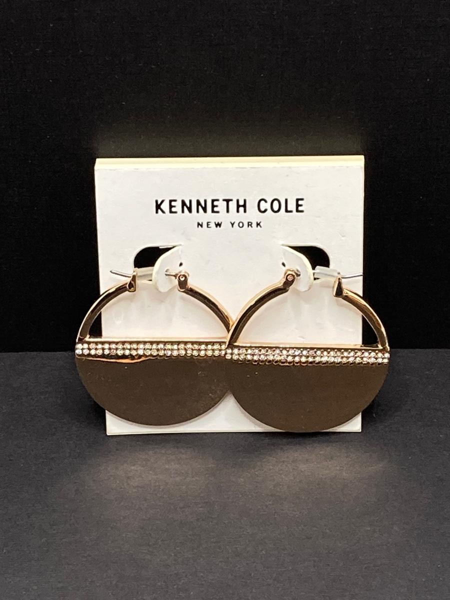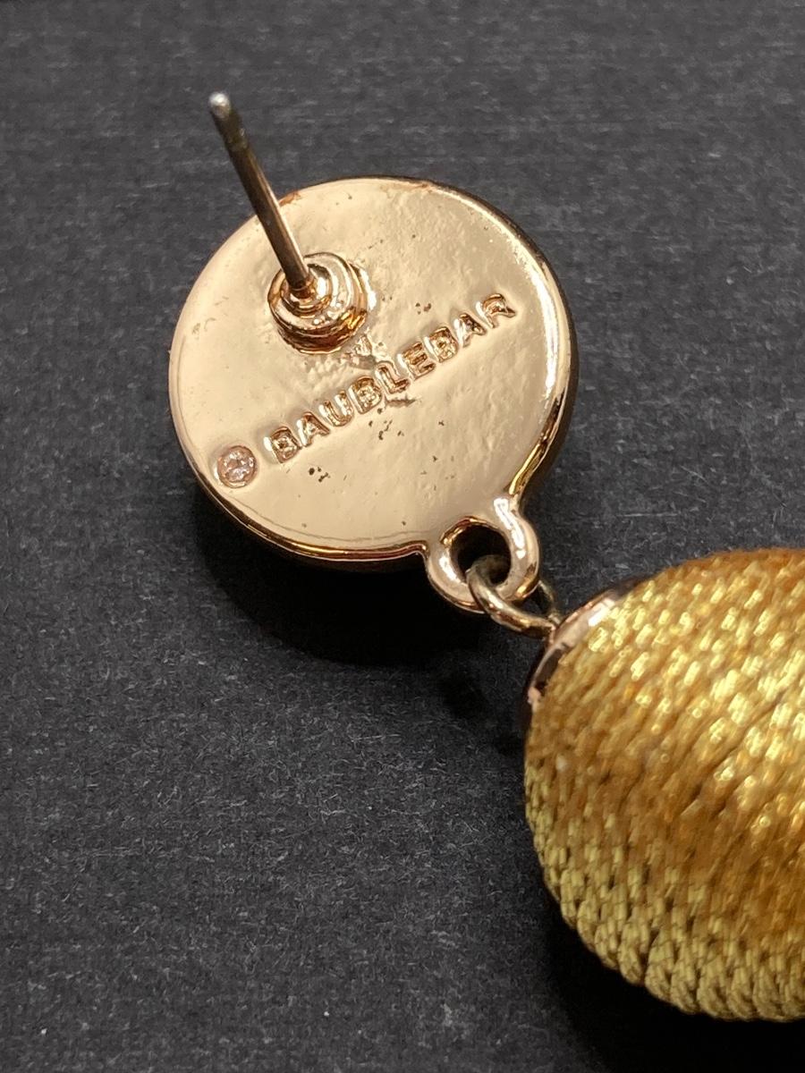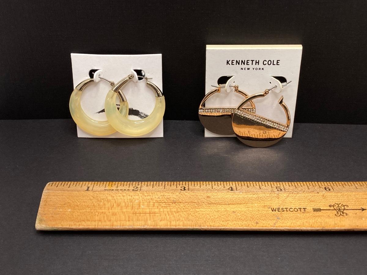 LOT 120: Gold Tone Hand Jewelry / Ring Holder with Collection of Earrings - Kenneth Cole, Baublebar and More