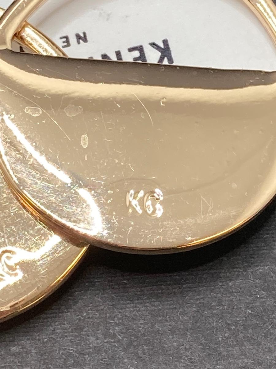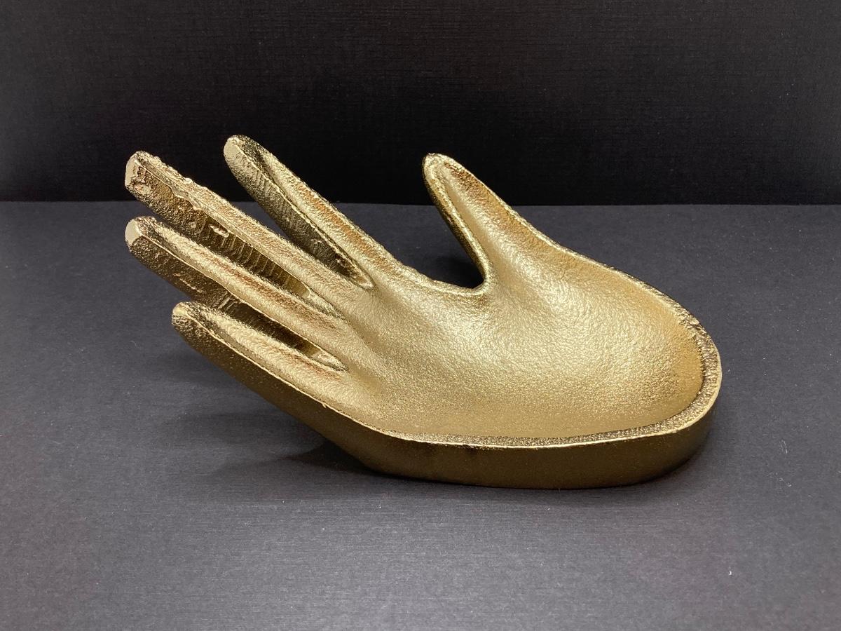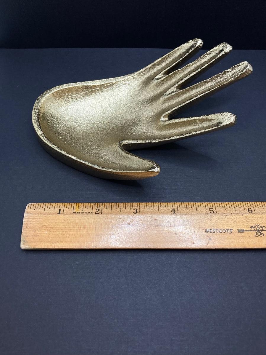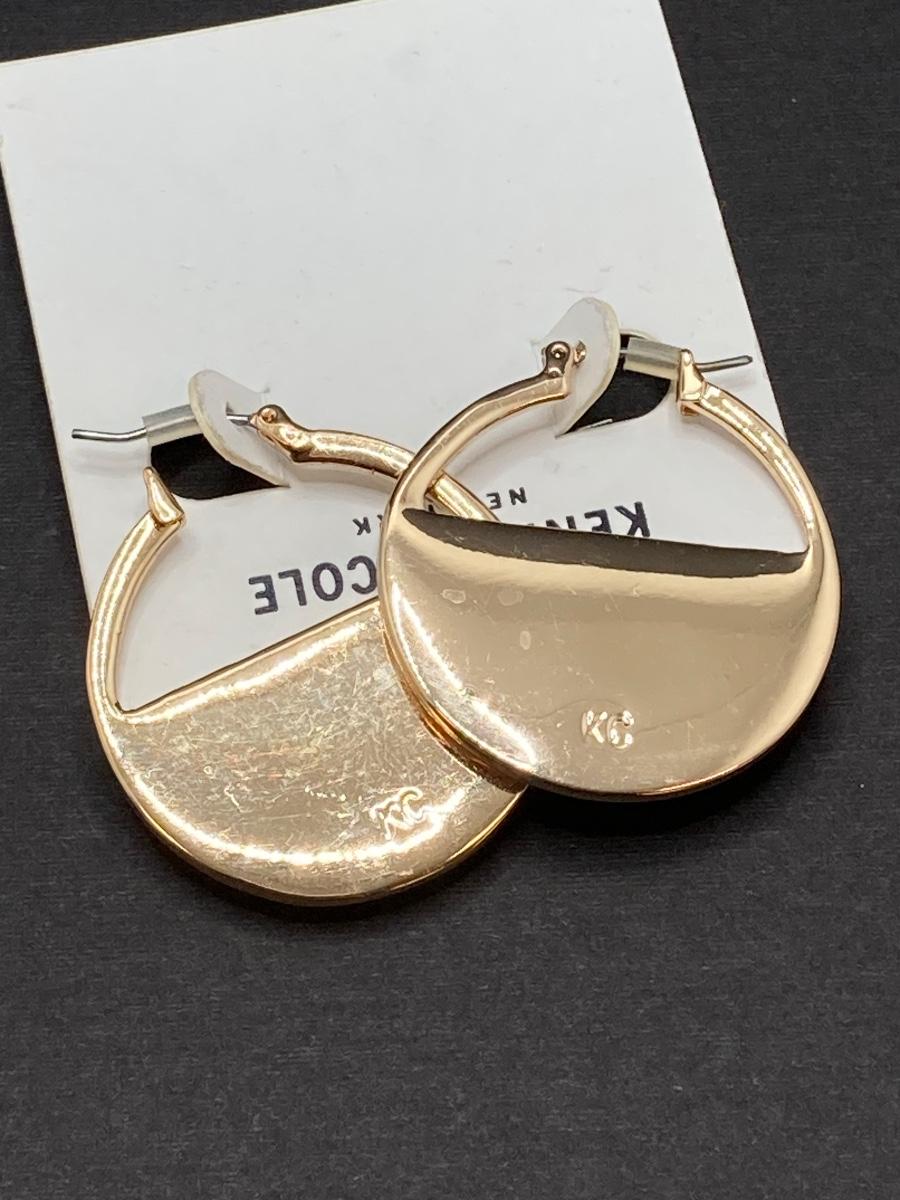 LOT 120: Gold Tone Hand Jewelry / Ring Holder with Collection of Earrings - Kenneth Cole, Baublebar and More