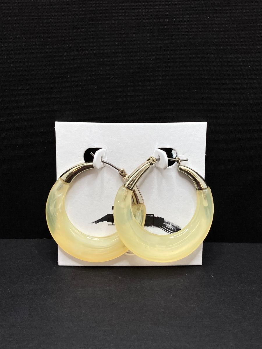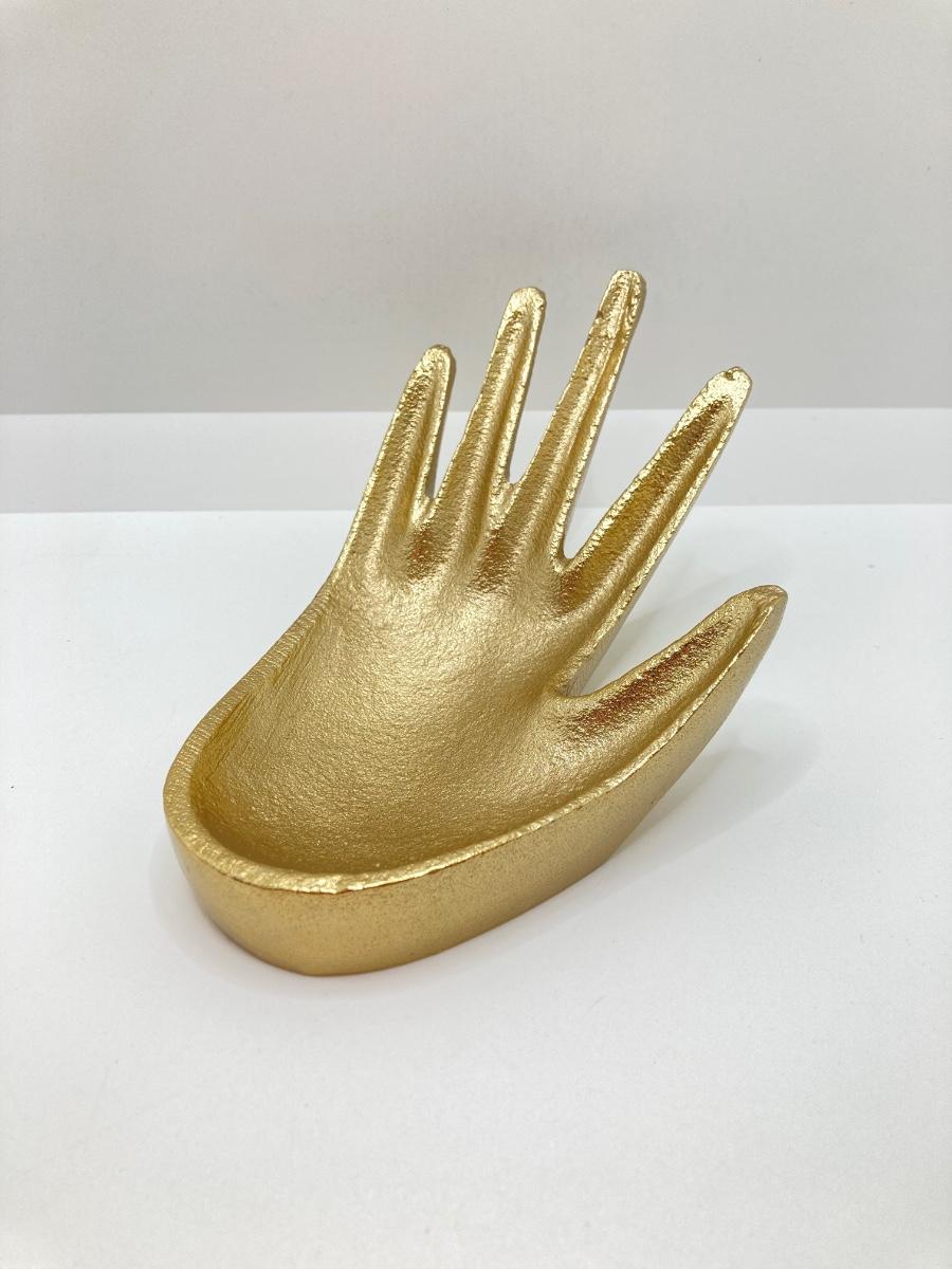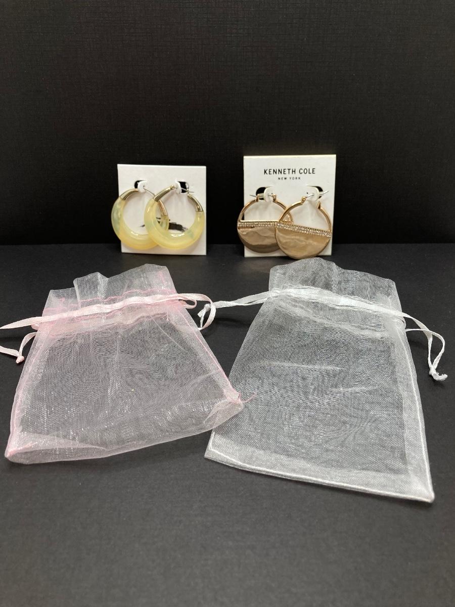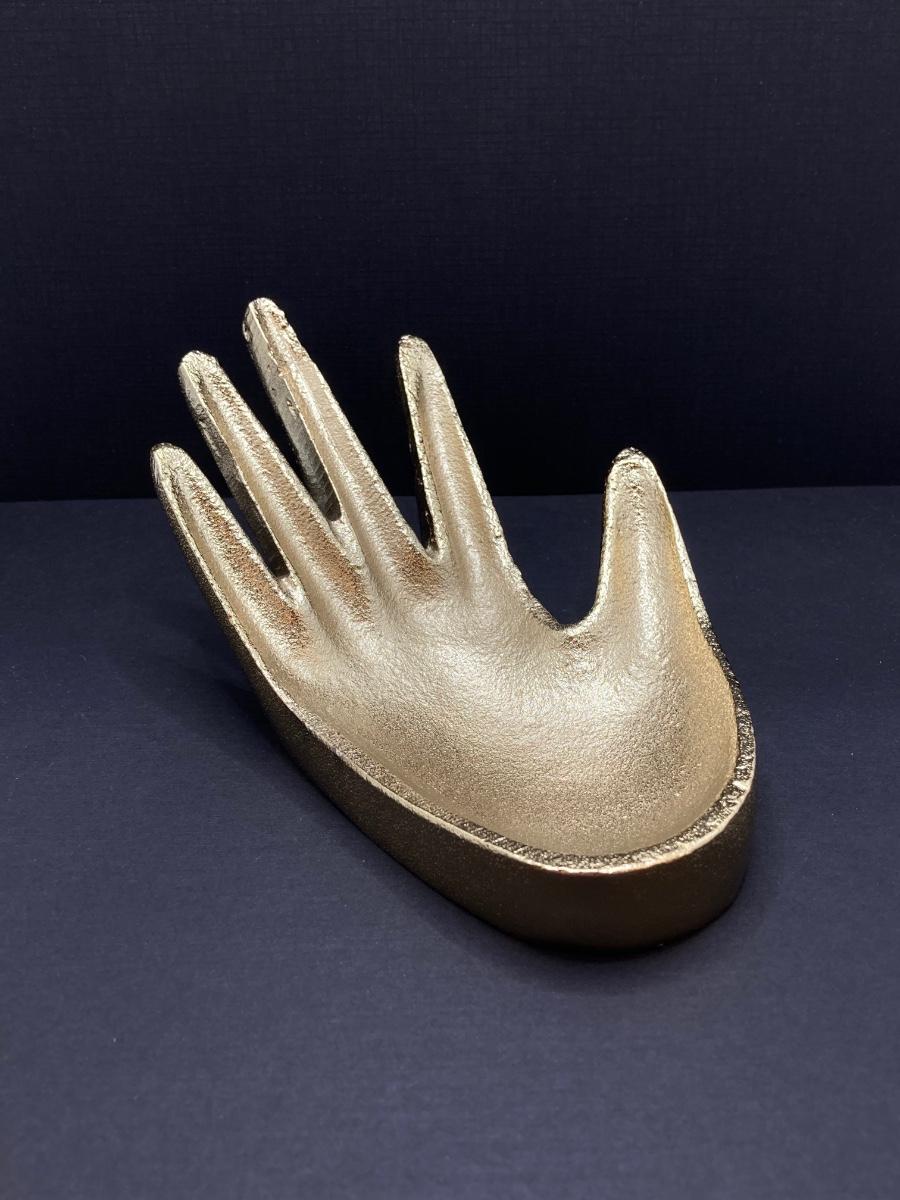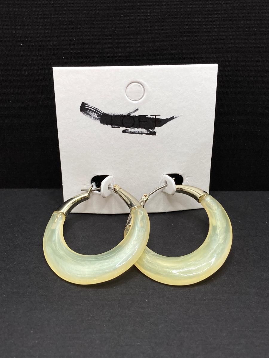 LOT 120: Gold Tone Hand Jewelry / Ring Holder with Collection of Earrings - Kenneth Cole, Baublebar and More