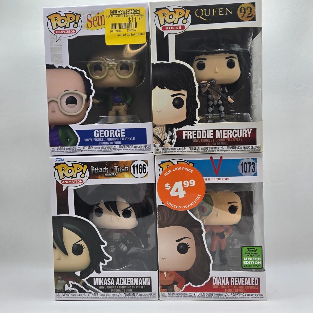 LOT 7: Funko Pops NIB Including Mikasa Ackermann, George, Freddie Mercury, and Diana Revealed