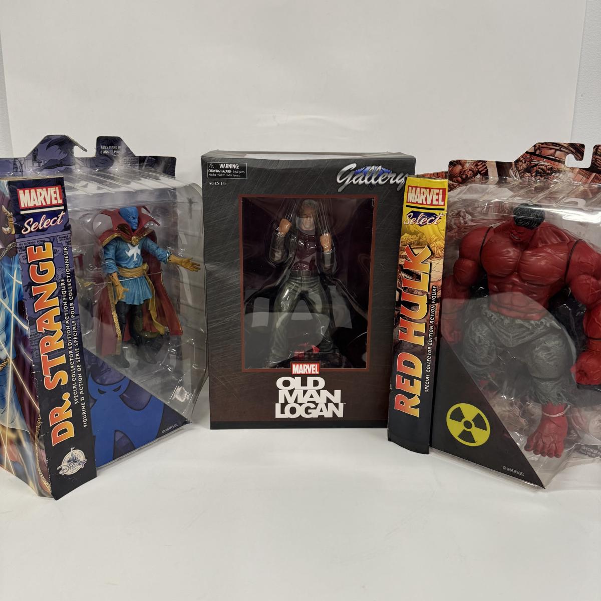 LOT 24: Diamond Select Toys Marvel Dr Strange, Red Hulk & Old Man Logan Figures