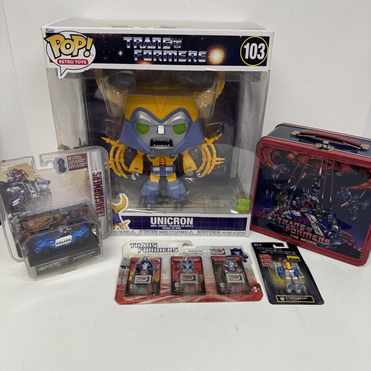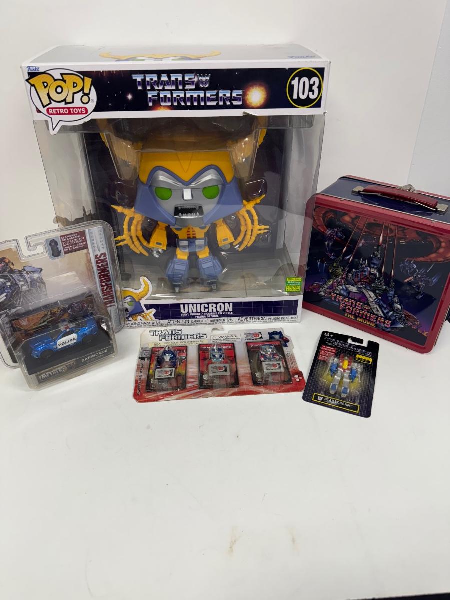 LOT 102: Transformers Variety Package: Funko Pop, Lunch Box and Various Toys