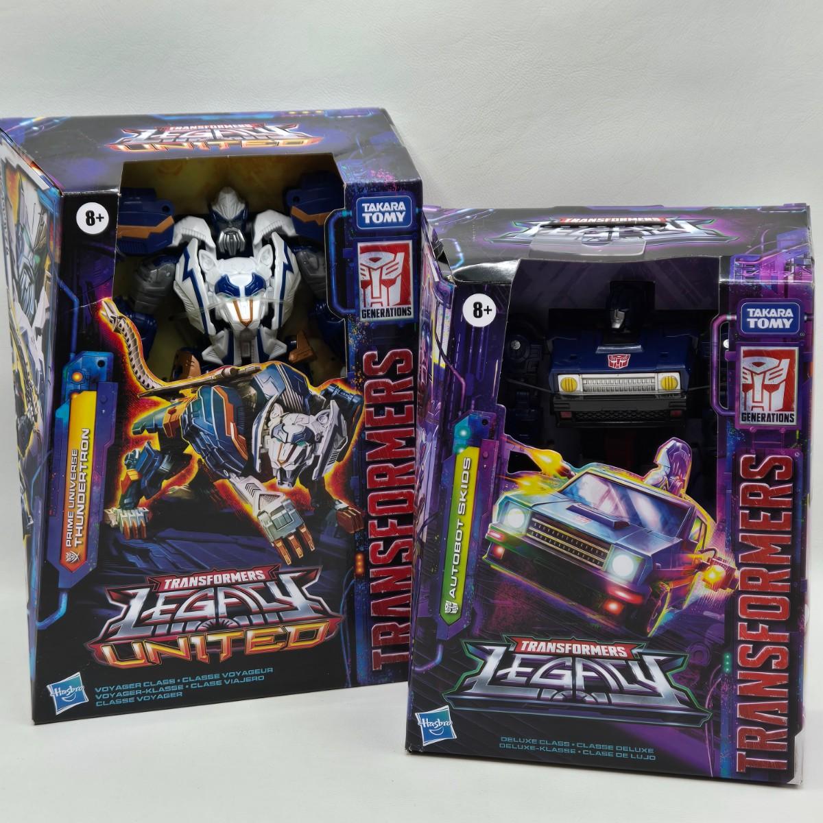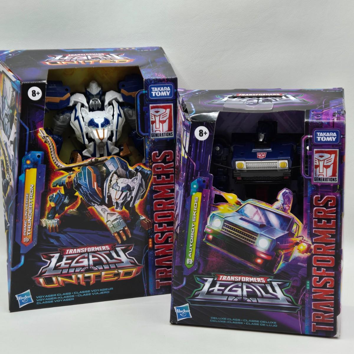 LOT 167: Transformers Legacy United Prime Universe Thundertron and Transformers Legacy Autobot Skids NIB