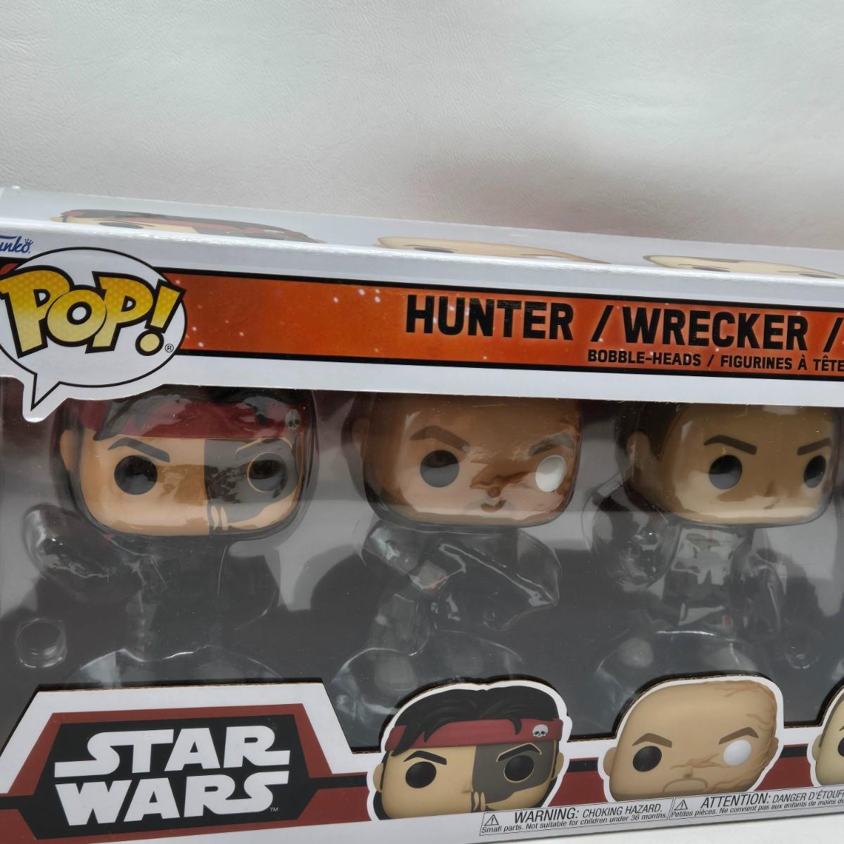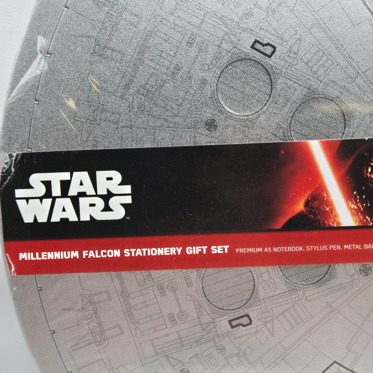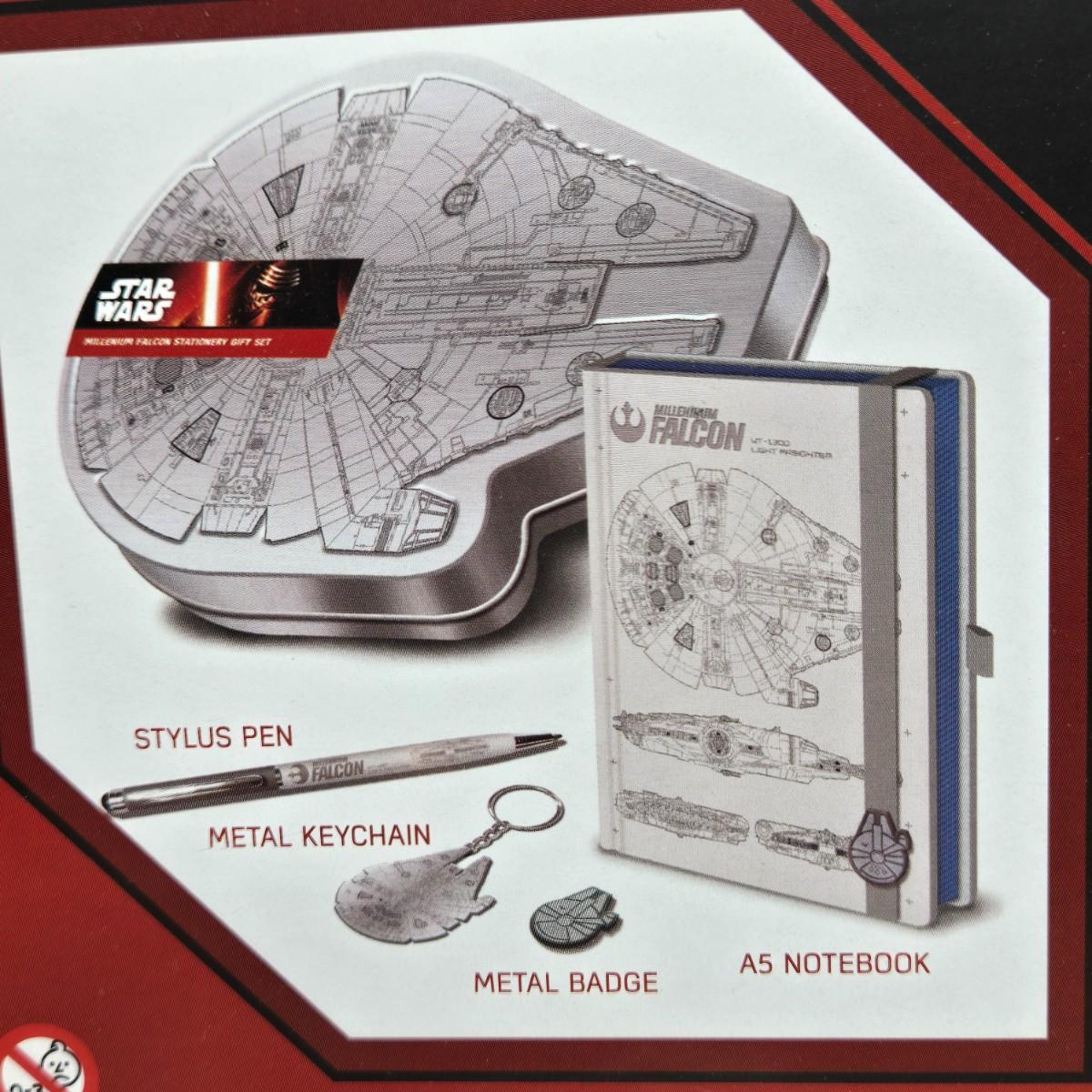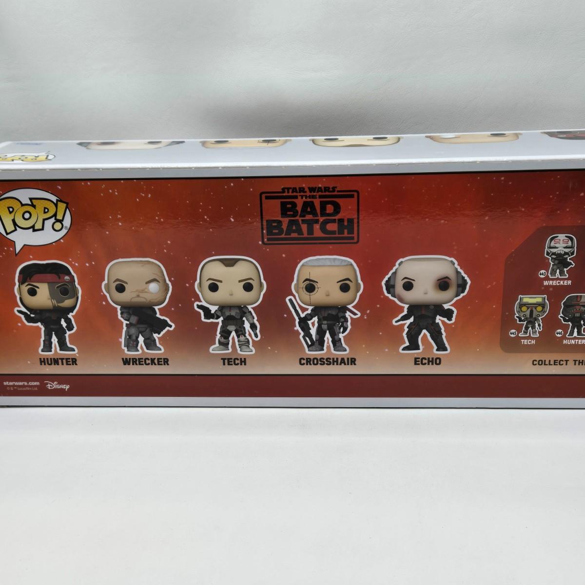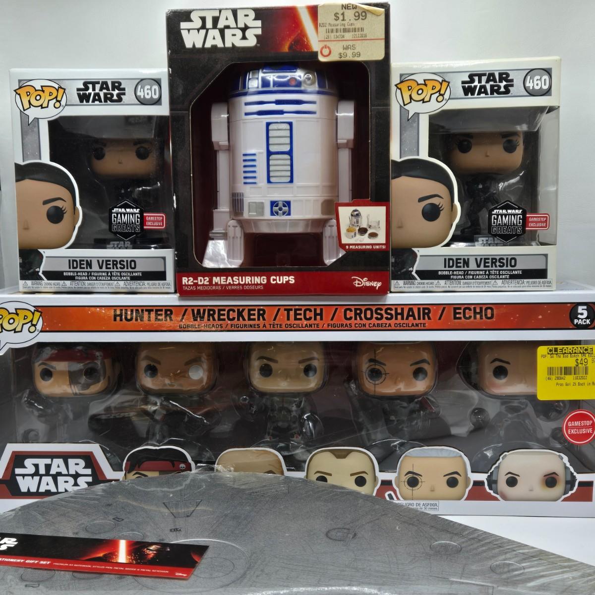 LOT 194: NIB Star Wars Funko Pops Including The Bad Batch Set and 2 Iden Versio, R2-D2 Measuring Cup Set, and Millennium Falcon Stationary Gift Set
