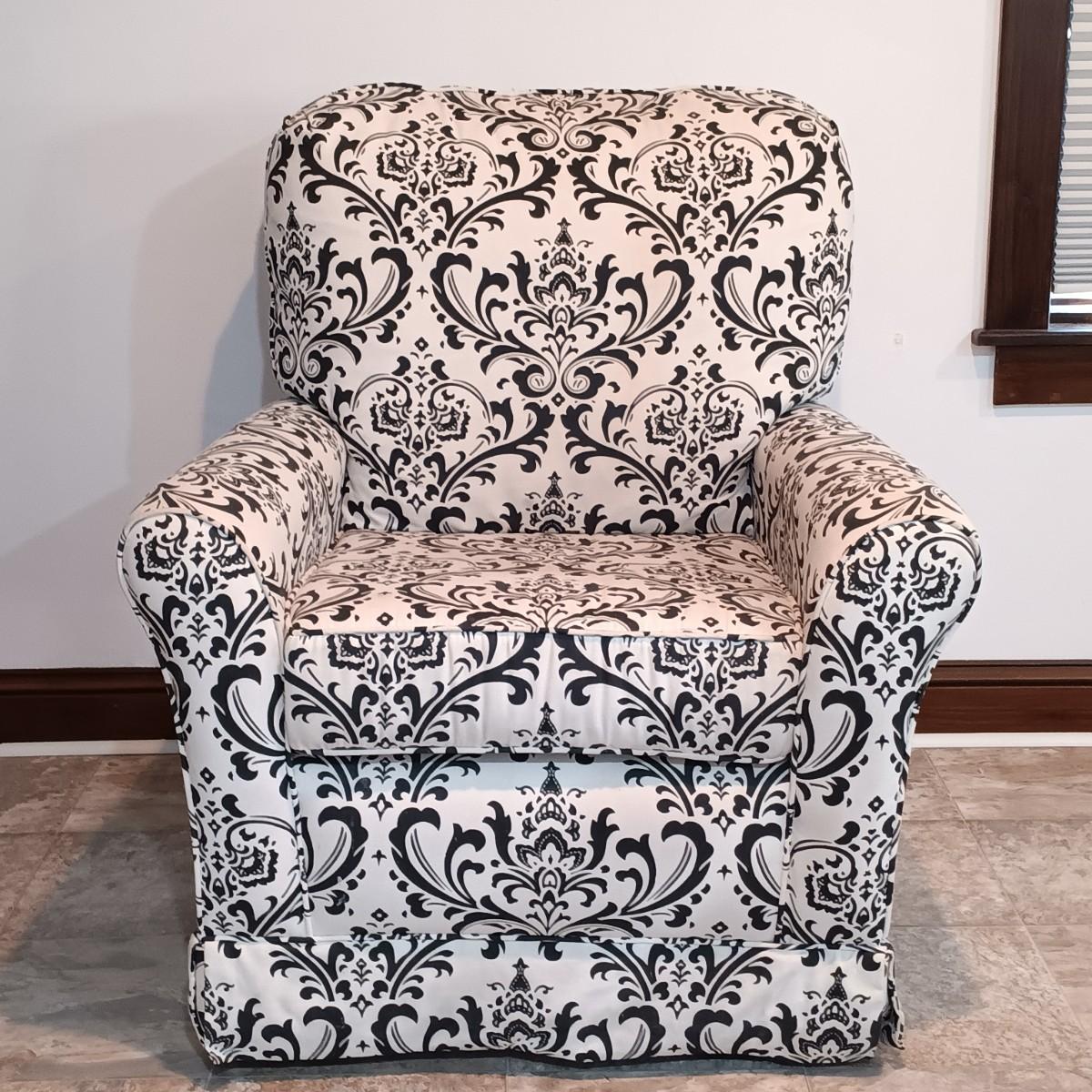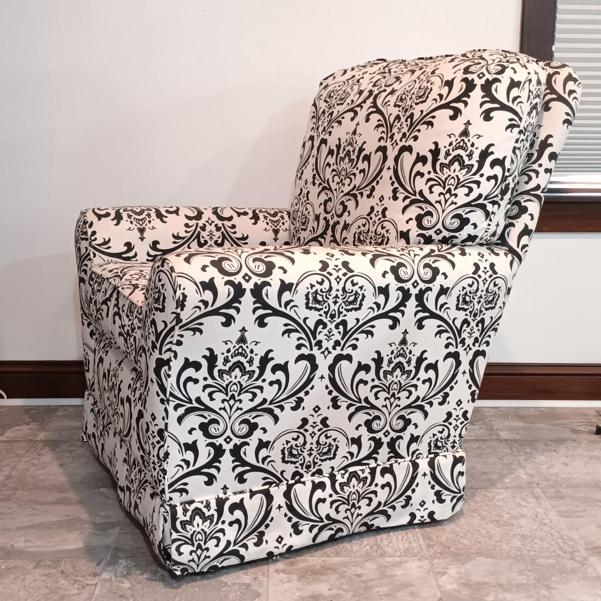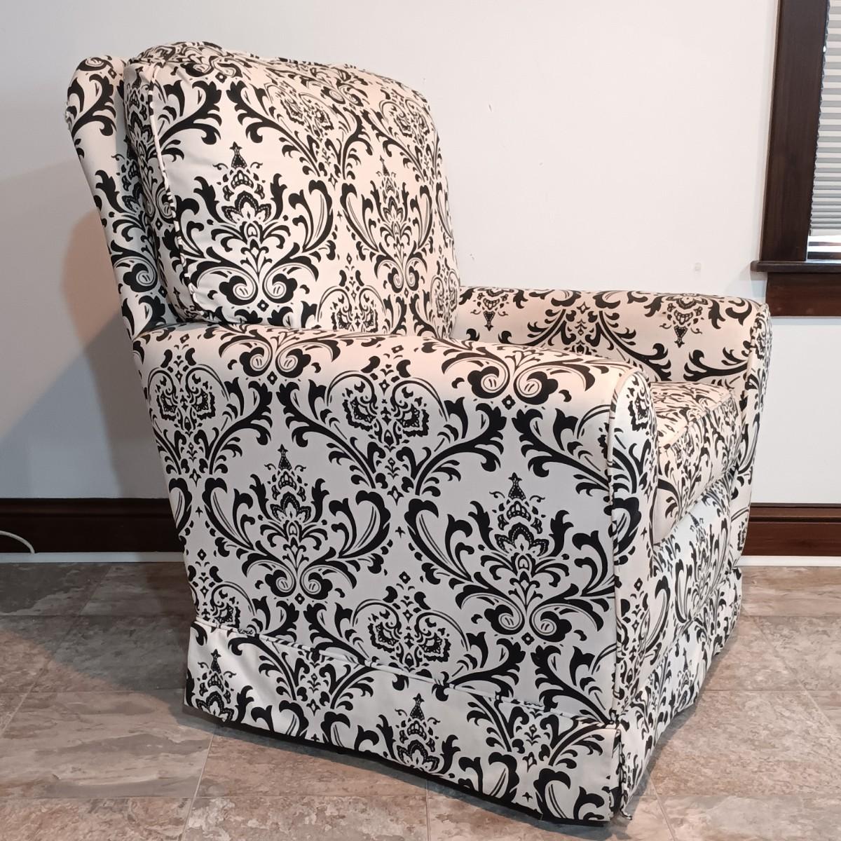 LOT 5: Black and White Upholstered Swivel/Rocking Chair