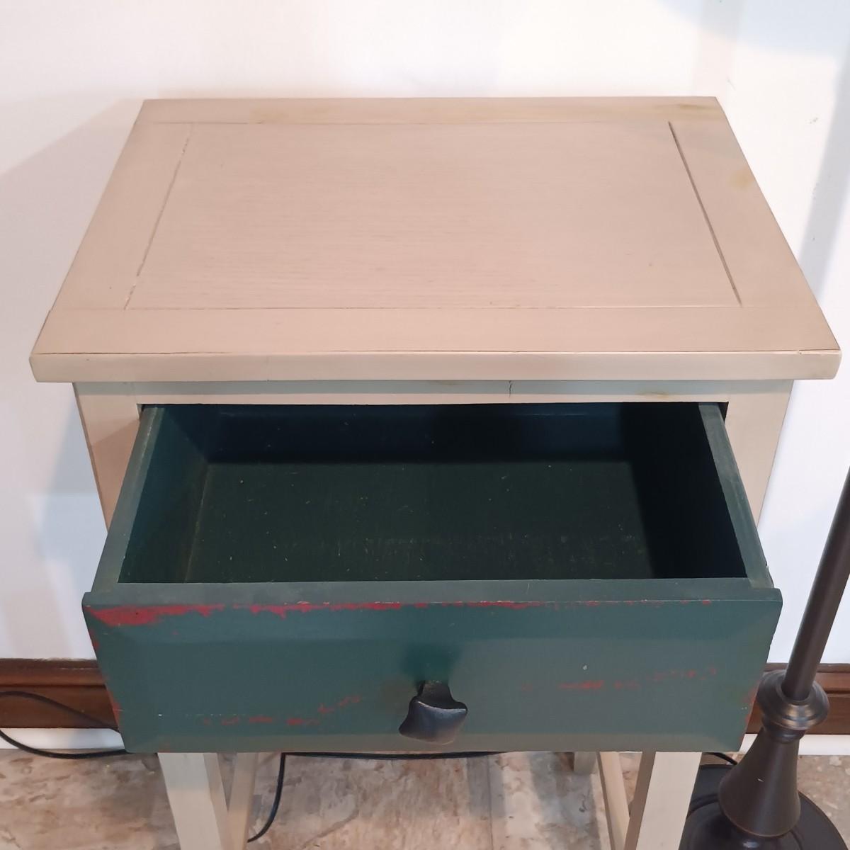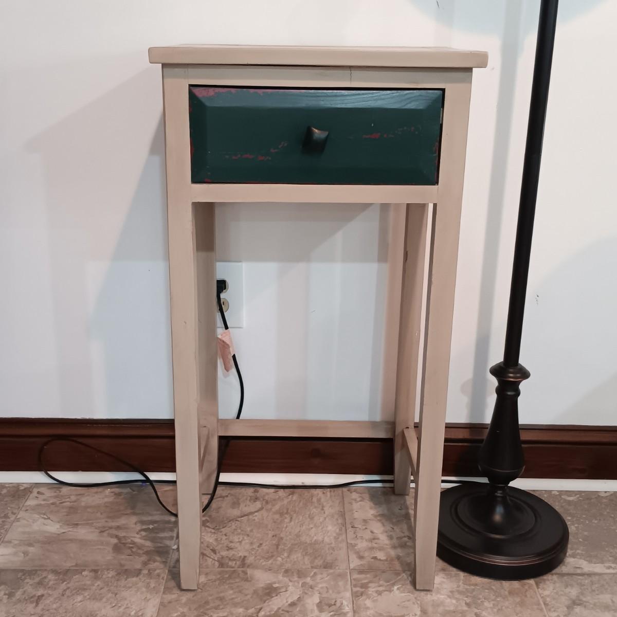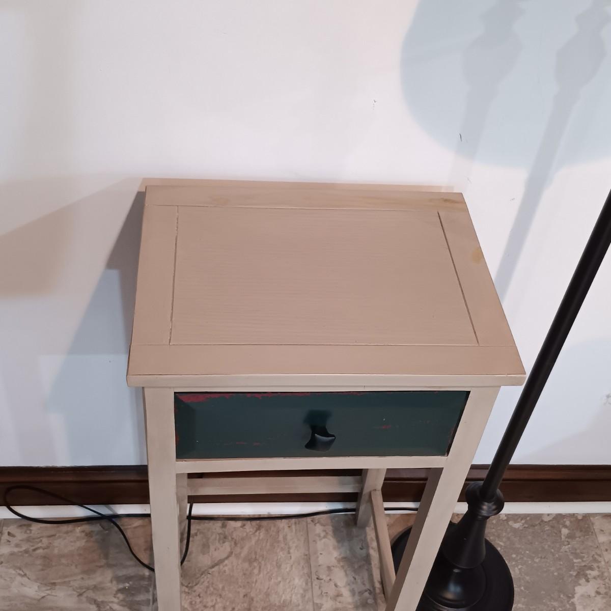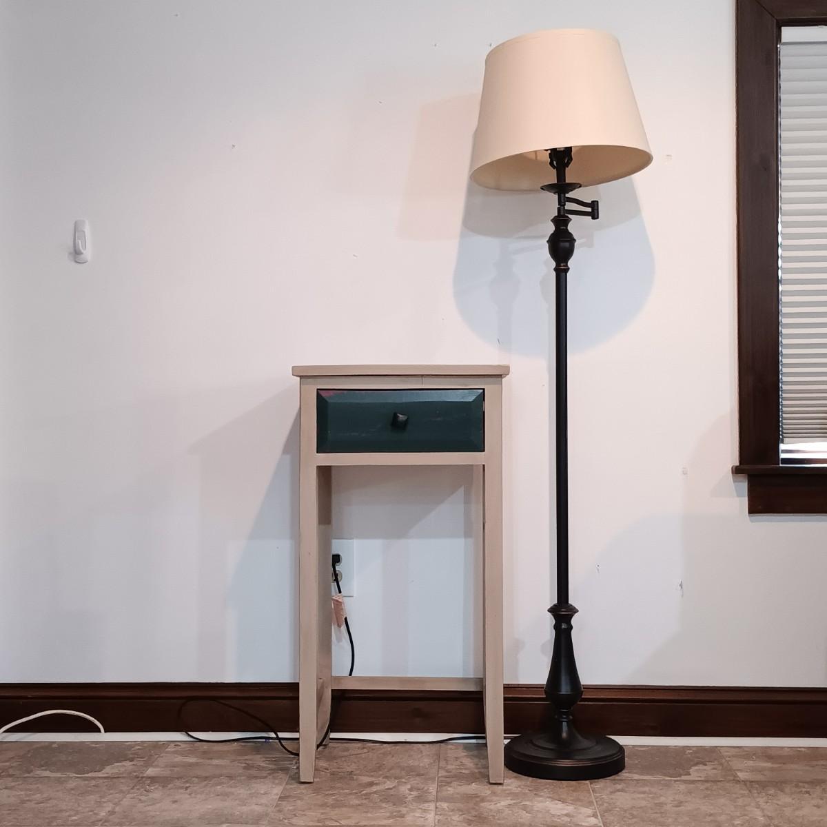 LOT 6: Wood Side Table with Drawer and Metal Floor Lamp
