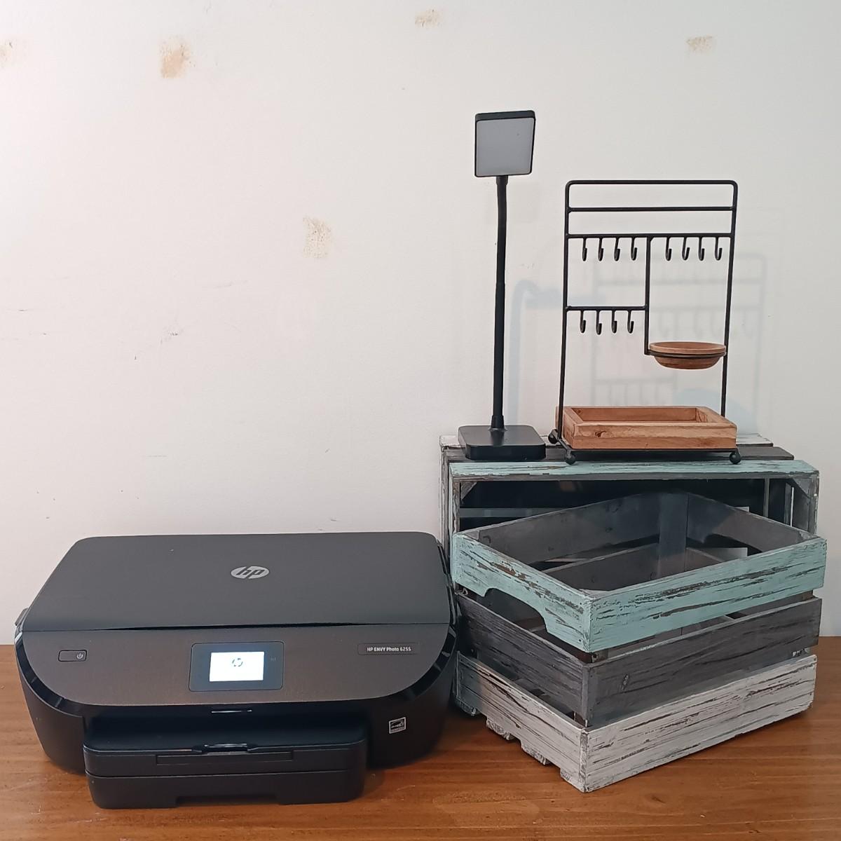 LOT 10: Office Essentials Featuring a HP ENVY Photo 6200 Printer, Desk Lamp, Wooden Paper Trays, and More