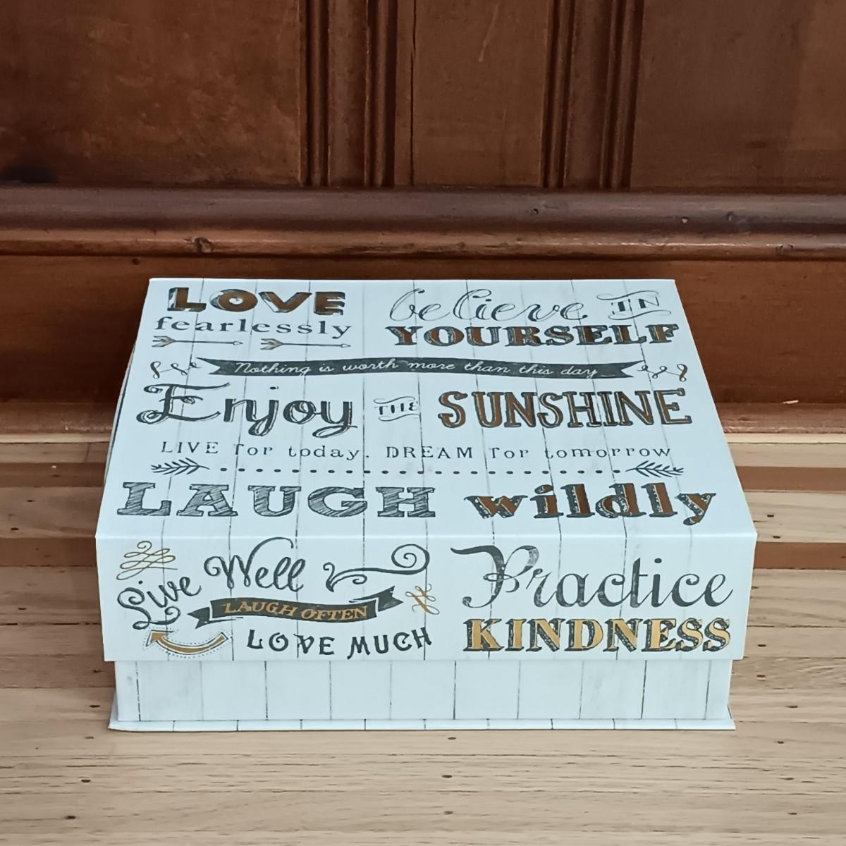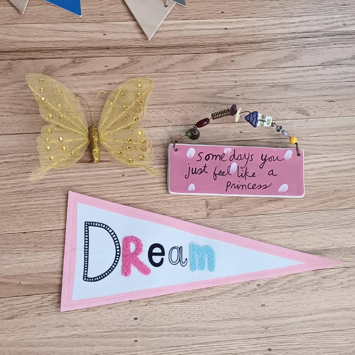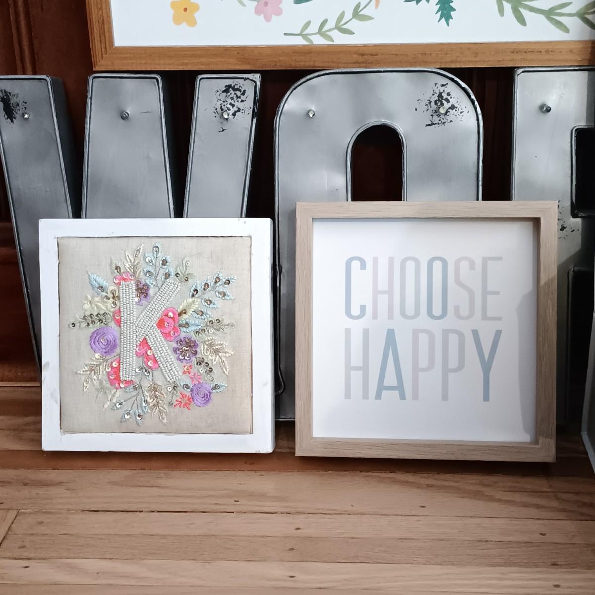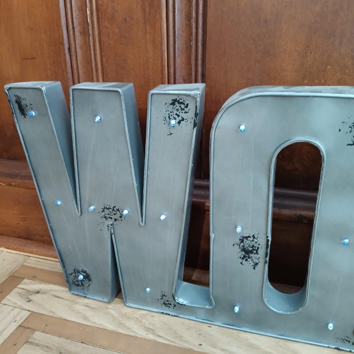 LOT 22: Inspirational Pastel Spring Decor Including LED Cinematic Light Box. Plaques, a Metal “WORK” Sign and More