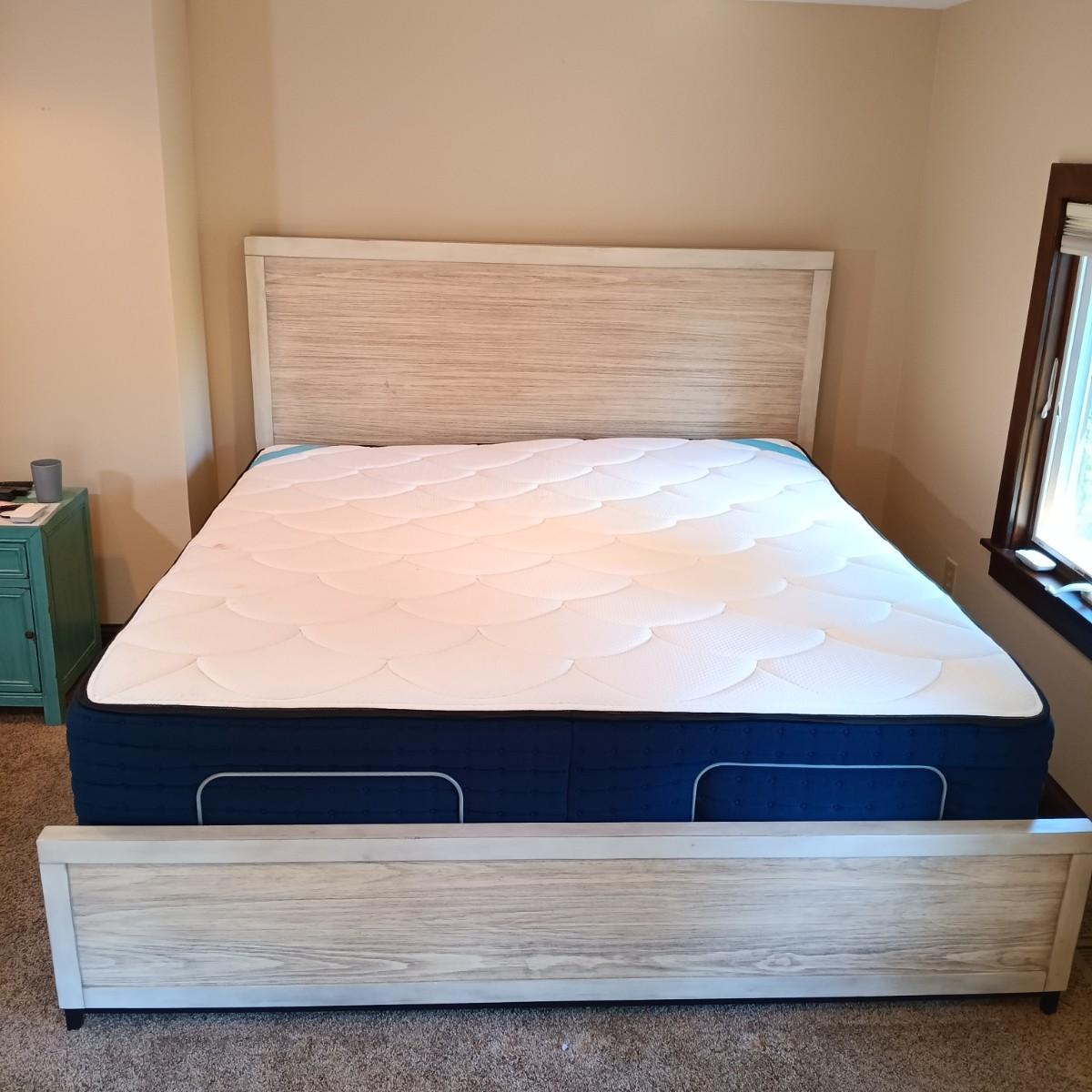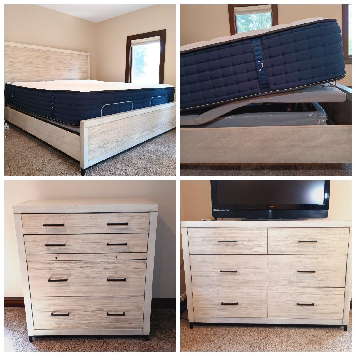 LOT 27: Farmhouse Style (3) Piece Bedroom Set w/ Temper-Pedic Ergo Plus Adjustable Frame (Mattress NOT included)