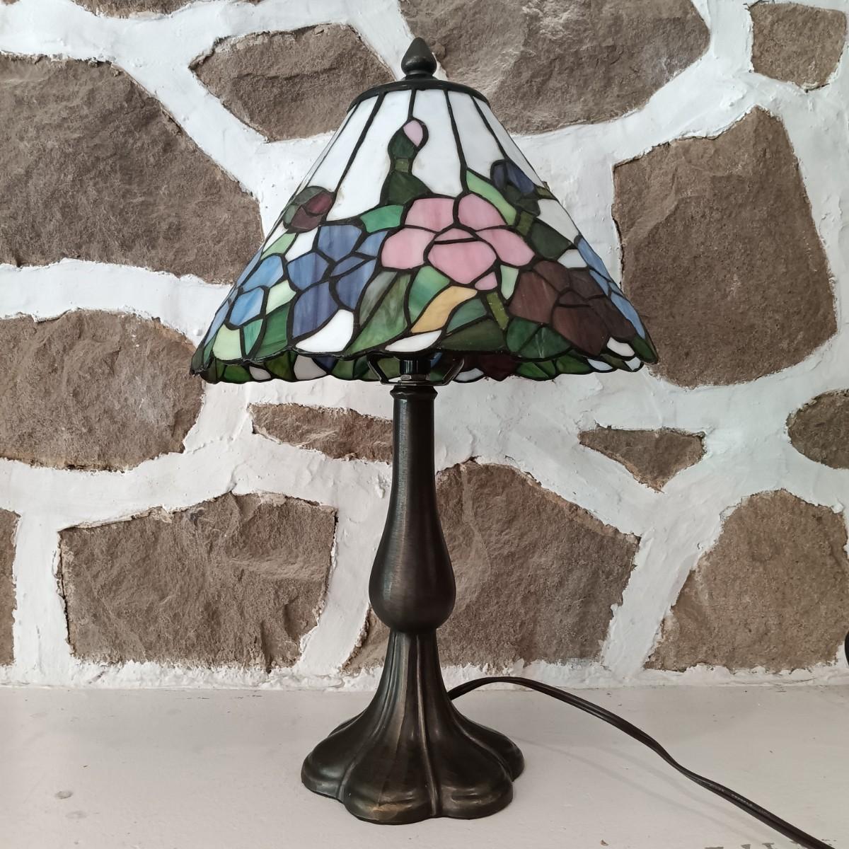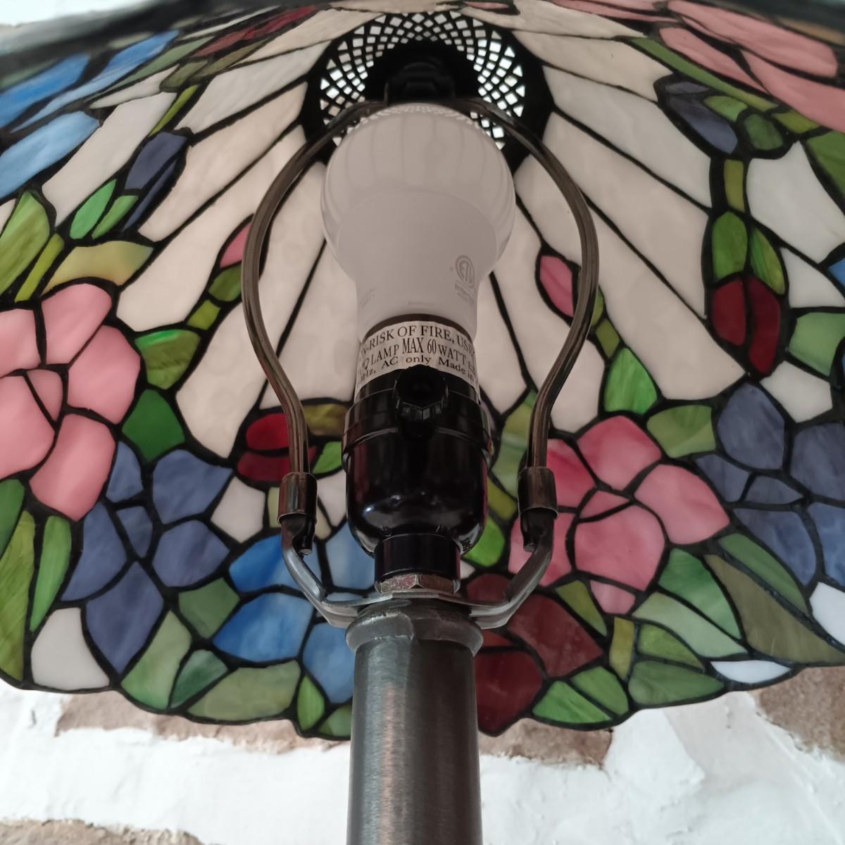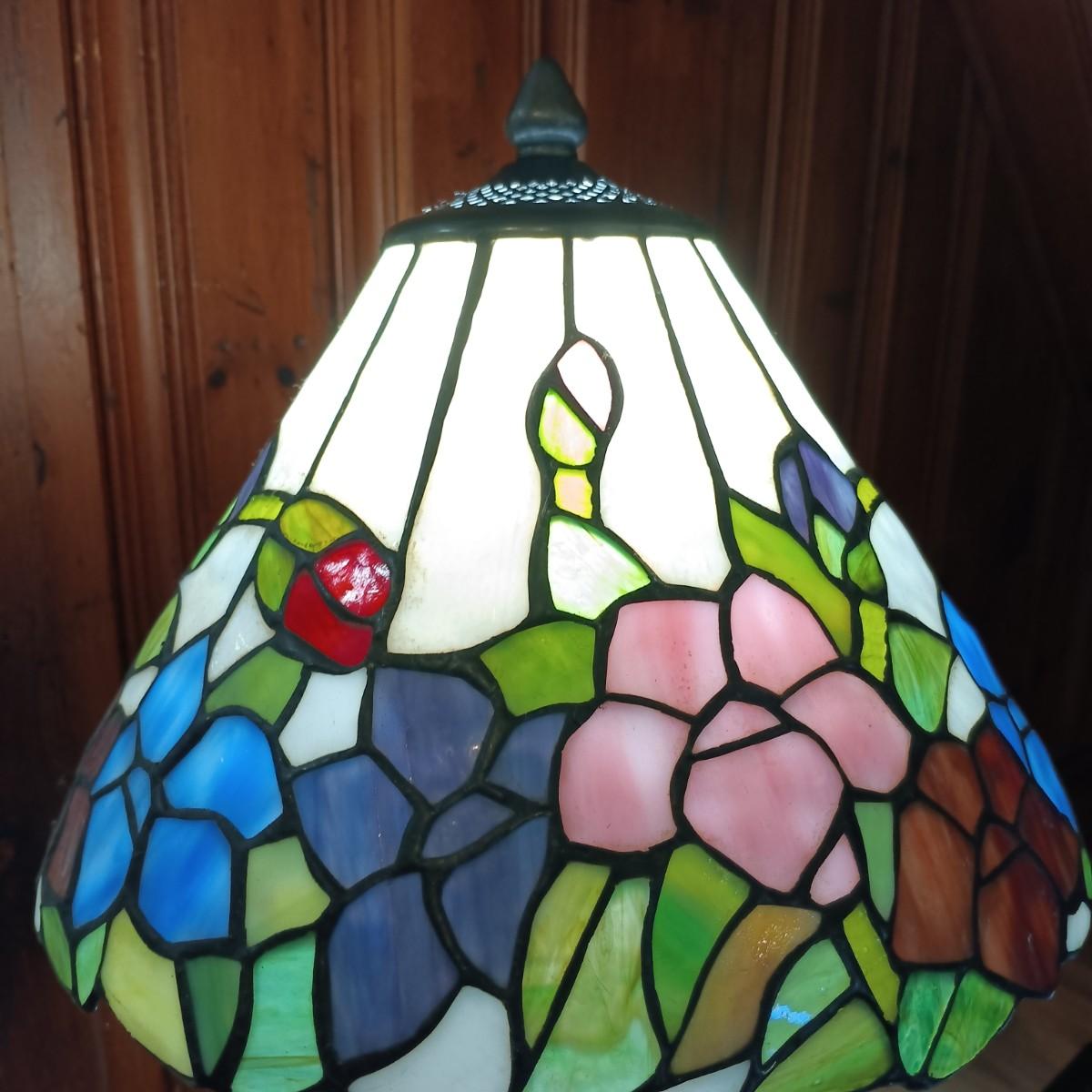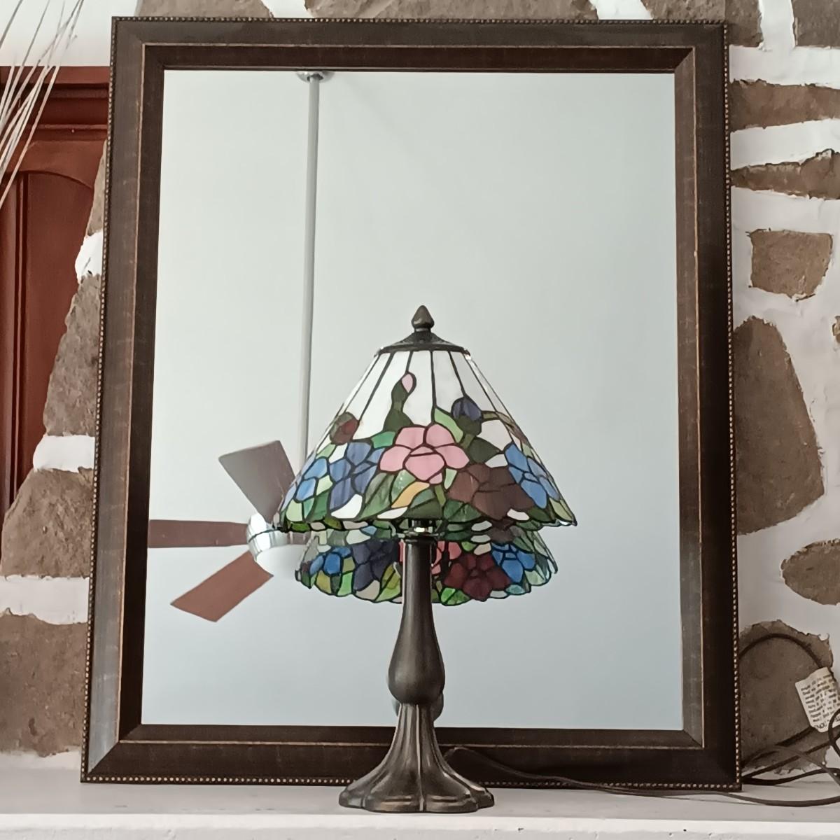LOT 31: Stained Glass Tiffany-Style Table Lamp and Framed Mirror