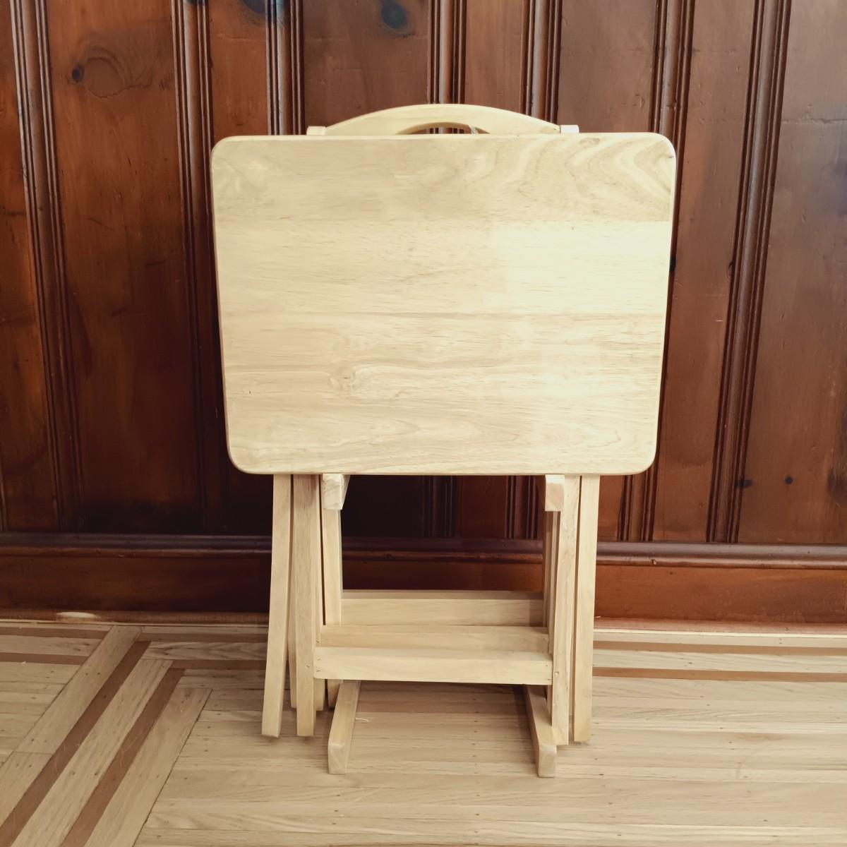 LOT 36: Set of Four (4) Wooden Tray Tables with Stand