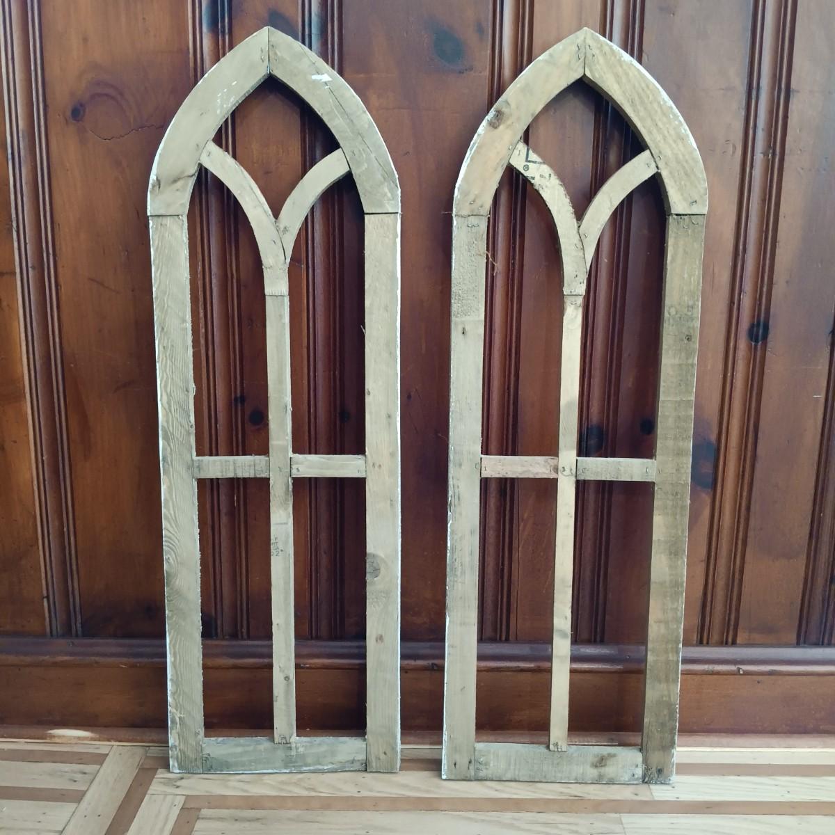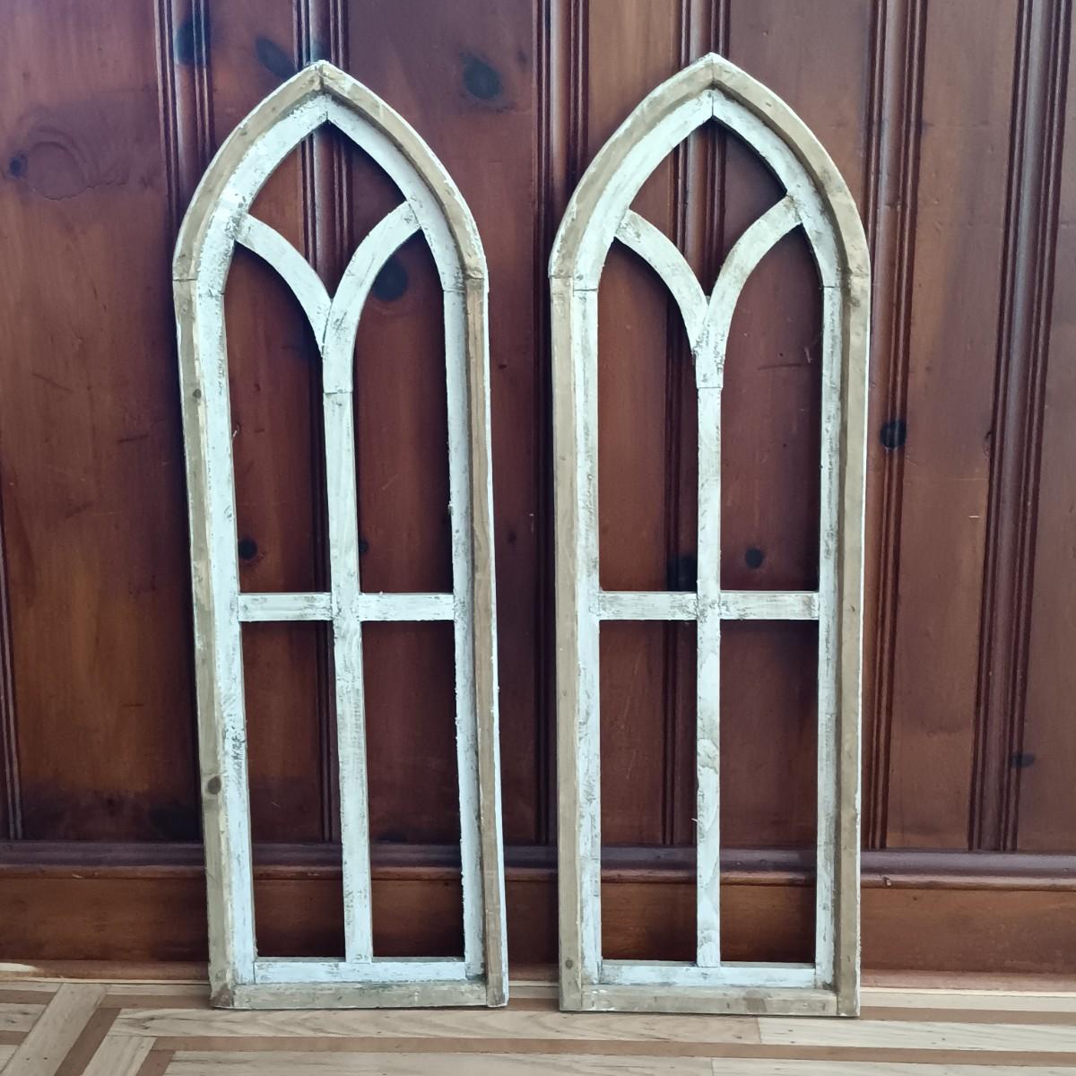 LOT 40: Set of Two (2) Cathedral Wood Arched Window Frames Wall Decor