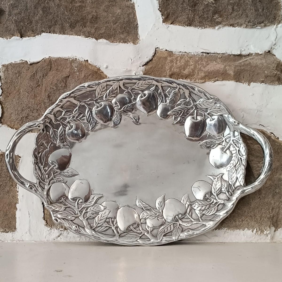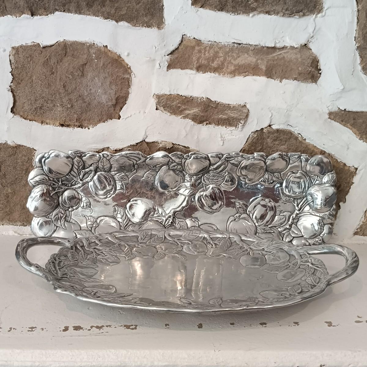 LOT 41: Collection of Two (2) Arthur Court Aluminum Oblong and Oval Apple Trays with Original Boxes