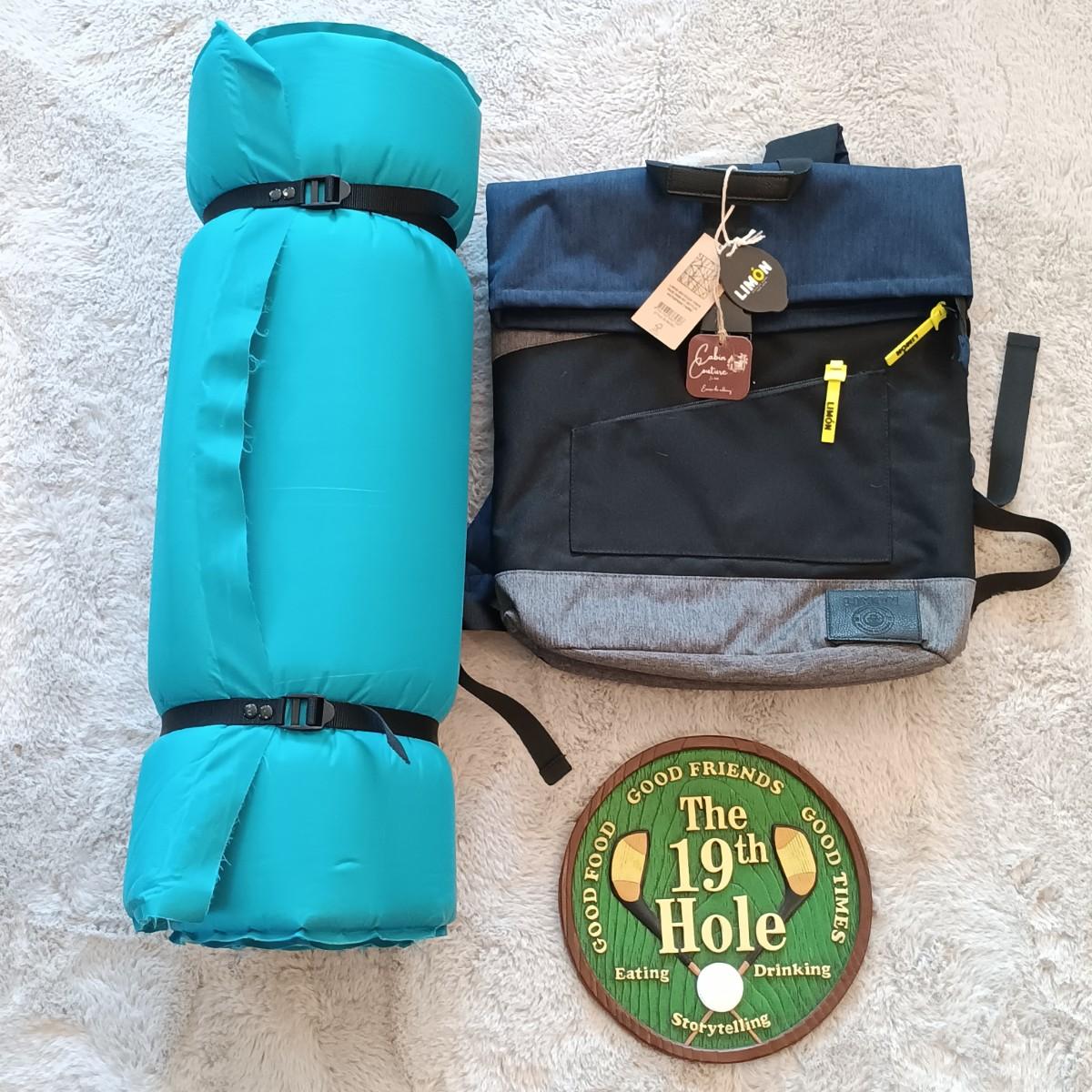 LOT 49: Limon Bonobo Back Pack with Tags, Insul-x- Mat and 19th Hole Sign