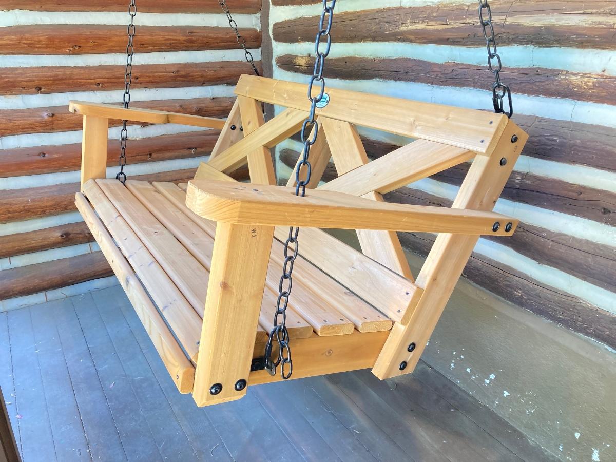LOT 55: Hanging Wooden Porch Swing with Metal Chain by Backyard Discovery