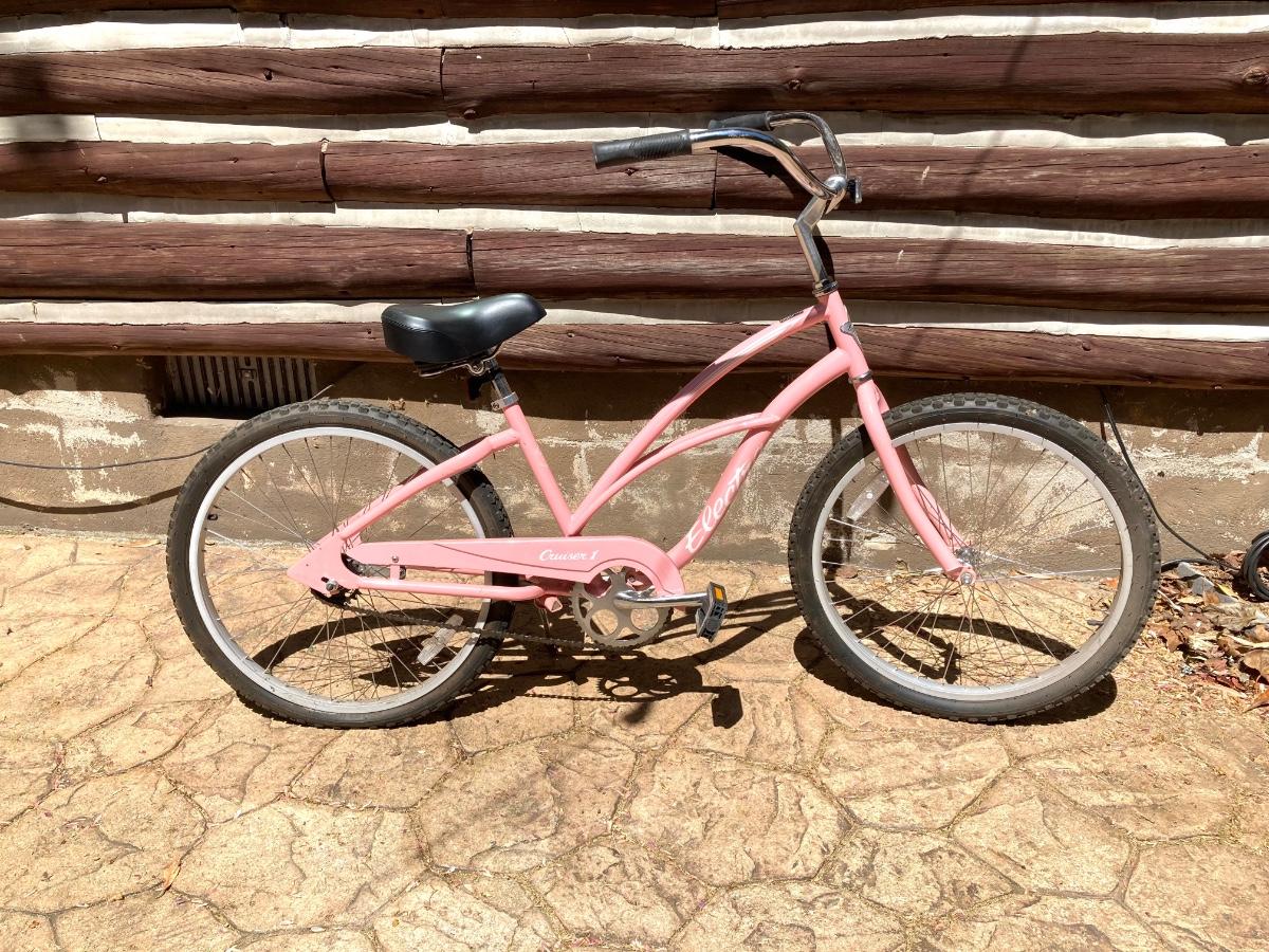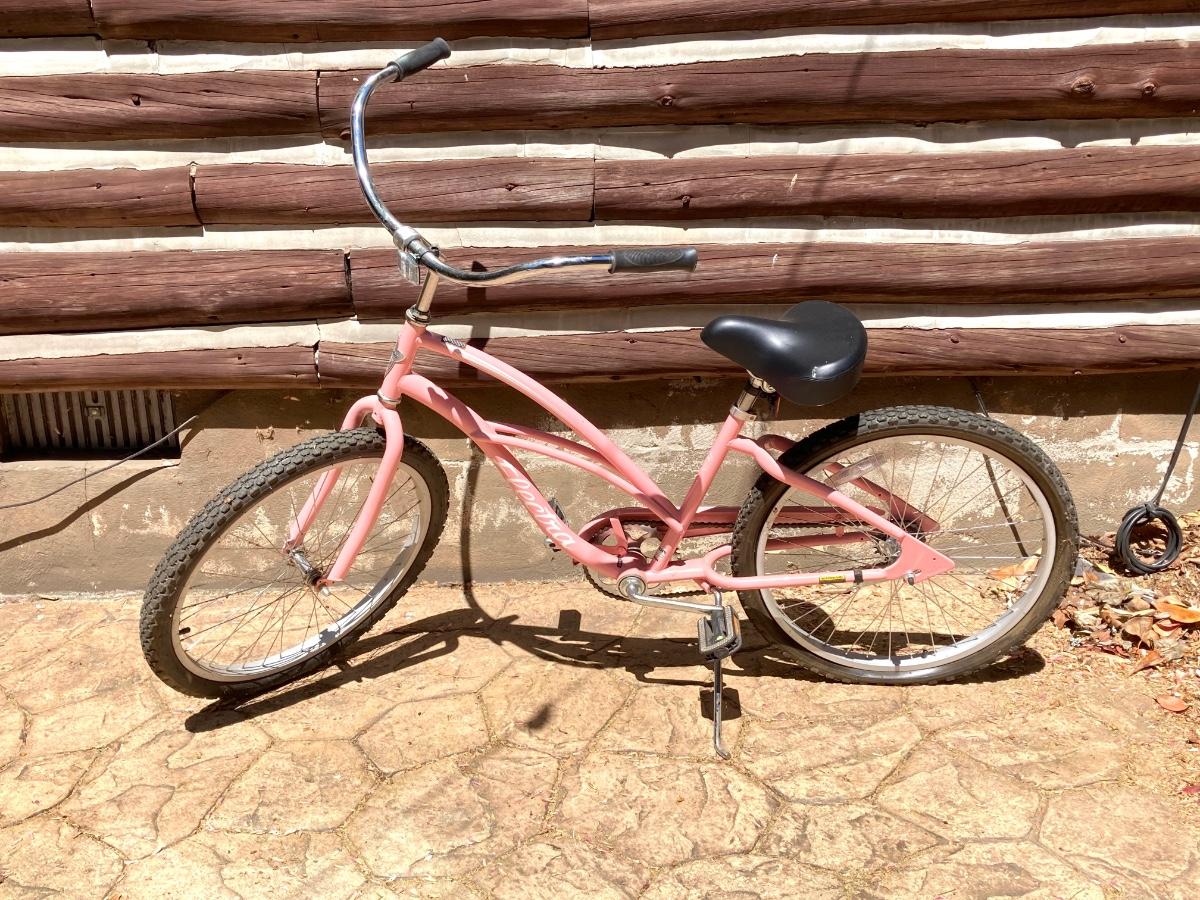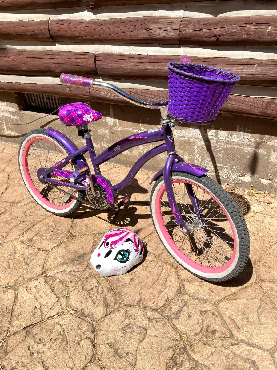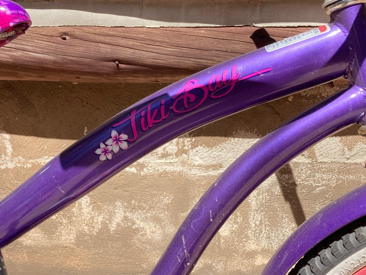 LOT 61: Women’s Pink Electra Bicycle, Girls Purple Kent Tiki Bay Bicycles and Child’s Helmet