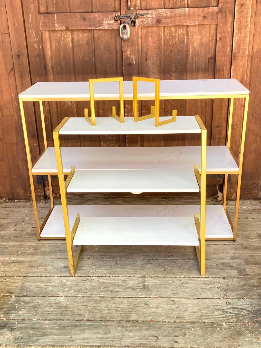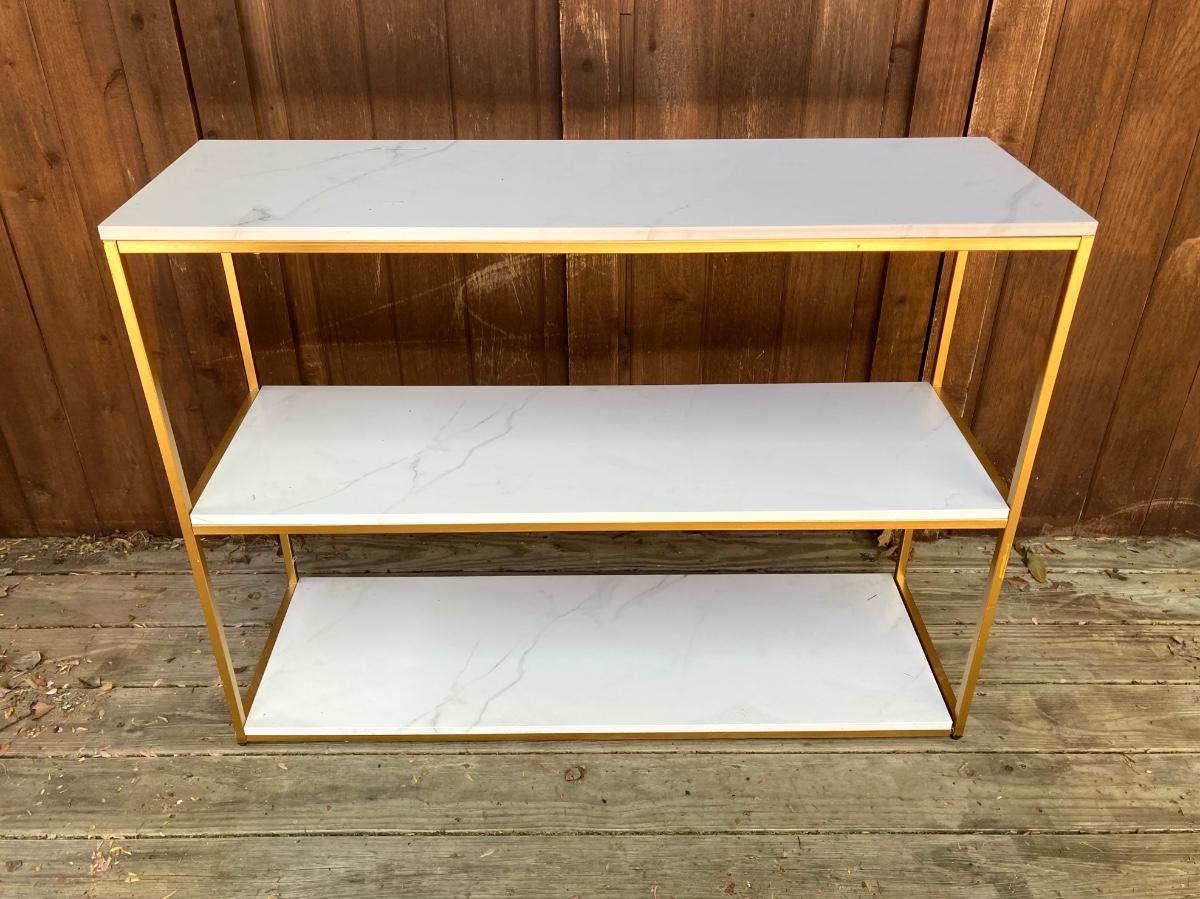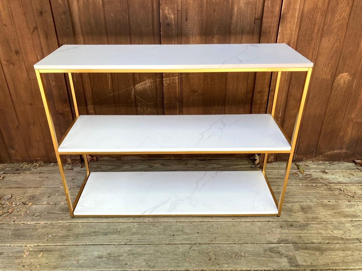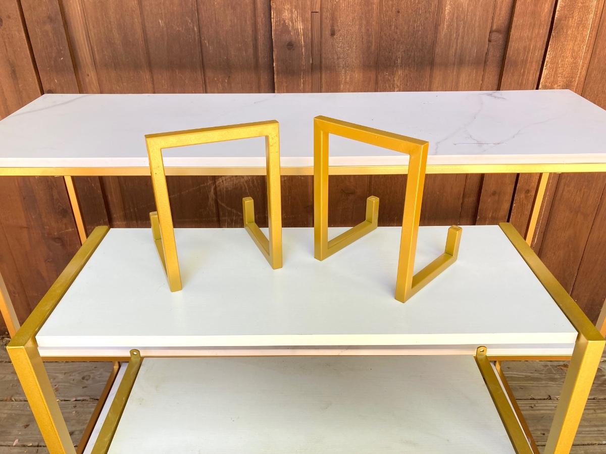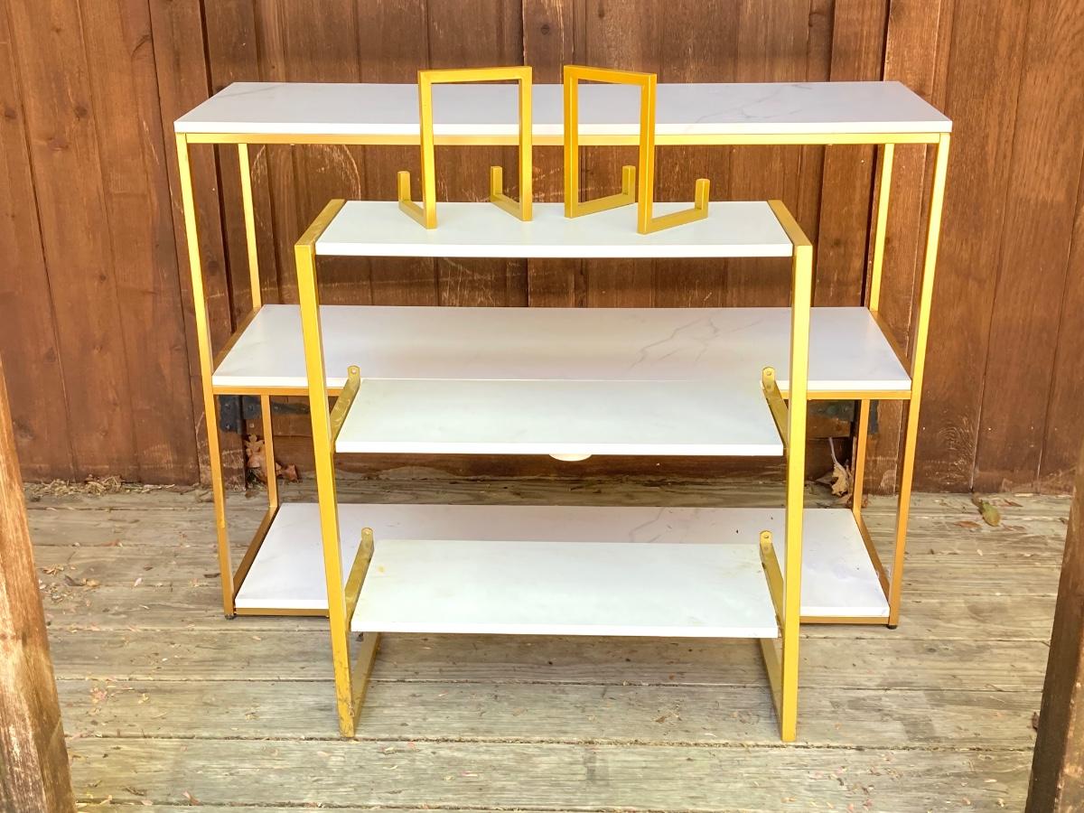 LOT 63: Set of Two (2) Book Shelves with Faux Marble (Plastic) Tops and Metal Sides and Book Ends