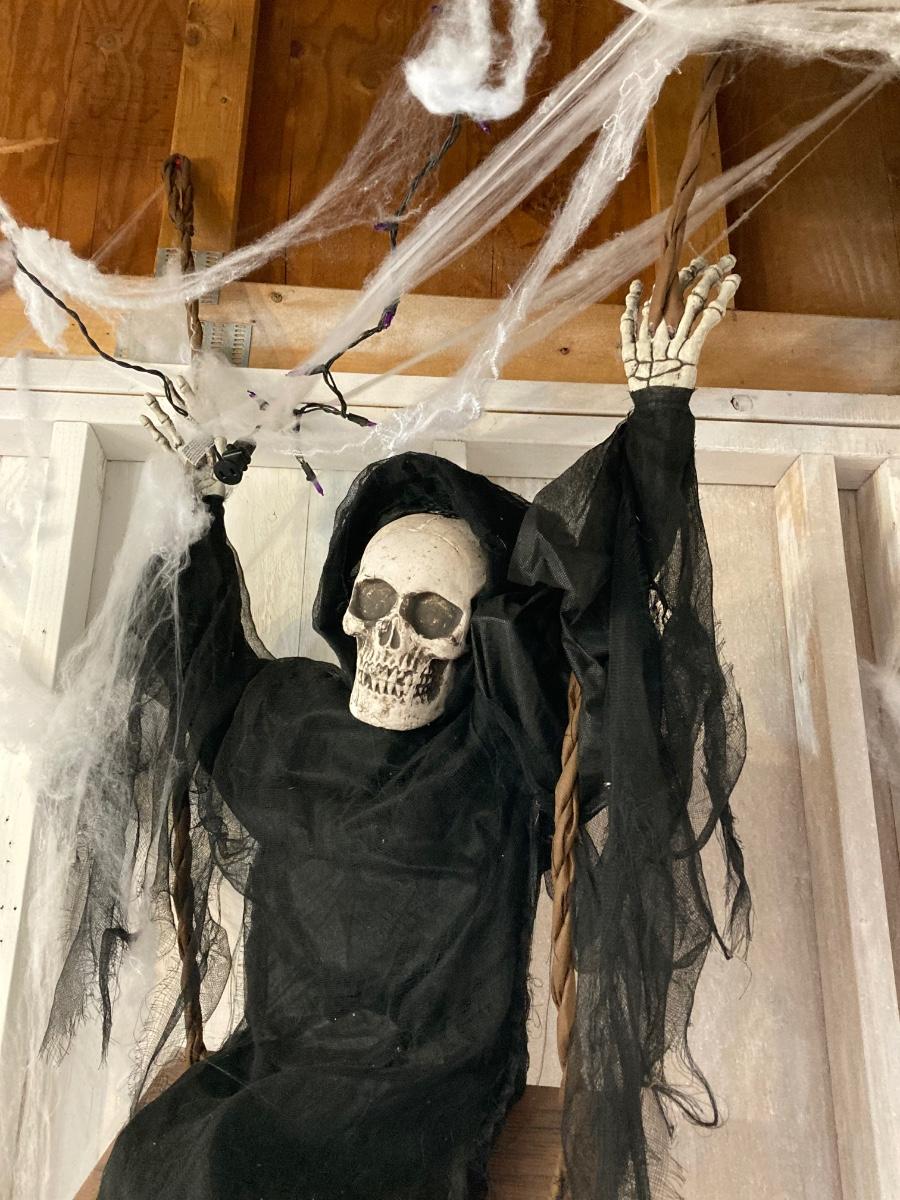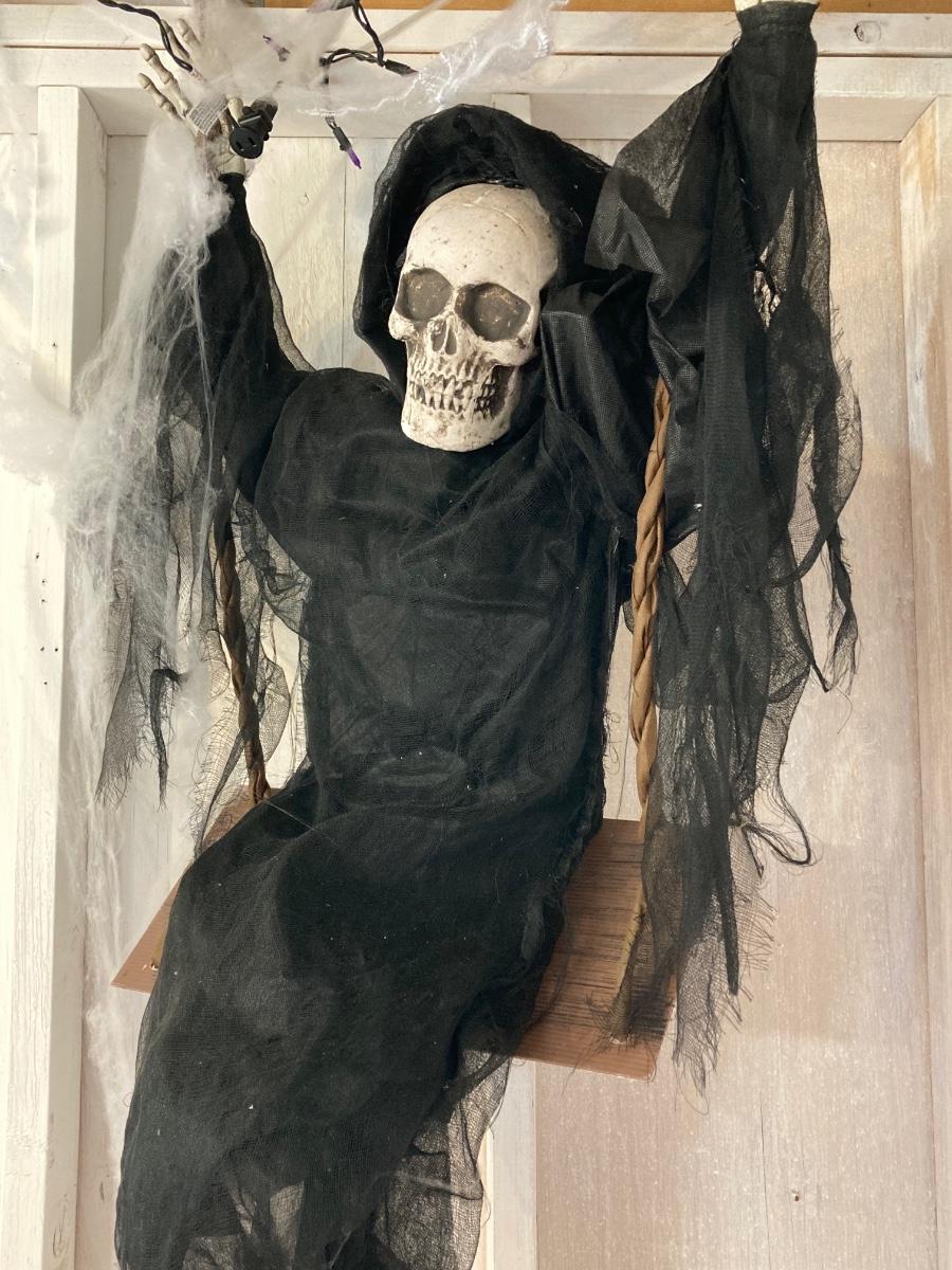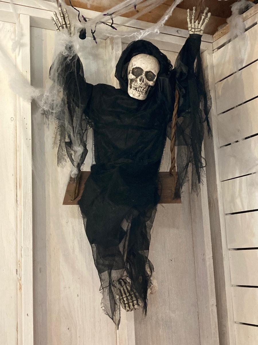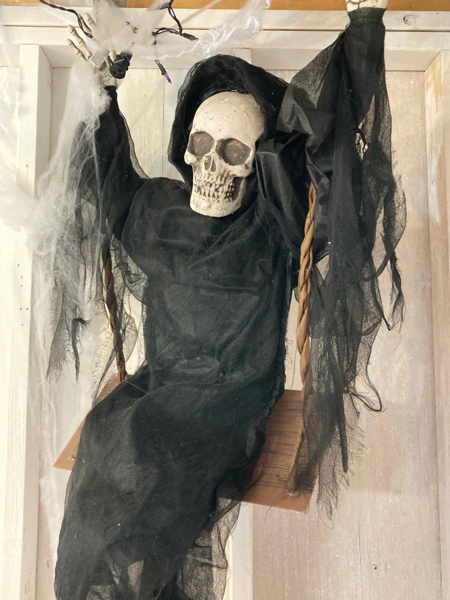 LOT 64: Scary Halloween Skeleton/Reaper on a Swing Indoor/Outdoor Decoration